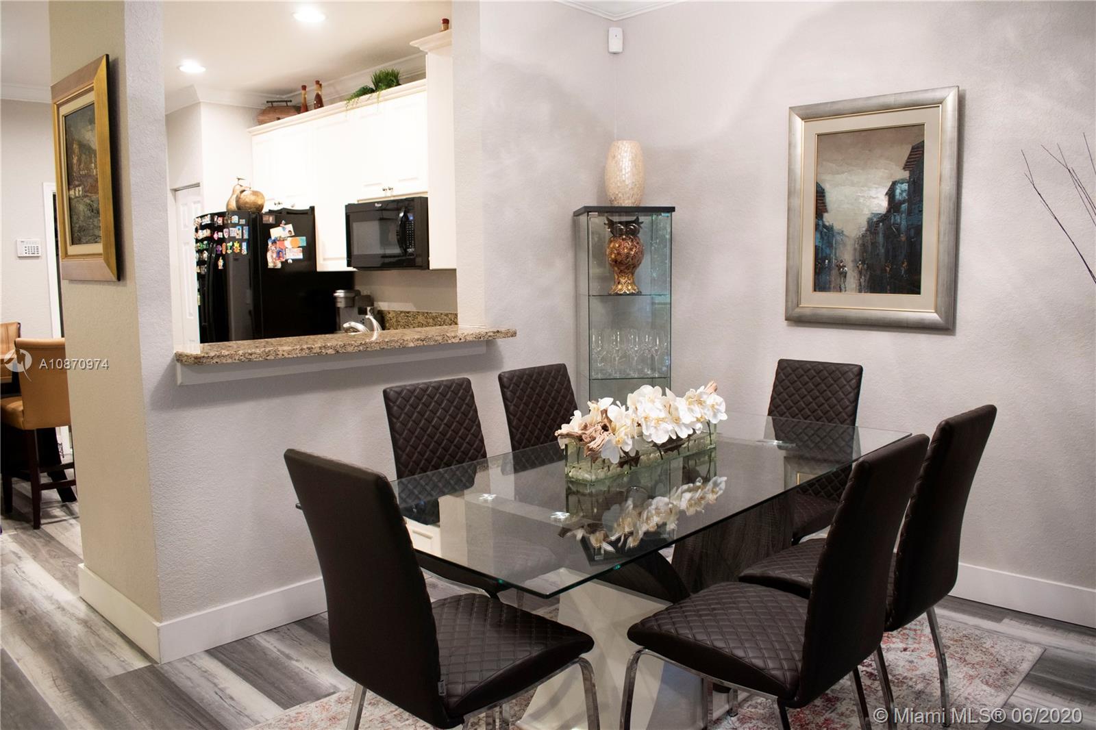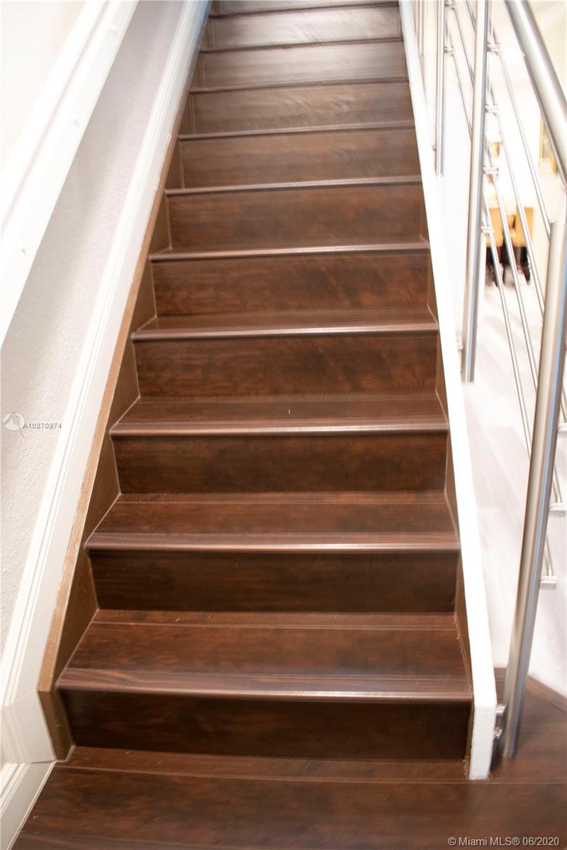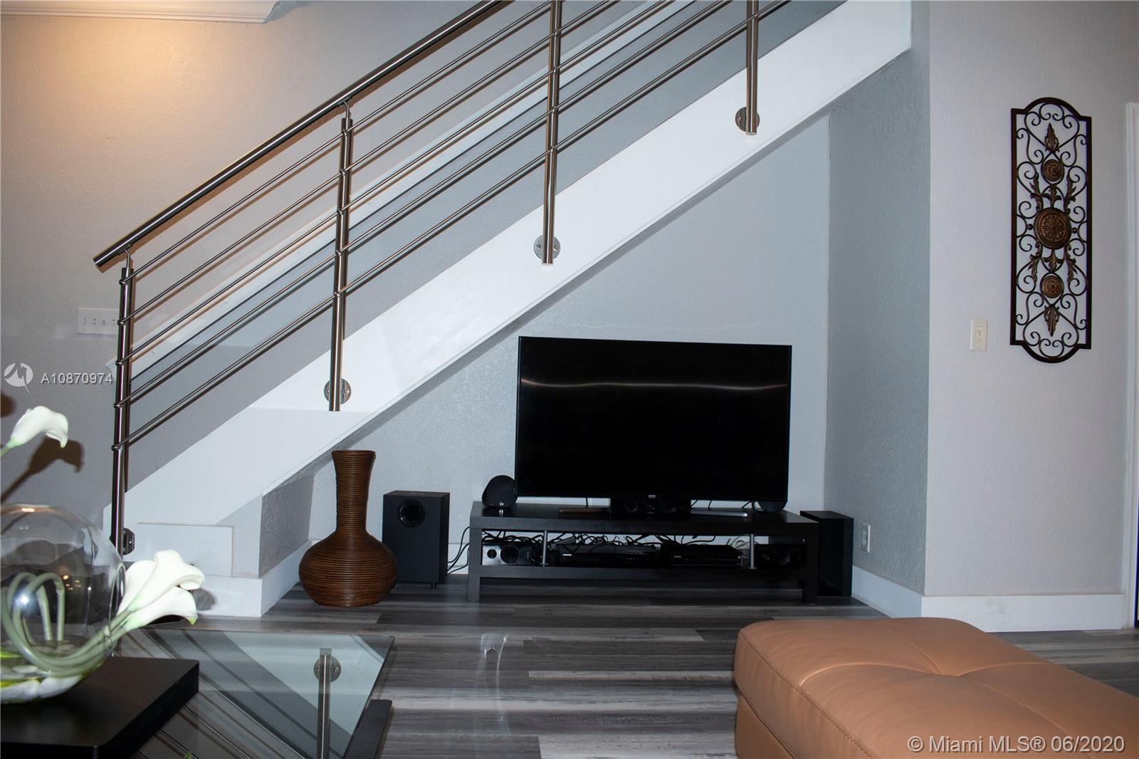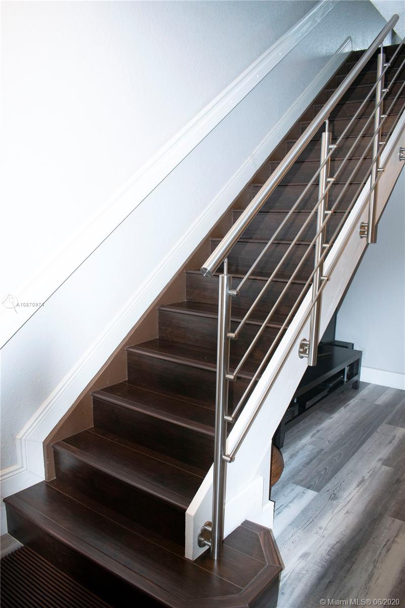 Beautiful and spacious townhouse with 2 master suites and guest bathroom. Completely remodeled unit with high quality features. Walk to school and enjoy living in Weston in a cozy but modern home. Home features new flooring anti scratch and water resistant in the whole house. Stainless steel stair handrails. Upgraded bathrooms with new vanities, tile flooring, glass shower doors and shower head. Garage can be used as office-den or can be easily converted back as garage. An insulated garage door keeps the garage fresh. Low maintenance fees that upkeeps the community in perfect condition, with swimming pool, brand new children’s playground, guest parkings and friendly neighbors. Accordion hurricane shutters.