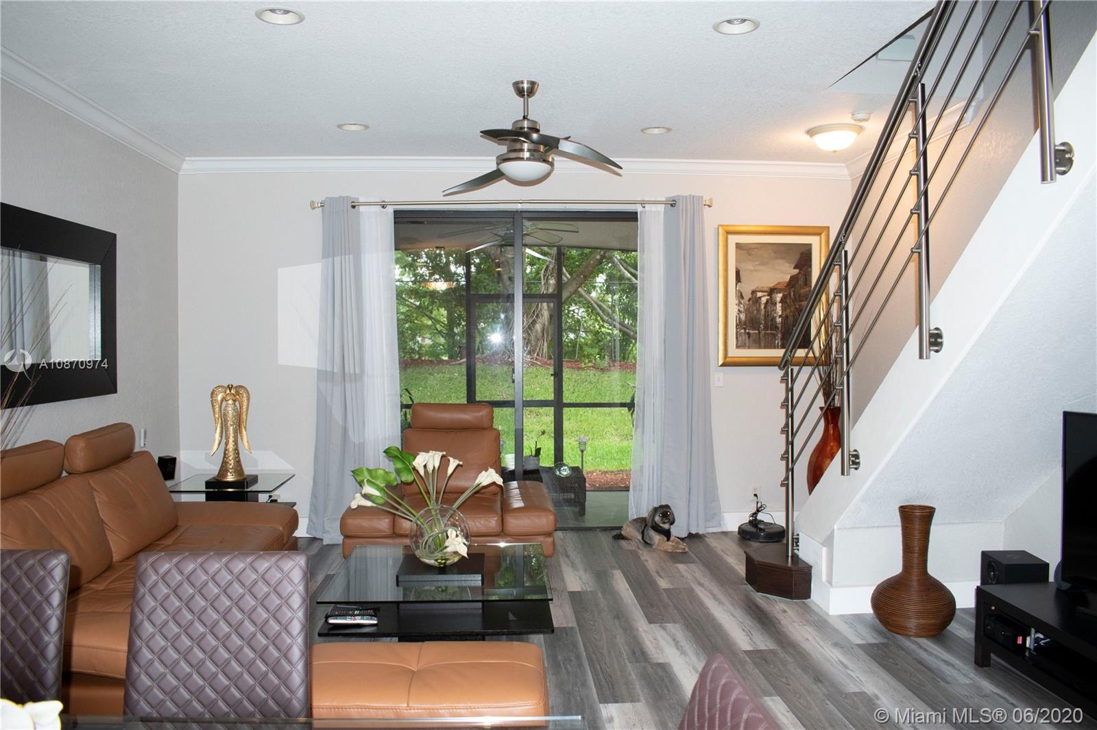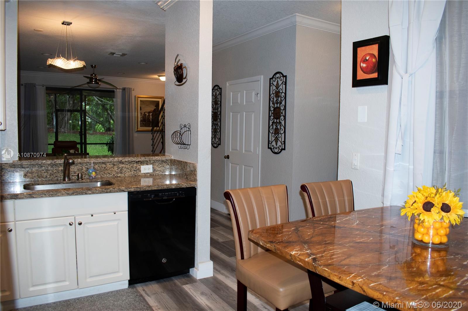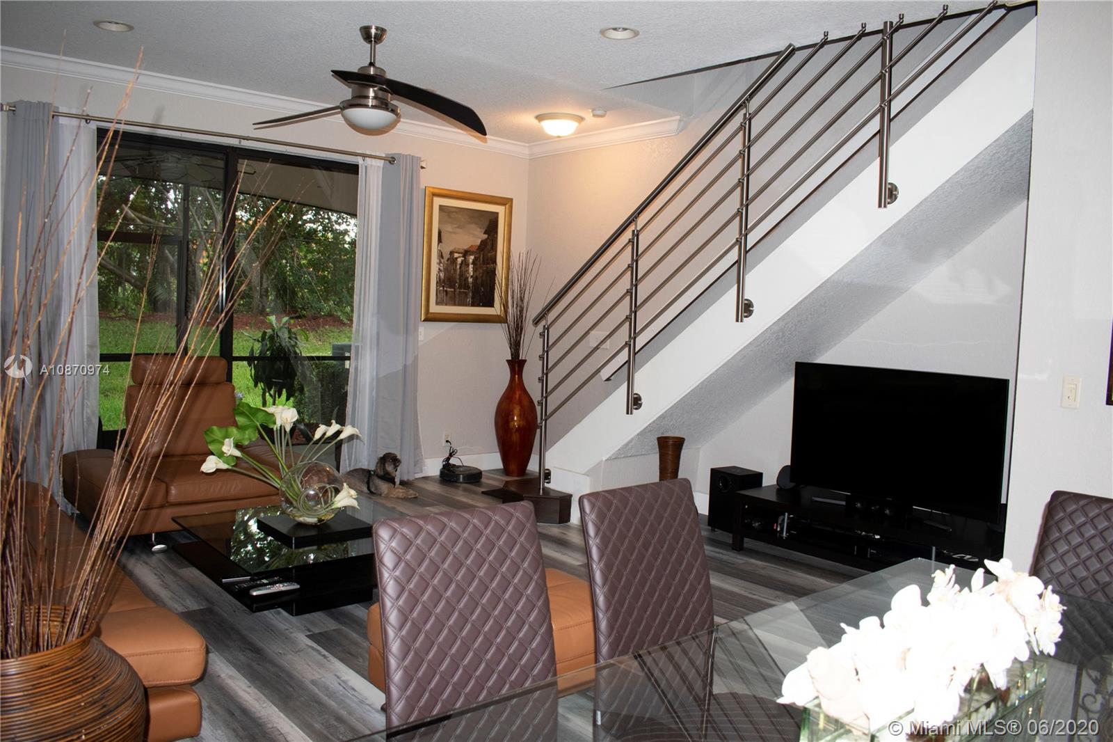 Beautiful and spacious townhouse with 2 master suites and guest bathroom. Completely remodeled unit with high quality features. Walk to school and enjoy living in Weston in a cozy but modern home. Home features new flooring anti scratch and water resistant in the whole house. Stainless steel stair handrails. Upgraded bathrooms with new vanities, tile flooring, glass shower doors and shower head. Garage can be used as office-den or can be easily converted back as garage. An insulated garage door keeps the garage fresh. Low maintenance fees that upkeeps the community in perfect condition, with swimming pool, brand new children’s playground, guest parkings and friendly neighbors. Accordion hurricane shutters.