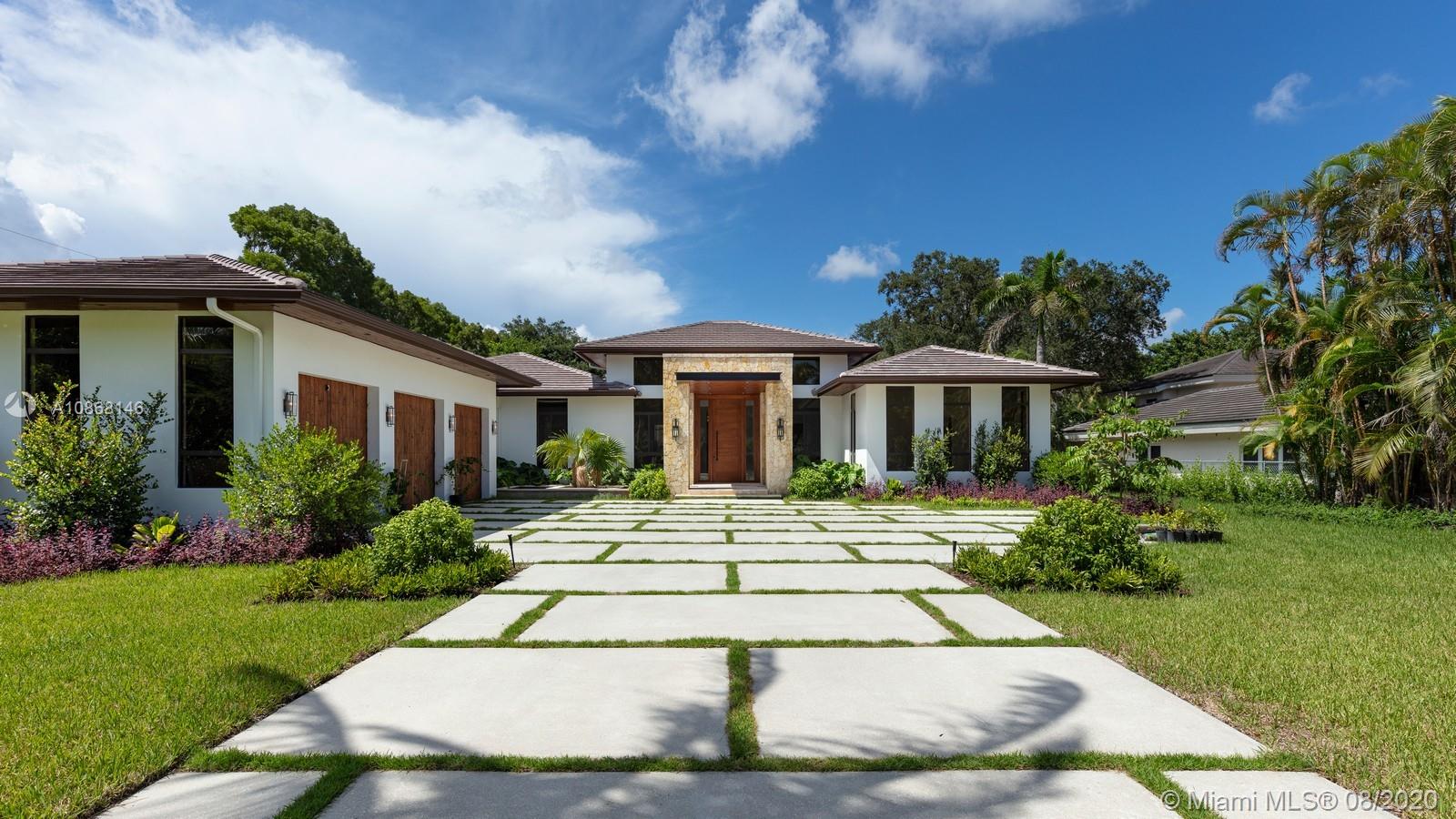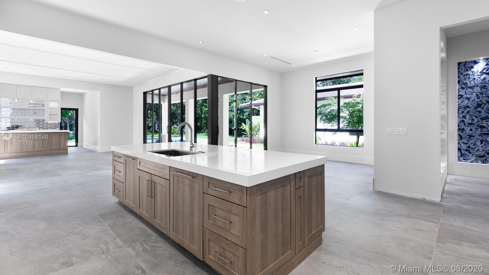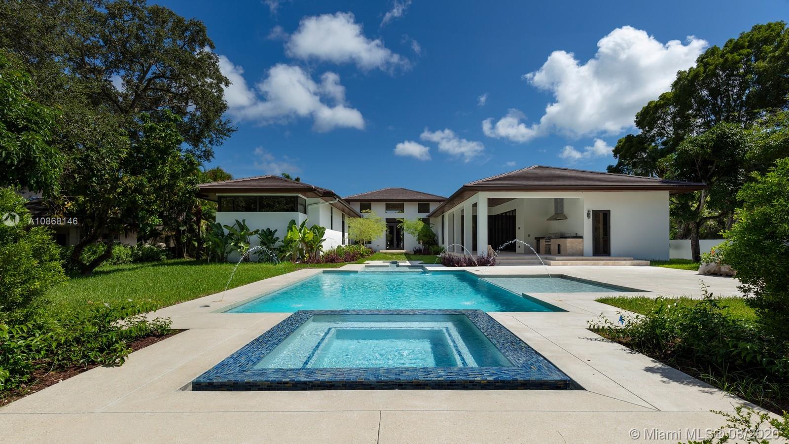 Magnificent New Construction Estate & ready for immediate occupancy in N Pinecrest. Residents will experience ultimate living in this modern luxury 1-story tropical home resting on a 39,770-sqft fully gated & deep lot, showcasing designer landscaping & an elegant water feature at the entrance. Discover a remarkable flr plan w/ oversize porcelain tile throughout and great ceiling height. Designer gourmet kit w/top of the line Thermador appl, hidden walk in pantry, custm-wood cabinetry w/quartz counter tops, wet bar & separate glass wine gallery. An inviting outdr oasis awaits w/an expansive yd w/tranquil reflective pool, water features, jacuzzi, tanning ledge & covered summer kit. Extra Feat: cove lighting, Impact windows/drs, 3 car gar. 1 Yr builder Warr. Premier Pinecrest Schools nearby.