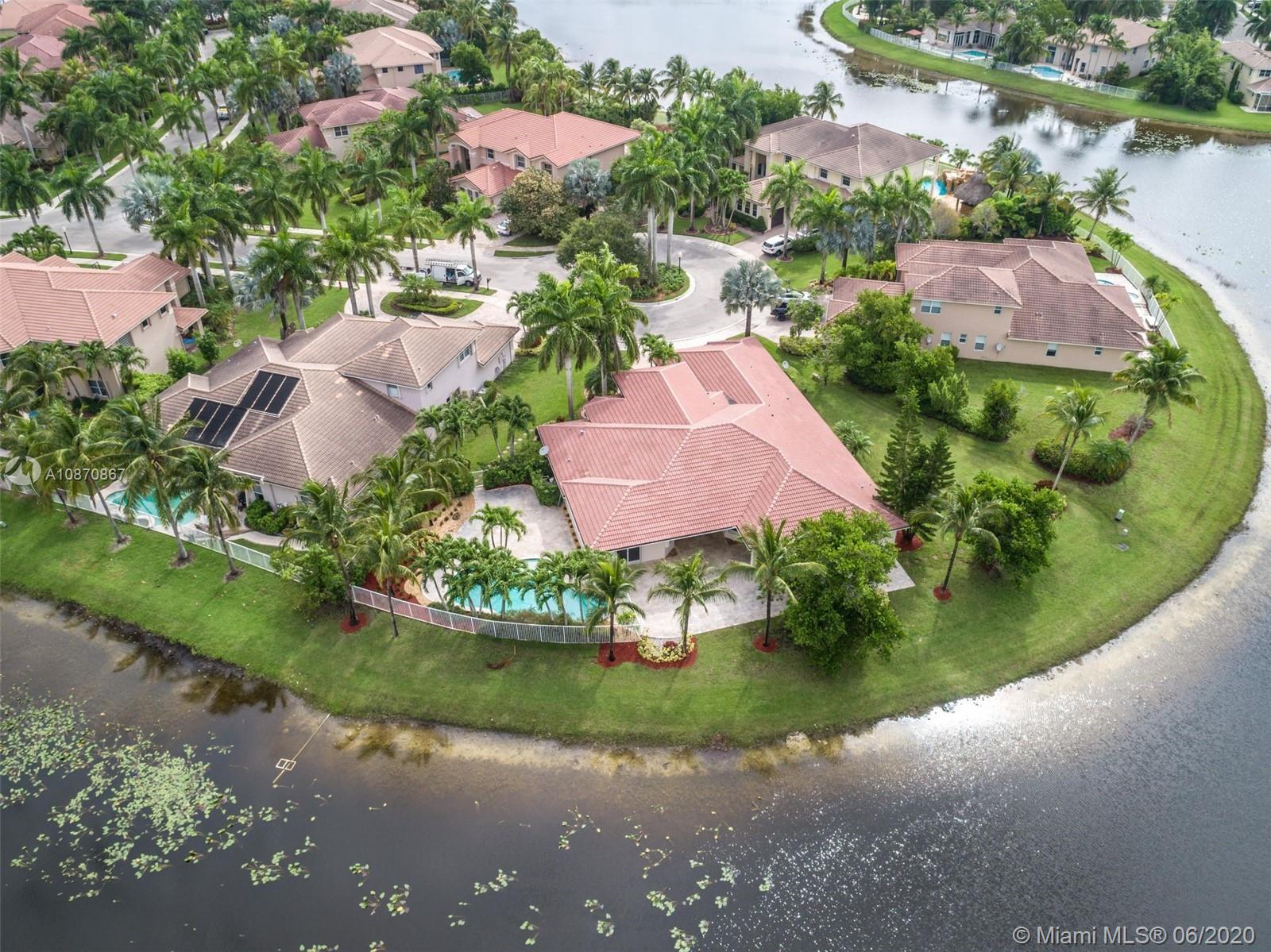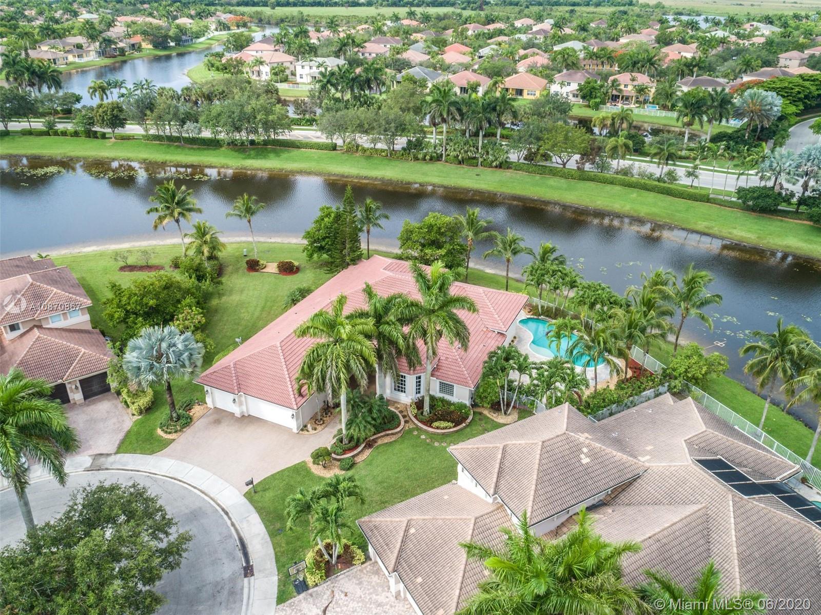 ***One Of A Kind Home In The Prestigious Gated Community Of Savanna Located In The Exclusive Cove II***. Beautiful Lakefront Pool Home With Over Half An Acre. Property Is Nestled On Oversized Cul-De-Sac Lake Front Lot. 5 Bedrooms , 3 1/2 Bathrooms, 3 Car Garage and a Spacious Driveway. Italian Modern Kitchen, High Ceilings, Chandeliers, Custom Finished All Closets, Beautiful Capuccino Marble Flooring Including Baseboard. Master Bedroom, Dining Room and Living Room with Wall Design, Motorized Blinds In Living Room and Family Room. Freshly Painted Interior and Exterior. Beautifully Landscaped. Pool Located Laterally and Wide Terrace Exterior with Pavers Marble Floor. Accordion Shutters. Weston A+ Schools. Excellent Opportunity.