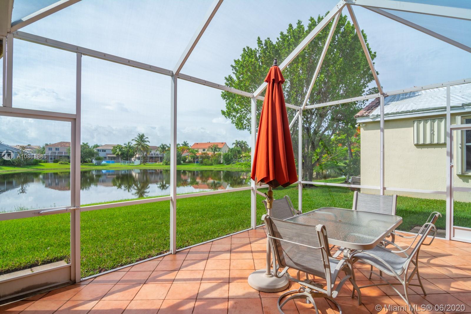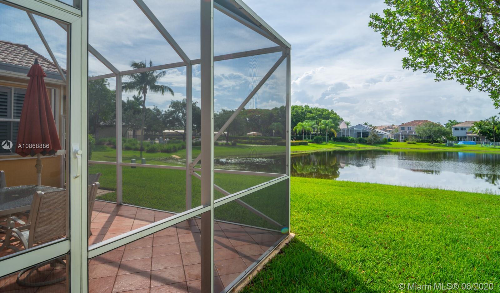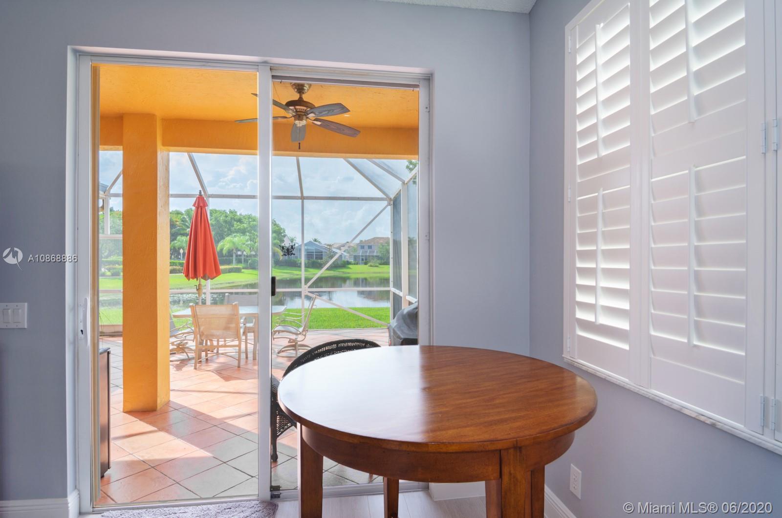 Pristine updated home with tranquil lake view. Kitchen has Cambria quartz countertops, back splash and Jarlin cabinets, Blanco granite sink and faucet, six panel doors with Baldwin brass handles and hinges. Open floor plan, double sliding doors to patio with lake brightening the living and kitchen areas. Plantation shutters in all rooms, walk-in closets, separate laundry room, porcelain rectified tile, laminate floors in bedrooms. Master bath with custom Wolf in the Wood cabinetry, porcelain rectified tile, custom blue pearl granite imported from Norway, marine grade plywood for extra humidity control, whirlpool tub, walk-in shower. Entire house has hurricane accordion shutters, coach lights and porch lights on front porch and patio, new AC unit. Great community with all A+ Schools