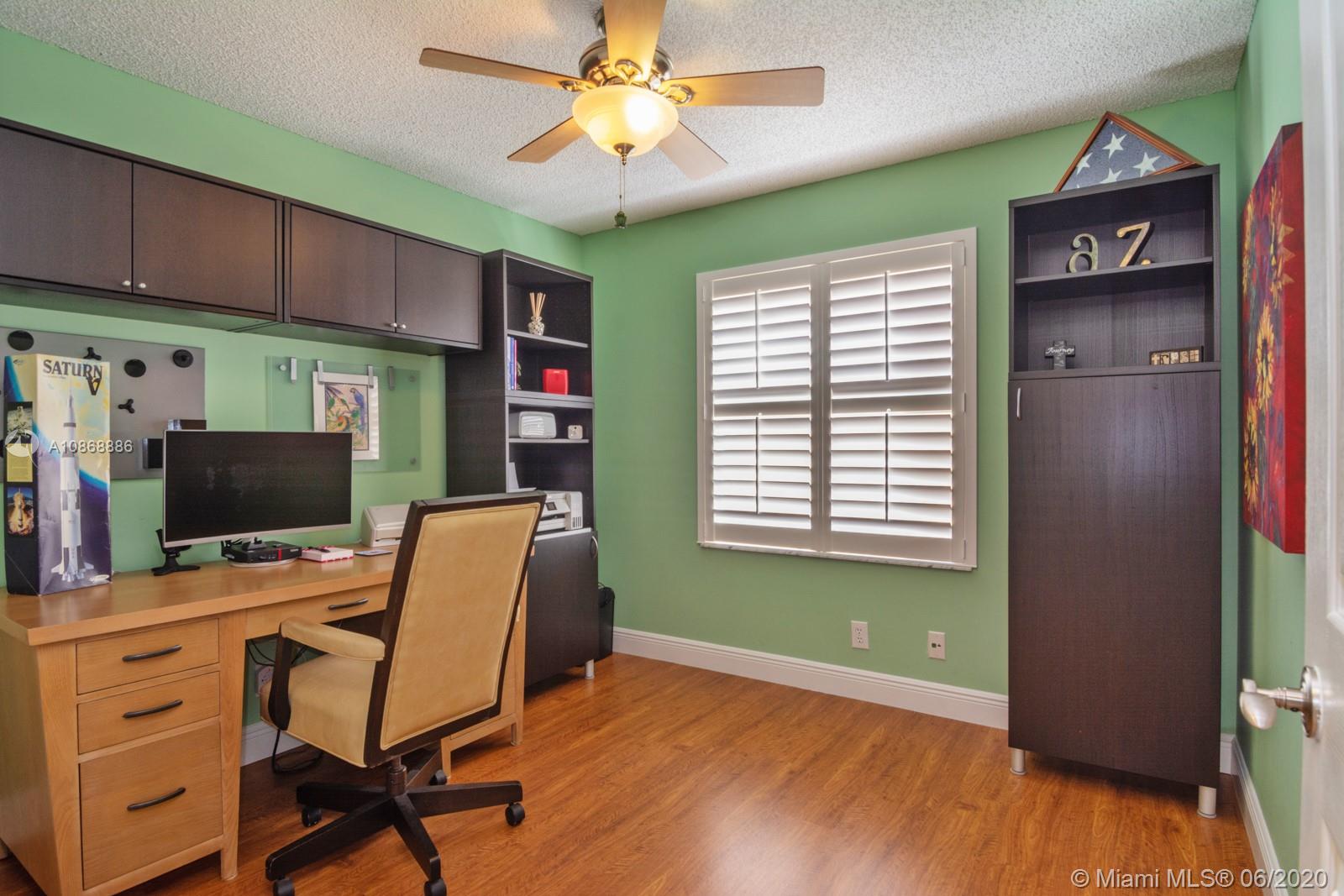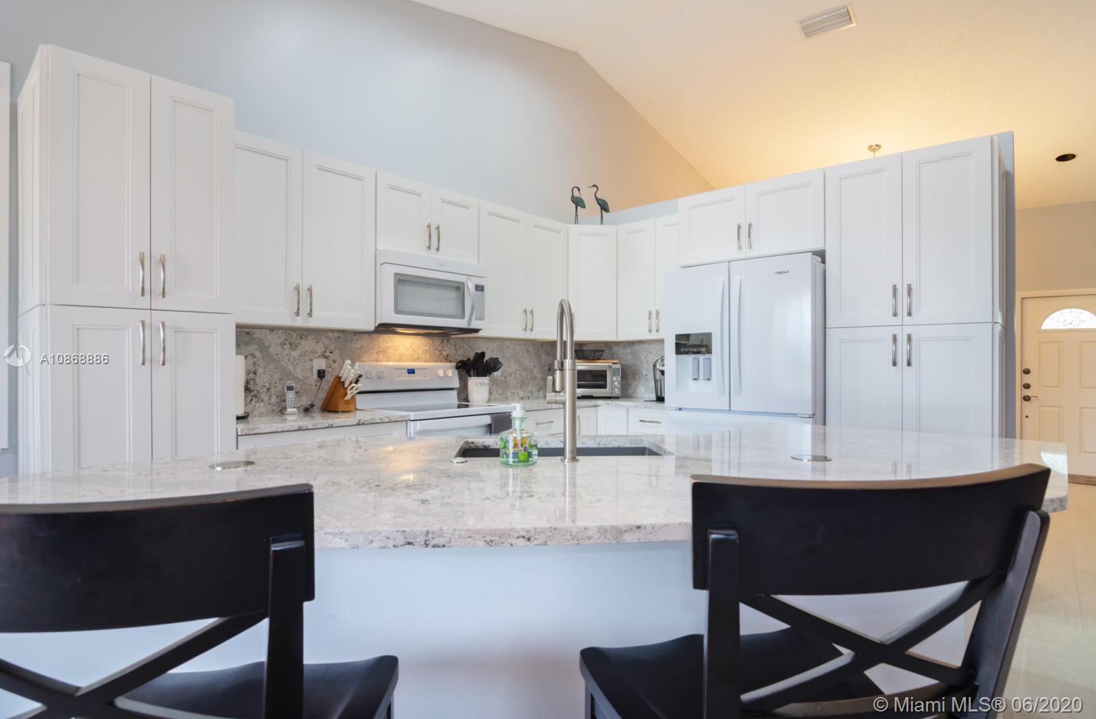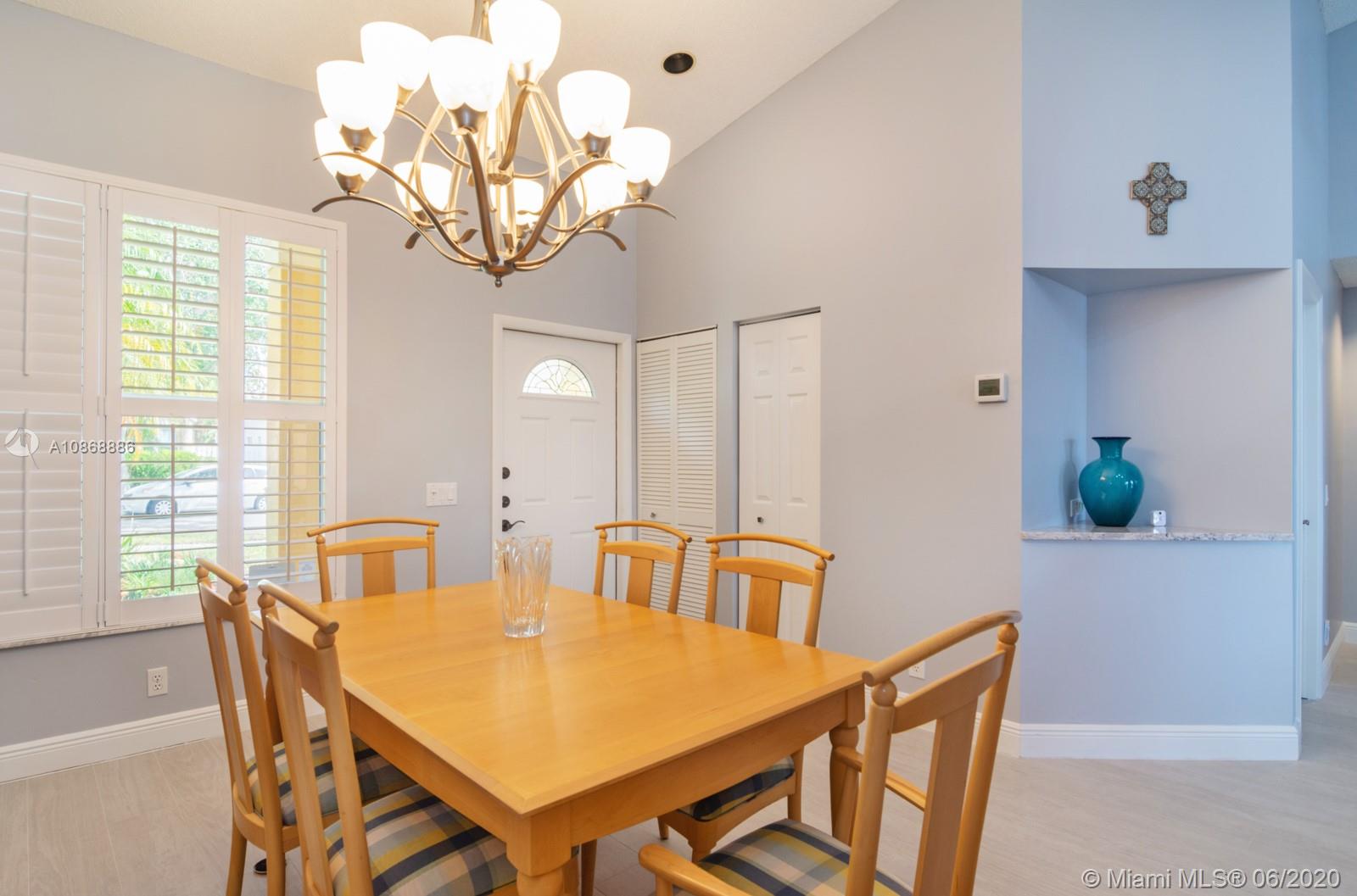 Pristine updated home with tranquil lake view. Kitchen has Cambria quartz countertops, back splash and Jarlin cabinets, Blanco granite sink and faucet, six panel doors with Baldwin brass handles and hinges. Open floor plan, double sliding doors to patio with lake brightening the living and kitchen areas. Plantation shutters in all rooms, walk-in closets, separate laundry room, porcelain rectified tile, laminate floors in bedrooms. Master bath with custom Wolf in the Wood cabinetry, porcelain rectified tile, custom blue pearl granite imported from Norway, marine grade plywood for extra humidity control, whirlpool tub, walk-in shower. Entire house has hurricane accordion shutters, coach lights and porch lights on front porch and patio, new AC unit. Great community with all A+ Schools