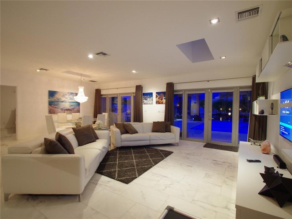 COMPLETE REMODEL AGAIN. SUPERIOR MID-CENTURY WATERFRONT. NO EXPENSE SPARED. BRIGHT, OPEN, PRIVATE. PROPERTY IS LOCATED ON A 15,581 SQ FT LOT. READ THAT AGAIN - 15,531 SQ FT. MOST LOTS IN THIS NEIGHBORHOOD 10,OOO SQ FT OR LESS. RESORT STYLE DECKING AROUND MAGNIFICENT POOL AREA LEADING TO NEW DOCK IN DECEMBER 2019. CUSTOM DESIGNED DRAPES/BLACK OUT BLINDS IN EVERY ROOM. NEW A/C 2018. SPLIT UNIT A/C 2017. HOT WATER HEATER 2020. ELECTRIC DRIVEWAY GATE 2018. CUSTOM CLOSET MASTER BEDROOM.RESORT STYLE LANDSCAPING. 2 WASHERS/2 DRYERS. WATER/POOL VIEWS FROM MASTER AND GUEST SUITE. ALL WINDOWS/DOORS IMPACT. SOUND SYSTEM THRU OUT AND POOL AREA ALONG WITH TV. DOCK WITH FULL UTILITIES. PERFECT HOME FOR ENTERTAINING AND LIVING THE BEST OF FLORIDA LUXURY LIFESTYLES. MINUTES TO BEACH/GALLERIA MALL.