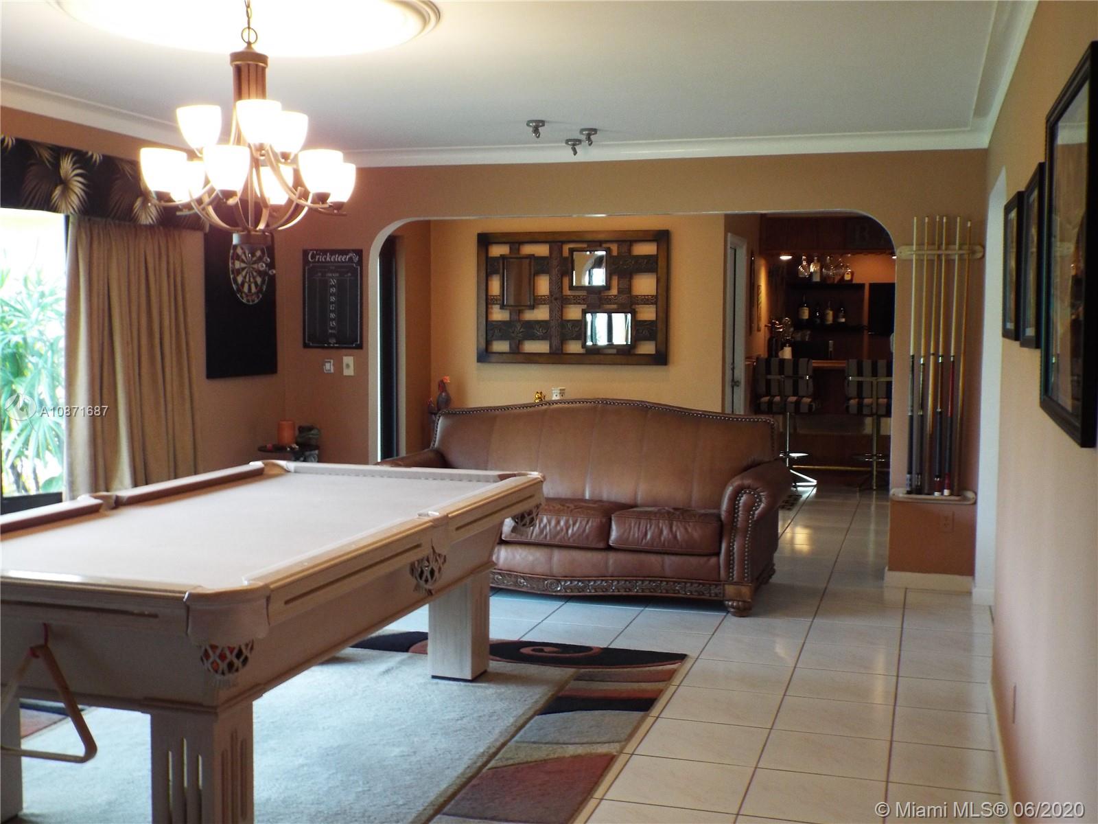 Great Whispering Pines Home. Builder's acre waterfront home. Lush landscaping. New impact windows and doors. A/C unit only two years old and all new duct work. Working fireplace. Lots of closets for storage. Perfect entertainment home with large pool, built in bar in the living room, large covered patio with built in grill, lush landscaped backyard with fruit trees and amazing palm trees. Fenced yard and a lovely view of the lake in the backyard. Priced right to sell fast.