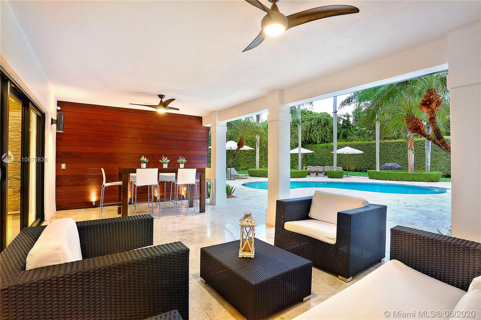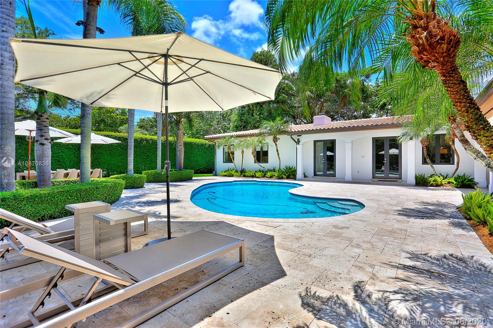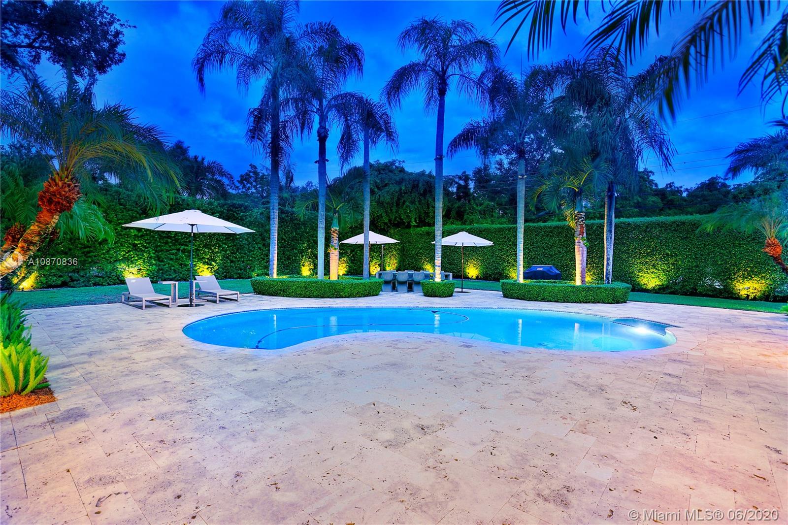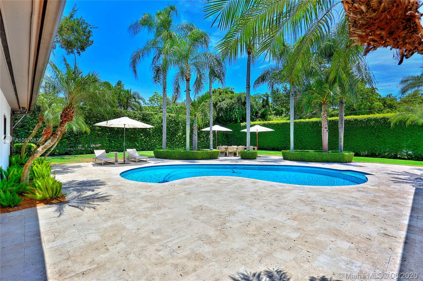 This magnificent 5 beds/4.5 baths gated smart home with pool is nestled on a 19,215 sq ft lot in the desirable Ponce-Davis Platinum Triangle of Coral Gables. Updated beautifully with lots of custom amenities will captivate you from its oversized circular driveway to its gorgeous backyard surrounded by lush tall privacy hedges! Features: 2-car garage, new impact windows & glass doors & shades, custom-built sleek kitchen with wood European cabinetry, quartz counter-tops, Viking appliances, high ceilings, working fireplace. Lots of techy systems: cameras, wireless alarm, intercom, smart control app. The Master suite has 2 custom-built walk-in closets, dual sinks, whirlpool tub & separate shower. Others: laundry room, linear air vents, partial generator, salt-water heated pool.