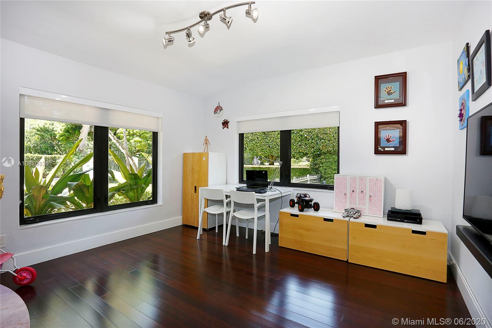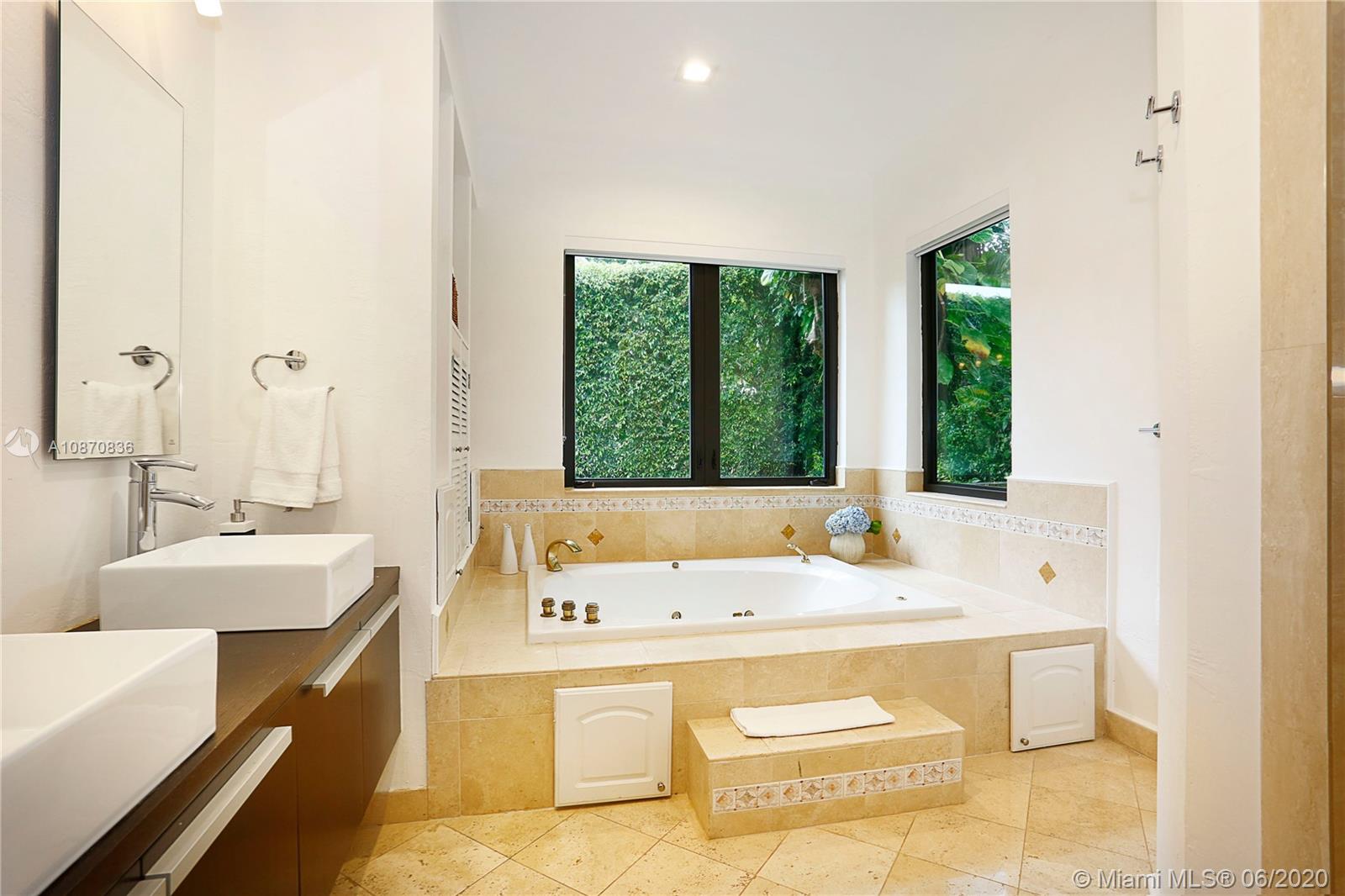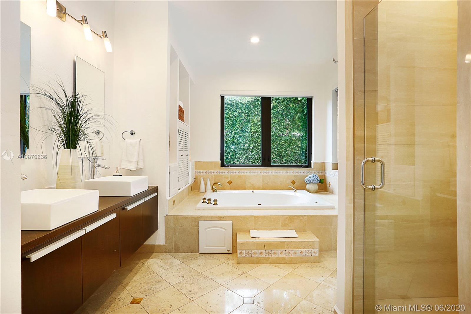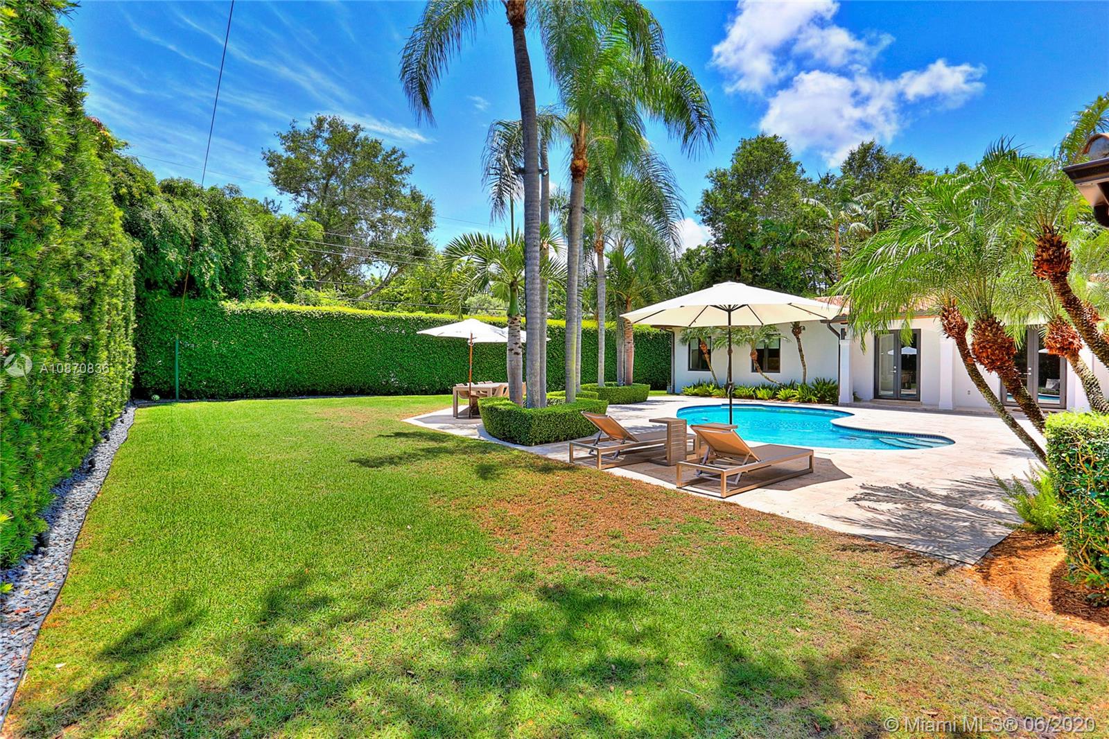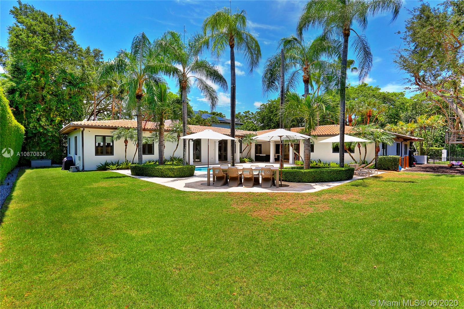 This magnificent 5 beds/4.5 baths gated smart home with pool is nestled on a 19,215 sq ft lot in the desirable Ponce-Davis Platinum Triangle of Coral Gables. Updated beautifully with lots of custom amenities will captivate you from its oversized circular driveway to its gorgeous backyard surrounded by lush tall privacy hedges! Features: 2-car garage, new impact windows & glass doors & shades, custom-built sleek kitchen with wood European cabinetry, quartz counter-tops, Viking appliances, high ceilings, working fireplace. Lots of techy systems: cameras, wireless alarm, intercom, smart control app. The Master suite has 2 custom-built walk-in closets, dual sinks, whirlpool tub & separate shower. Others: laundry room, linear air vents, partial generator, salt-water heated pool.