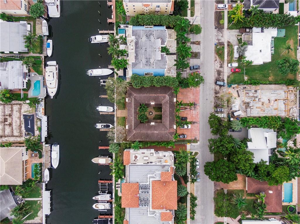 Rio Vista townhouse with private dock for a 35' boat. Widest boat slip in the complex including Power Pedestal w/30amps & Freshwater Tap. Just off the Intracoastal only 10 minutes to the ocean! Corner cozy townhome, remodeled, new floors, custom kitchen with granite countertops, crown moldings, fireplace in living room. Close to shops, restaurants, airport. Perfect way to enjoy Florida having your boat in your backyard! Complex waterfront area and landscape are in the process of being improved and redone. Seawall will be raised to comply with new City requirements. All these costs have been funded already by current owner. Monthly $750 fee includes Reserves, Windstorm, Bldg &Liability & Flood Insurance, Pest Control, Outside maintenance & landscaping. Amazing location & value!