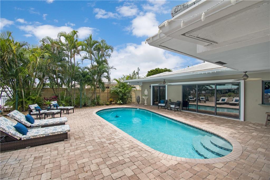 A Boater's Dream! Bring your 120 foot Yacht! Over 120 linear feet of dockage, a protected cove from the Intracostal waterway, a great turning basin & only one neighbor. This is literally the best waterfront location for a large boat in East Fort Lauderdale... and the home is perfect! Enter this 3 bedroom, 2 bath pool home and your are greeted with an open floor plan, expansive designer kitchen with huge island for entertaining, Sub Zero refrigerator, wolf gas burning stove, two sinks, custom counter-tops & more. Split floor-plan is great for privacy, open family room, marble floors throughout & all bathrooms finished tastefully. Impact glass with triple collapsible sliders, brand new AC and Duct system, newly pavered walkways and pool deck, summer kitchen and located on a corner lot!