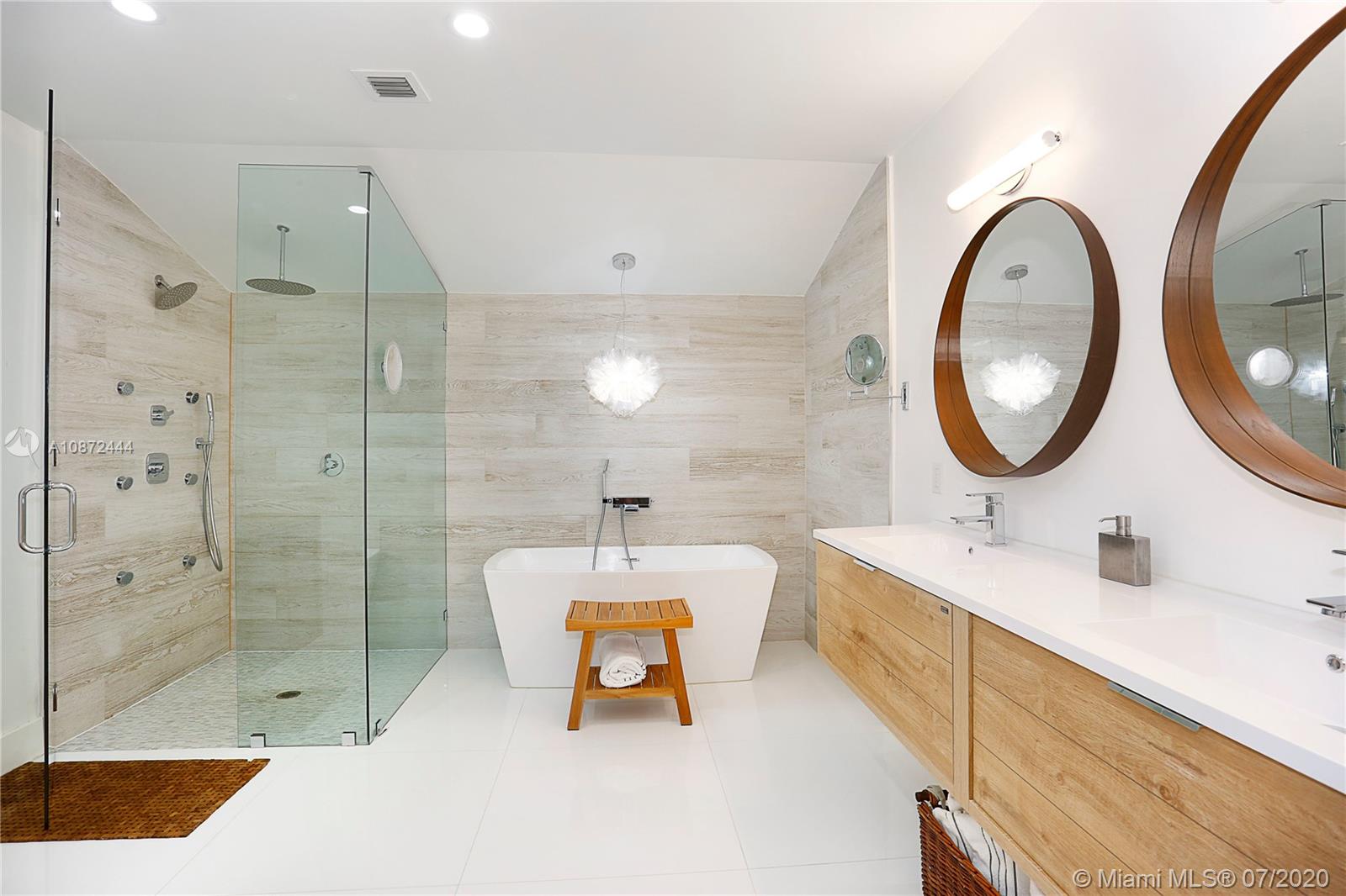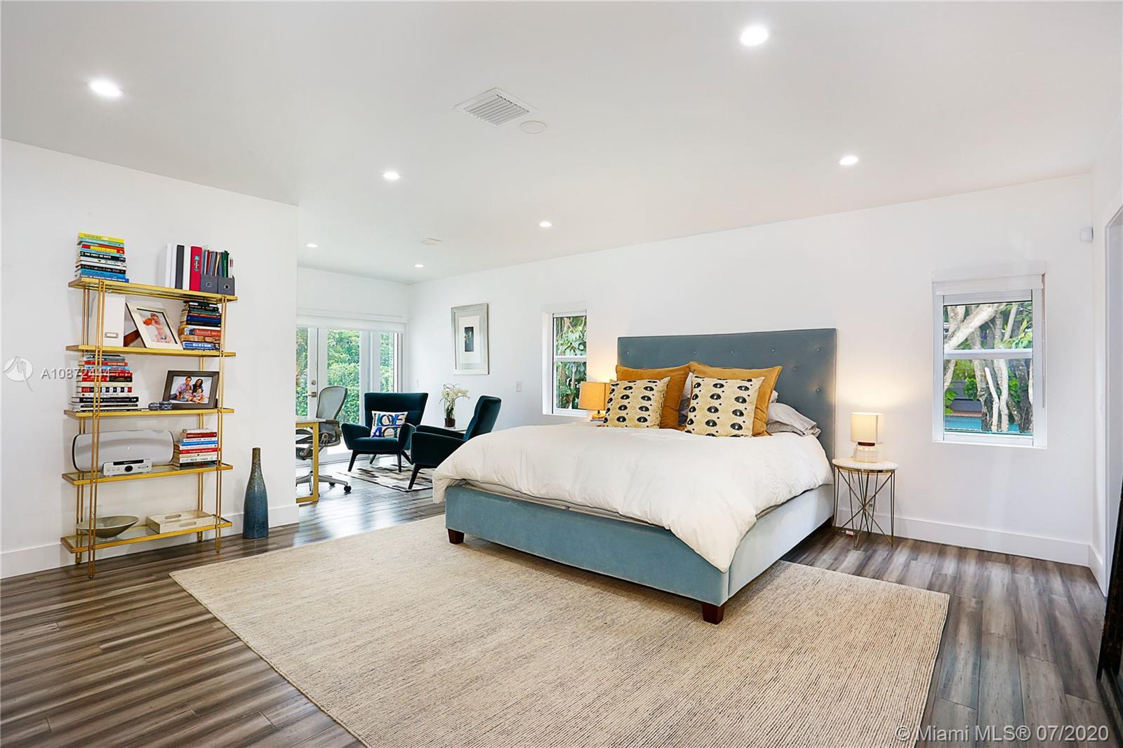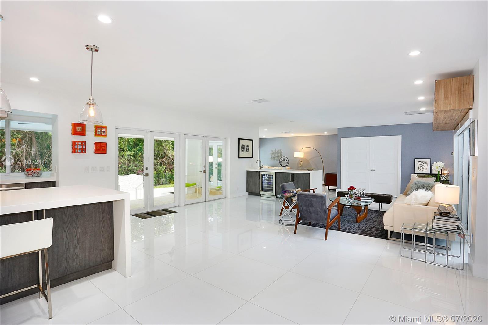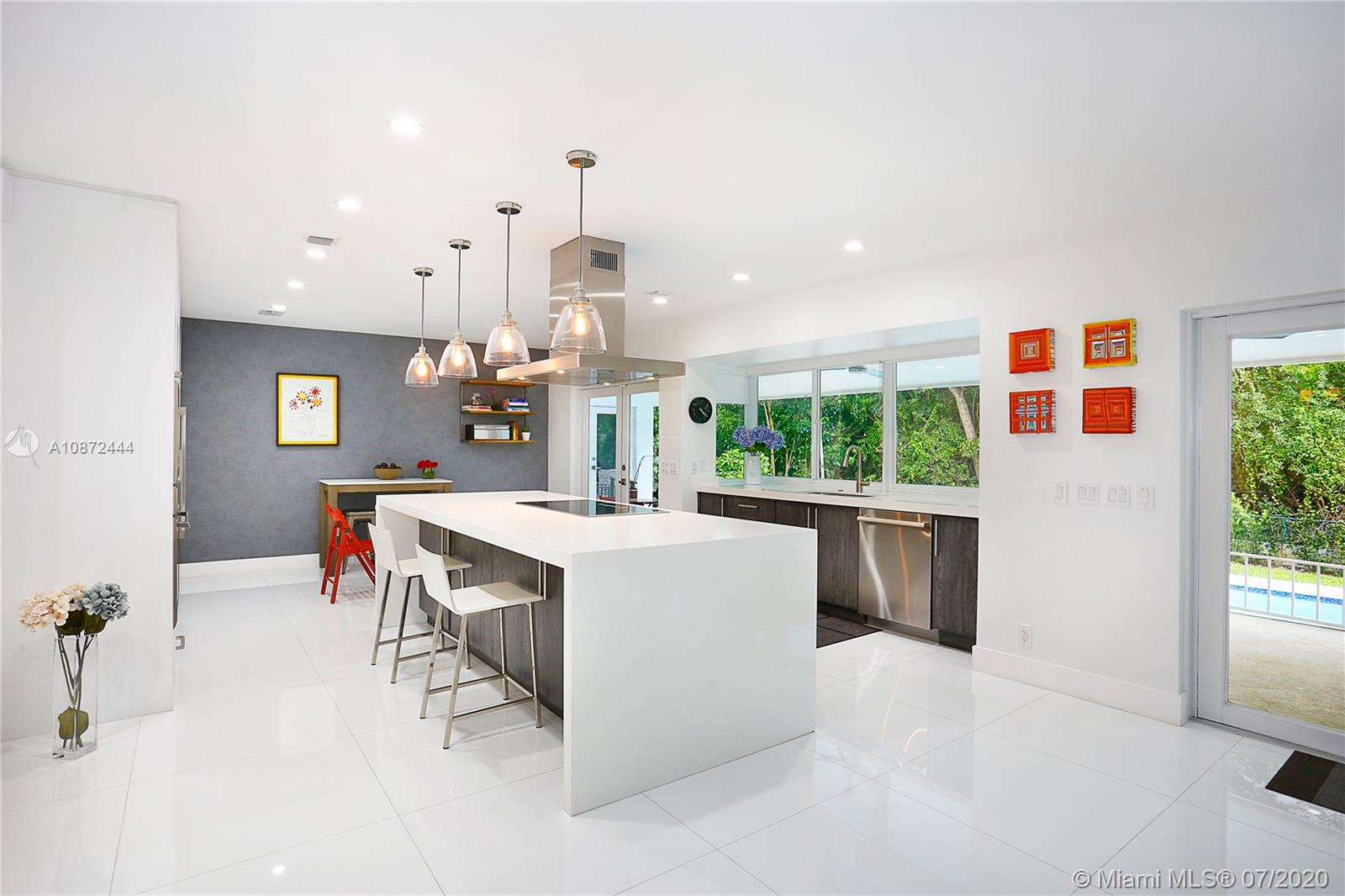 Completely renovated modern home on private Coral Gables cul de sac. Redesigned in 2017, this Smart home offers high ceilings, sleek porcelain tile floors, new roof, & impact doors & windows. Spacious open floor plan features a living room with wet bar & wine cooler facing the pool, dining room with access to the beautiful solarium, family room & breakfast area. Gorgeous chef’s kitchen with oversized cooking island, Thermador appliances & 2nd seating bar area. Featuring a lux master suite with seating area, French doors to patio, walk-in closet, & bath with tub & shower, & 4 guest bedrooms with 2.5 baths. Upgrades include 2 new ACs with Nest thermometers, cameras & mosquito SWAT system. Lush backyard with pool, huge covered terrace, & 2-car garage with electric car charger.