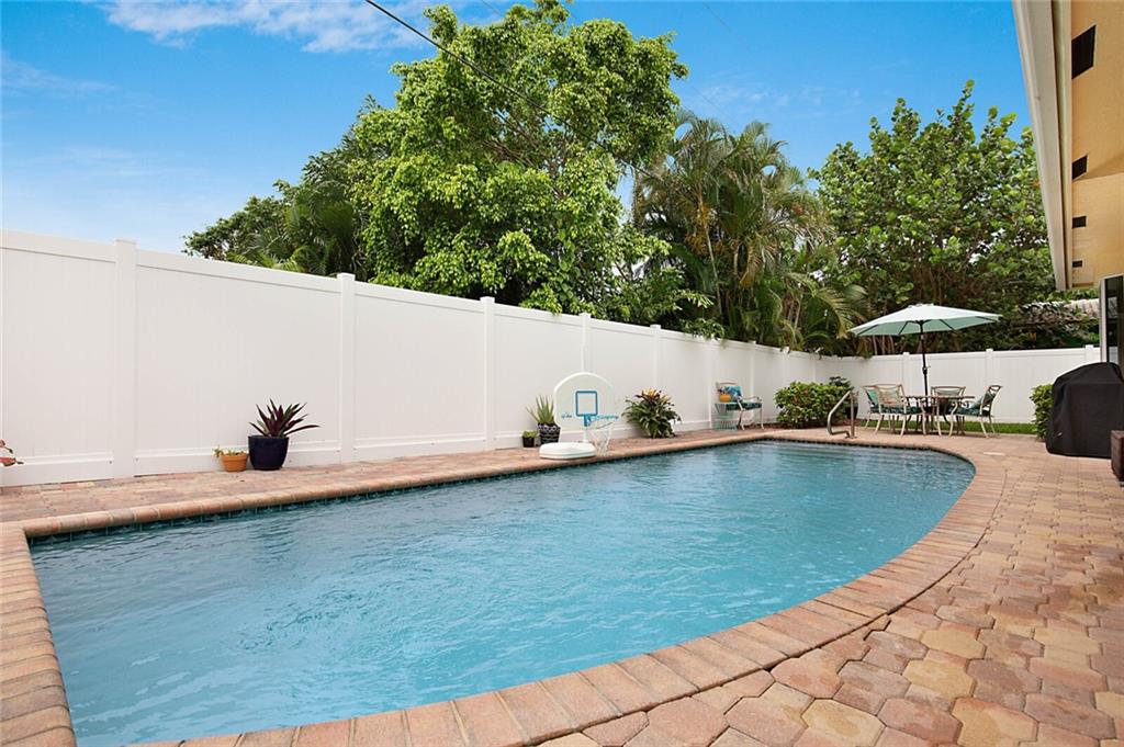 Incredible opportunity to own in Hillsboro Shores, where you have private beach access right around the corner. Whether this is for you or an investment, it checks all the boxes! Located on a quiet street, just south of the inlet, this home has great curb appeal. Enter into an expansive living area with high ceilings. There is an open office area tucked off to the left and a large formal dining space to the right. The home offers a desirable triple-split bedroom plan, each w/an en-suite bathroom, travertine floors, impact windows, eat-in kitchen, and interior laundry. The master has a large walk-in closet, double-sinks, jacuzzi tub, and spa-like rainfall shower. Other features include a 2 car garage, covered patio overlooking the pool w/new salt system & private fenced back yard.