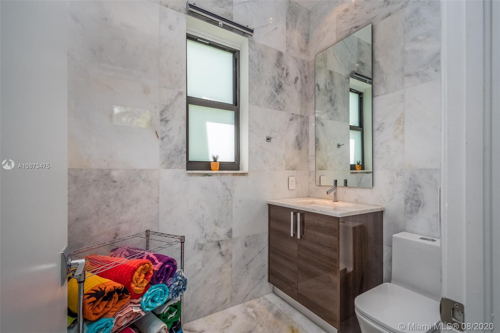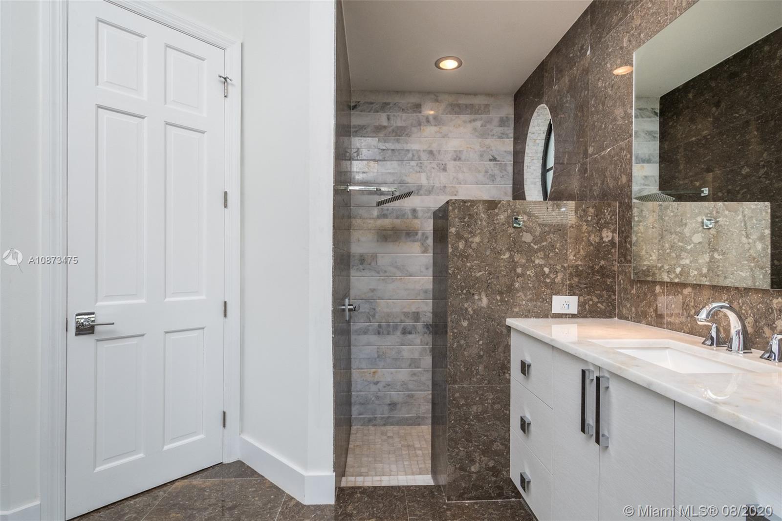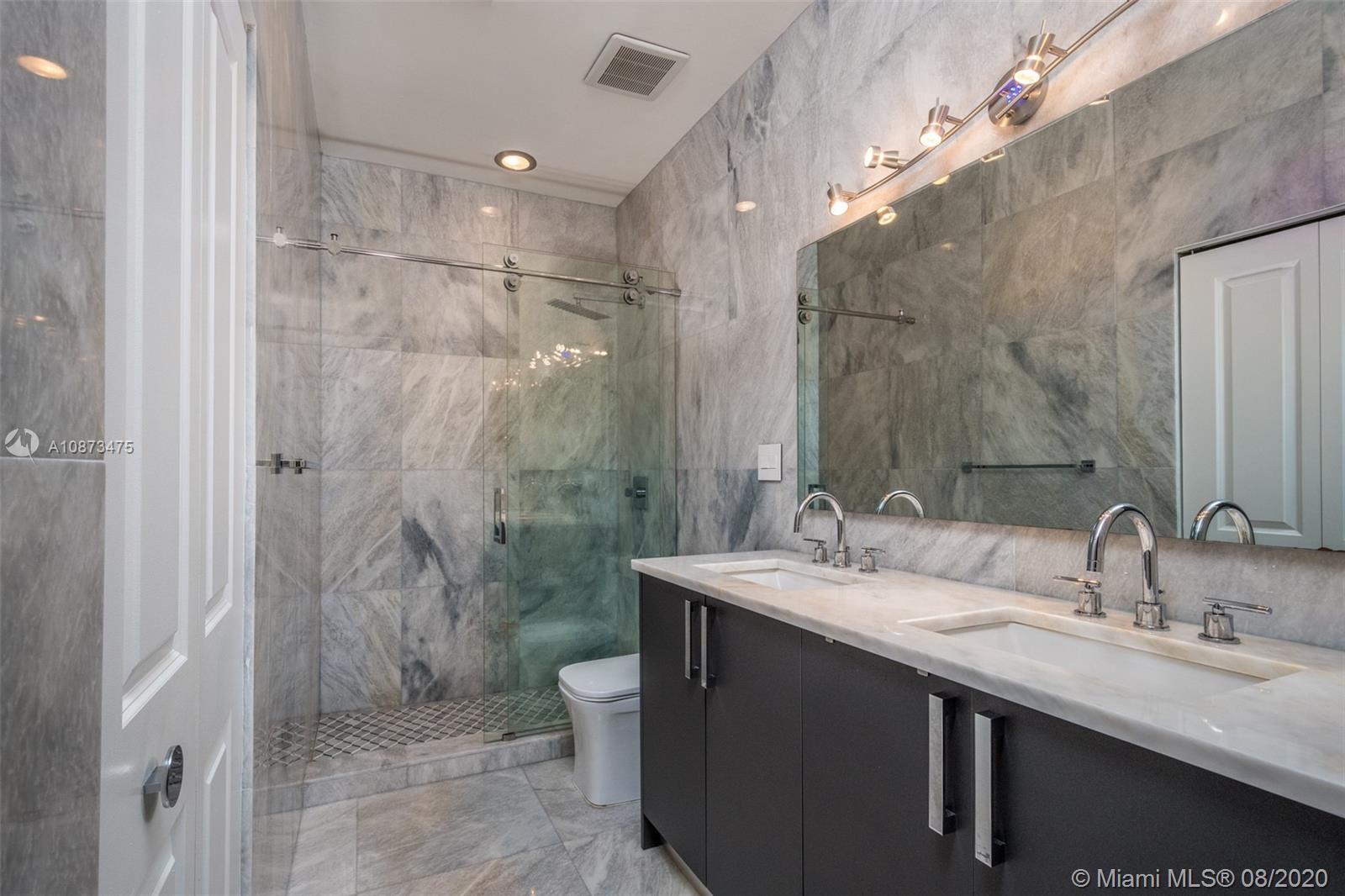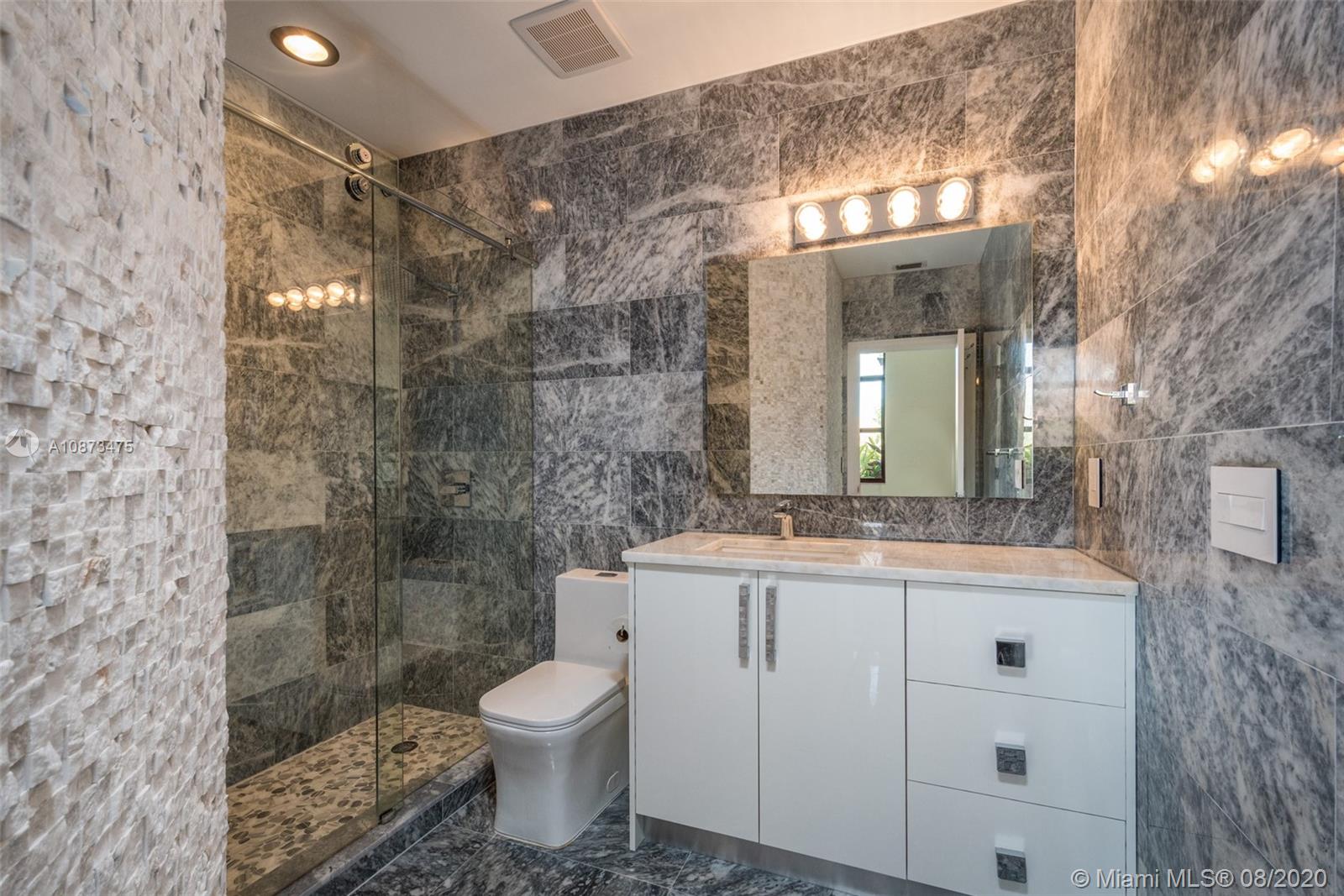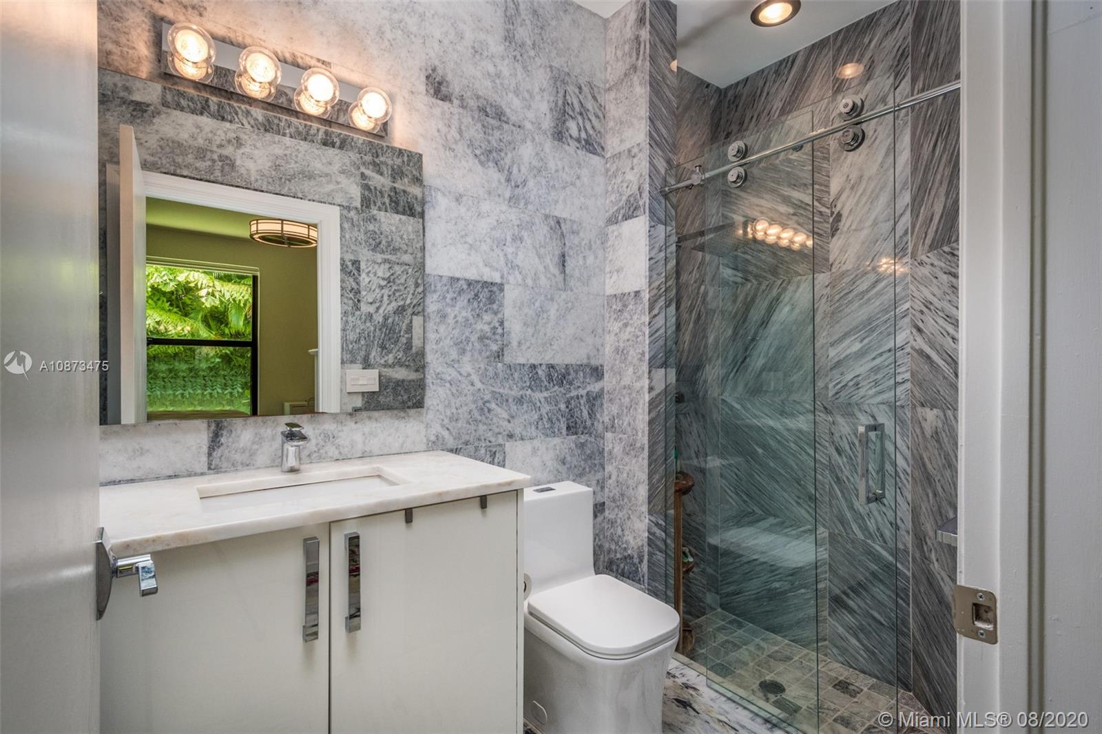 Views Views Views Backing to your own private lake with no neighbors behind with views of the fountain. This custom 4 bedroom home plus office has been transformed. Total Renovations from top to bottom. Brand new Roof and full impact windows. Top of the line Marble flooring throughout the home. Open floorplan concept with wonderful living and entertainment space. European kitchen featuring Stainless steel appliances, Jenn Air -5 burners, grand waterfall center island, convection oven, wall oven, warming drawer. Custom bar in the living room. All baths renovated in marble. Enjoy 3 bedroom ensuites plus office. Freeform heated pool renovated with marble patio, fully fenced private yard with lush landscaping. Marble master bath with his/her toilets, free-standing vessel tub.