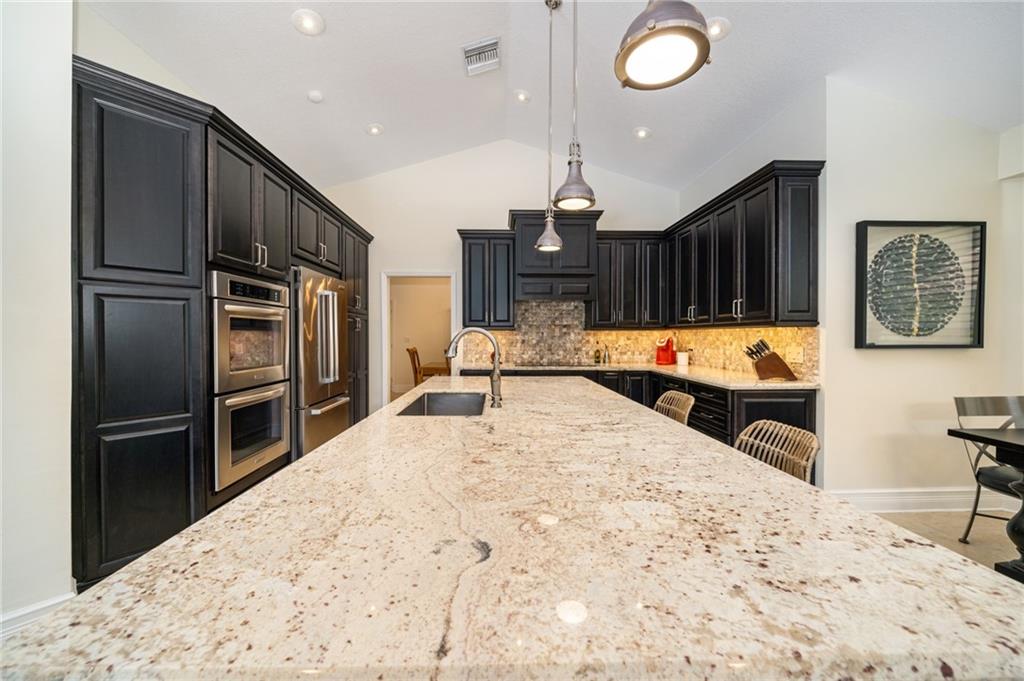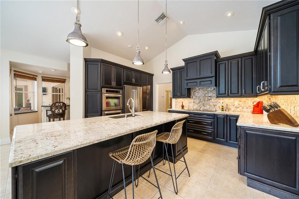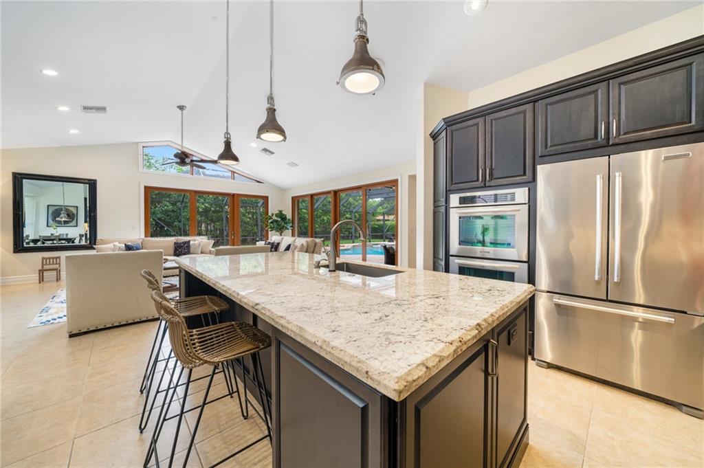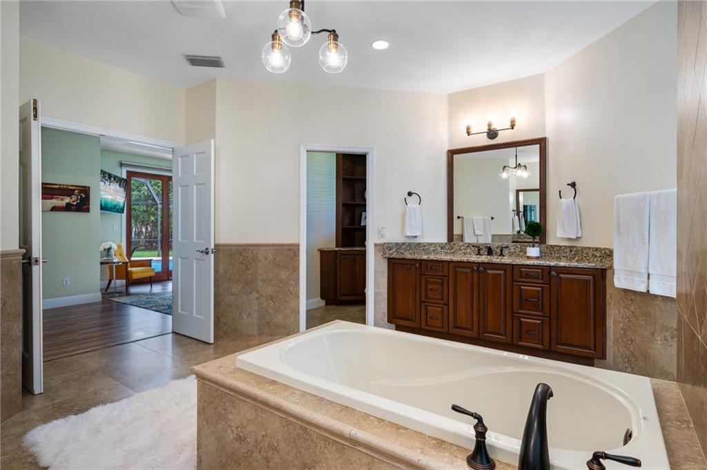 IMMACULATE 5 BED 4.5 BATH WITH A POOL AND SPA, IN UPSCALE BOUTIQUE PALM ISLAND! COMPLETELY REMODELED PROPERTY – HOME INCLUDES - SLIDING DOORS WITH IMPACT WINDOWS, A SPLIT FLOOR PLAN, BLACK GRANITE WET BAR, TRADITIONAL FIREPLACE, EXPANSIVE SCREENED PATIO, CABANA BATH, AND A POOL AREA SERVING BAR, LARGE SECLUDED BACKYARD, LOTS OF PARKING AND GREAT LANDSCAPING KITCHEN HIGHLIGHTS ARE KITCHENAID APPLIANCES & SLEEK GRANITE COUNTERTOPS, RICH DARK WOOD CABINETS & CHEF’S DREAM CENTER ISLAND. MASTER BATH HAS CENTERPIECE BATHTUB FOR SOAKING.