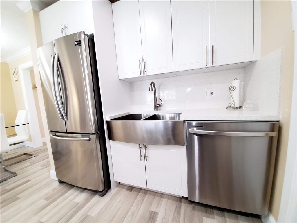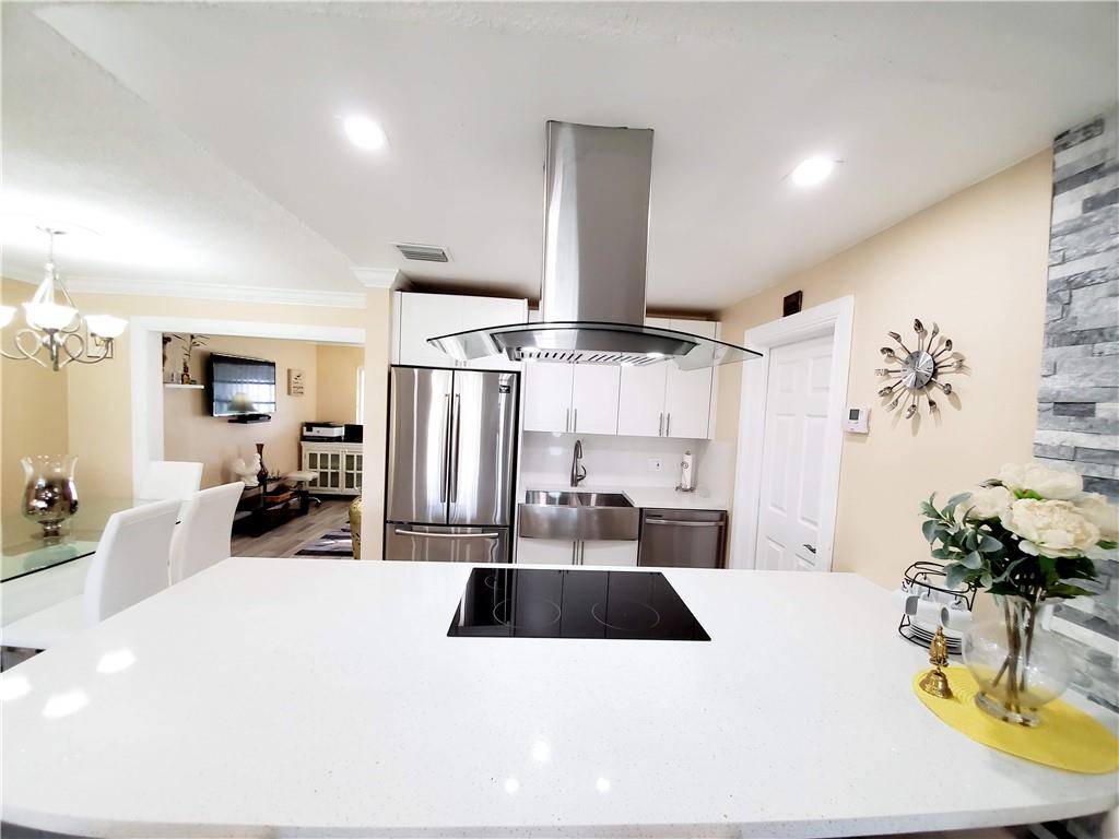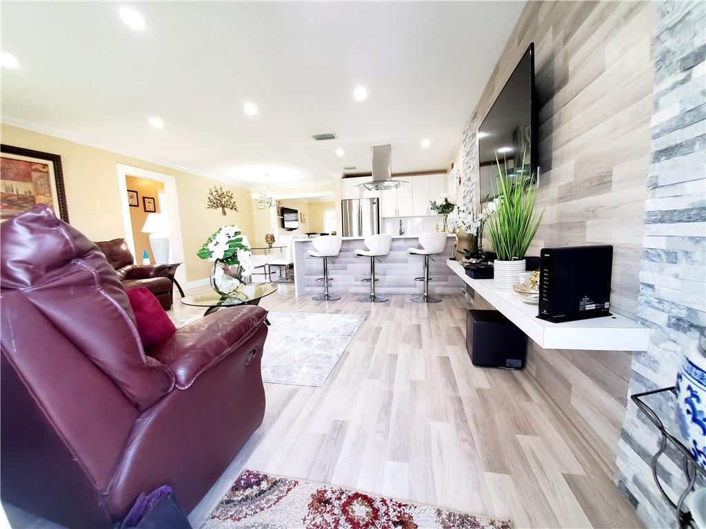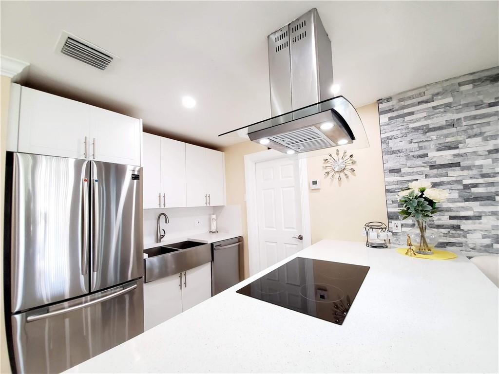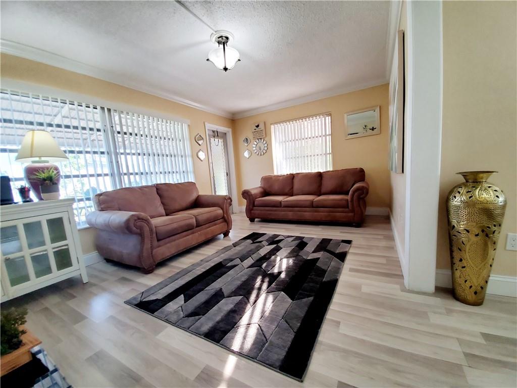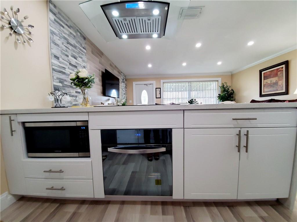 ALL updated 2/1 SFH w/1-car garage in desirable adult community of Leisureville. Great location-just across from the clubhouse/pool. You won't believe your eyes when you step inside this home! Beautifully, modern, stylish open-concept home, with lots of natural light, LR accent marble stone wall, LED high-hats, high-end finishes; SS farm sink, SS appliances & induction stovetop, wall oven, exhaust hood. Crown molding, 5 1/2in baseboards, laminate flooring in main living areas/bedrooms and ceramic tile in bathroom. Upgraded home incl. NEW kitchen with slow-close cabinetry, quartz countertops w/waterfall bkfst bar. Separate family room, outdoor covered patio, fruit trees. Permitted elec panel 2018, AC 2012, full size W/D. HOA incl;water, amenities, ext paint & pressure wash/painting of roof