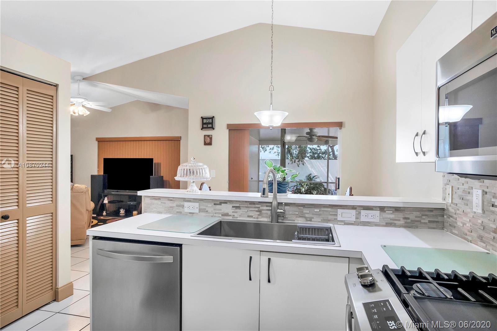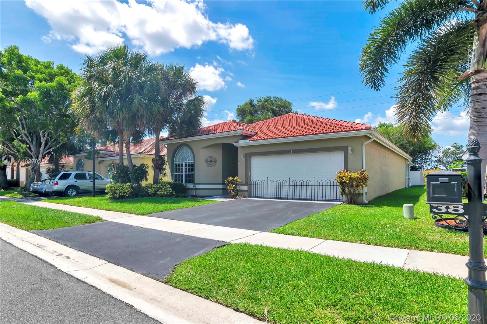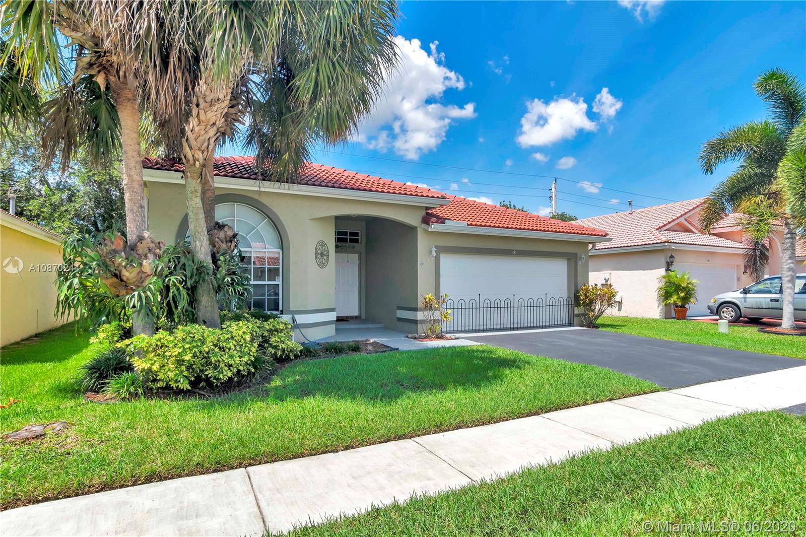 Beautiful home in The Gables at Bonaventure. This home features an open, split floor plan. Knockdown ceilings throughout the house, BRAND NEW Roof 2019 and rain gutters, New A/C February 2020. 3 ample bedrooms, 2 charming bathrooms, 2 car garages, nice neutral tile floors throughout the main living space and laminate wood mahogany-look flooring in all 3 bedrooms. Huge master bedroom with walk-in closet, master bath separate tub/shower. Gas stove. Newer stainless steel appliances. Volume ceilings, good size family room. Laundry room with newer washer & dryer, Dryer has Electric/Gas option. Screened-in cover patio. Hurricane Panels. Basic Comcast High Definition Cable. $285 year town center Amenities: gym, game room, pools, bowling & skate rink. Near the highways, shopping malls.