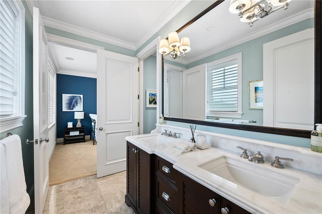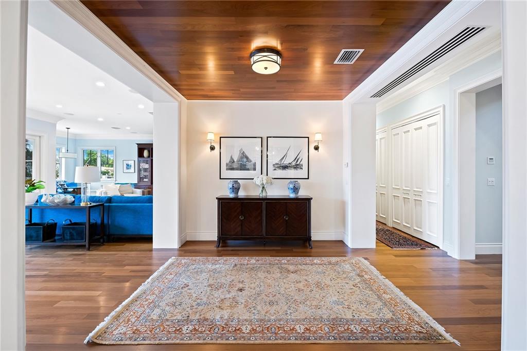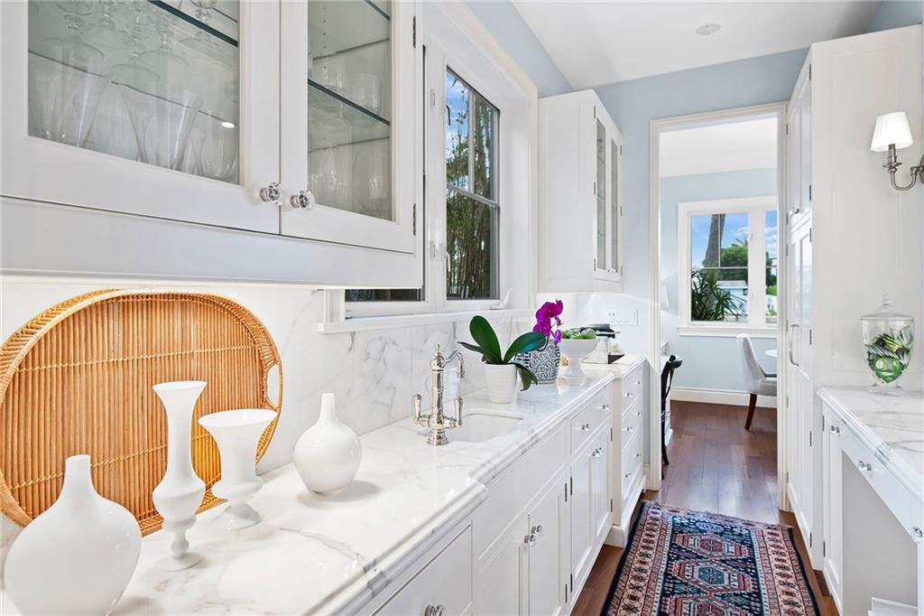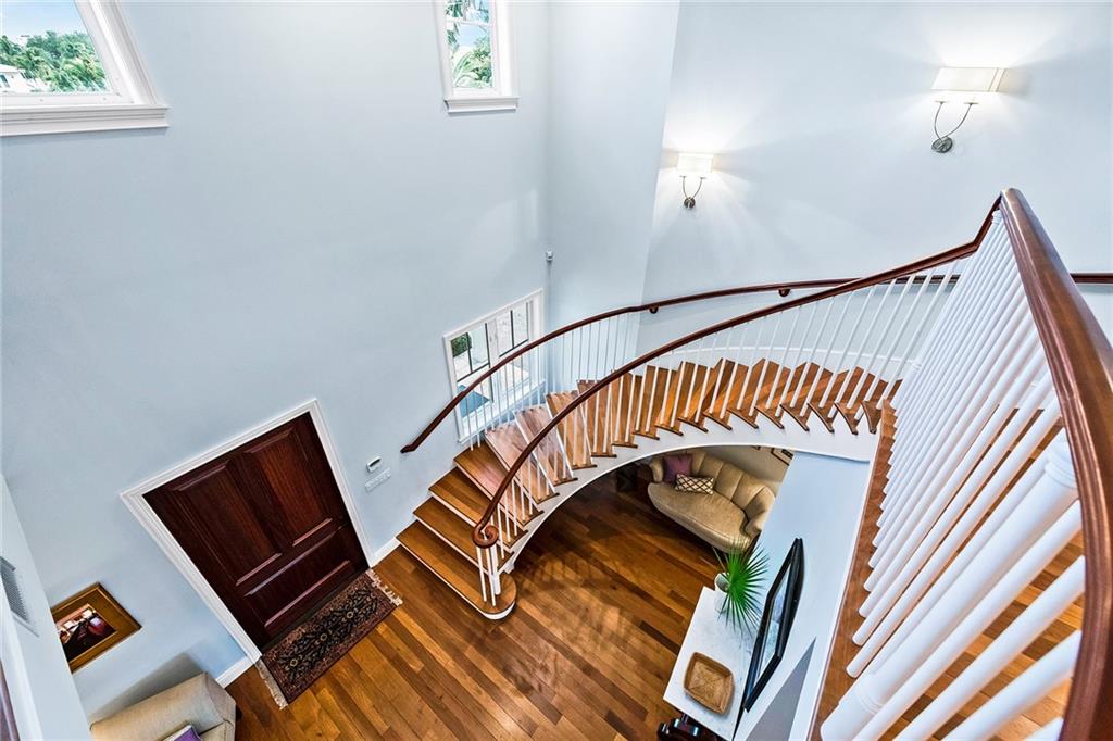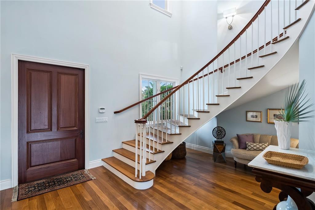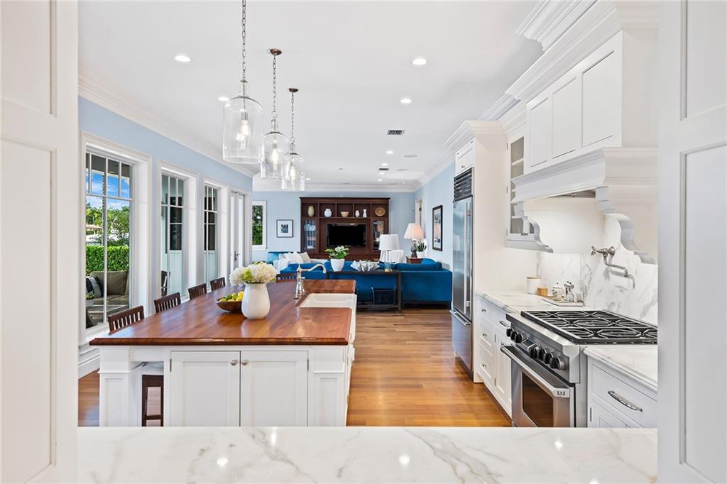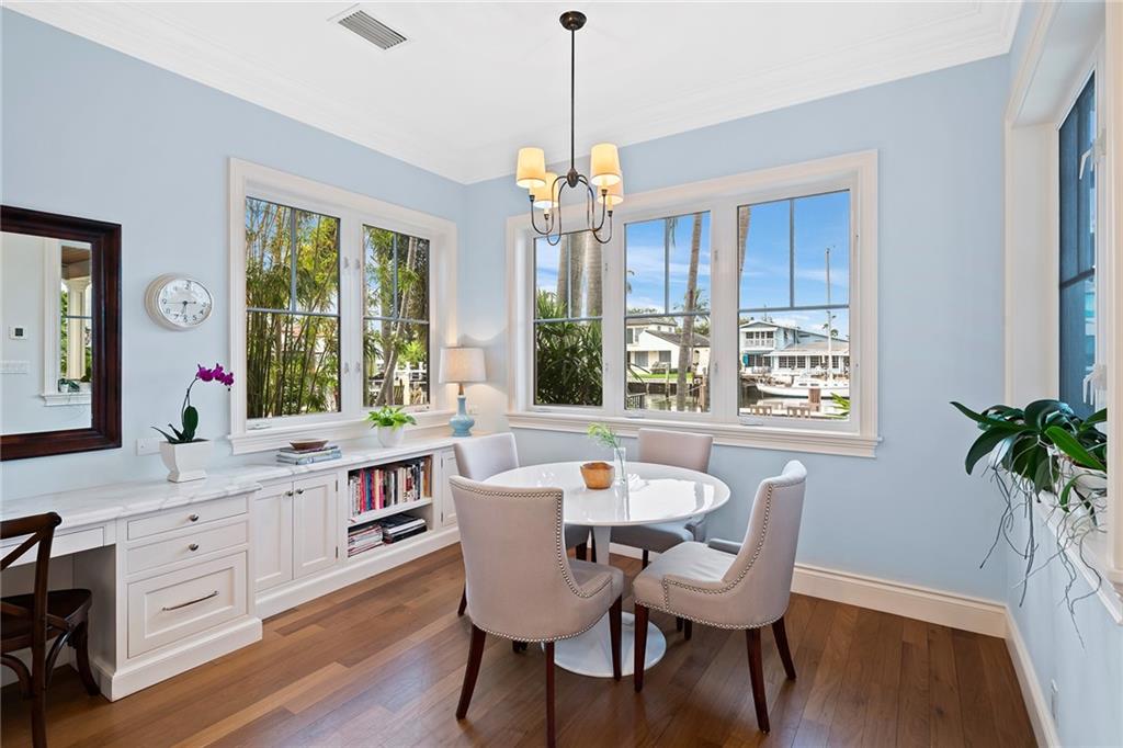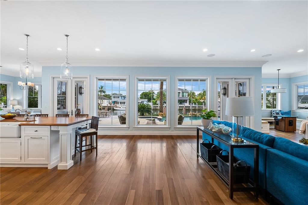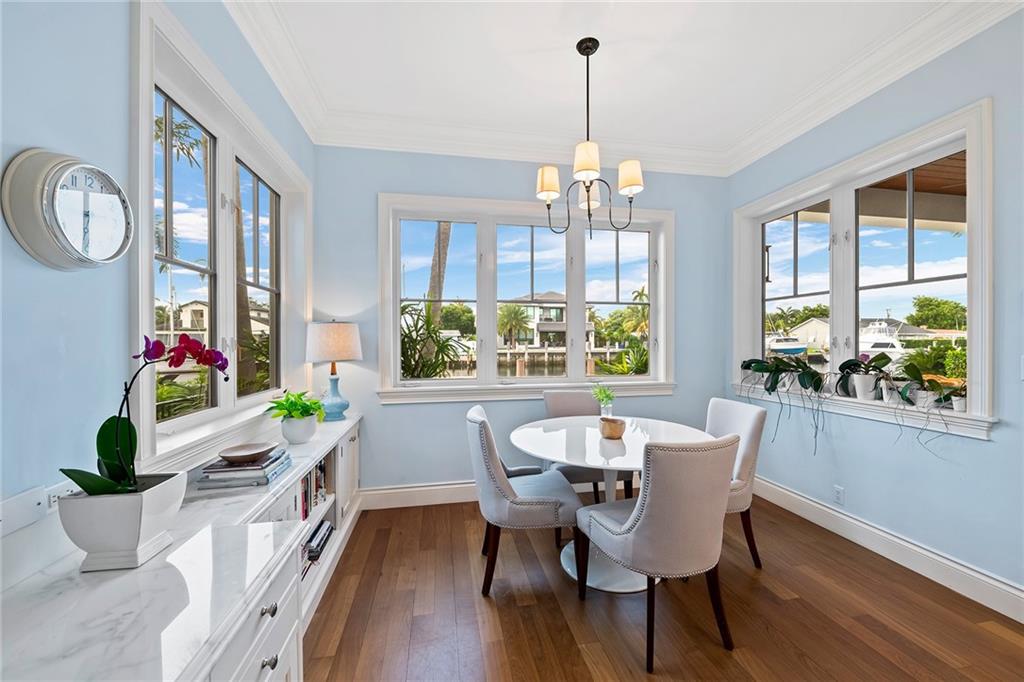 Sophisticated Coastal Colonial classic waterfront home with modern floor plan and timeless finishes. Custom built home in 2008 designed by Robert Tuthill. Offers 5 bedrooms, 4.5 baths, office off of master and upstairs loft/study area with pool. 70' WF with dock that will accommodate a 60' yacht. Dock extends 12' from seawall. Upstairs Master suite overlooks pool & waterfront with covered balcony. Elevator, upstairs laundry room. Fabulous Kitchenworks designed kitchen with DutchMade cabinetry, Calcutta Gold counters & backsplash, teak island countertop, gas cooktop, all high-end appliances plus butlers pantry. Solid plank Brazilian hardwood floors/ Marble floors in baths. Impact windows and doors. Gorgeous curved wooden staircase to second floor. Newly painted exterior. Pleasure to show.
