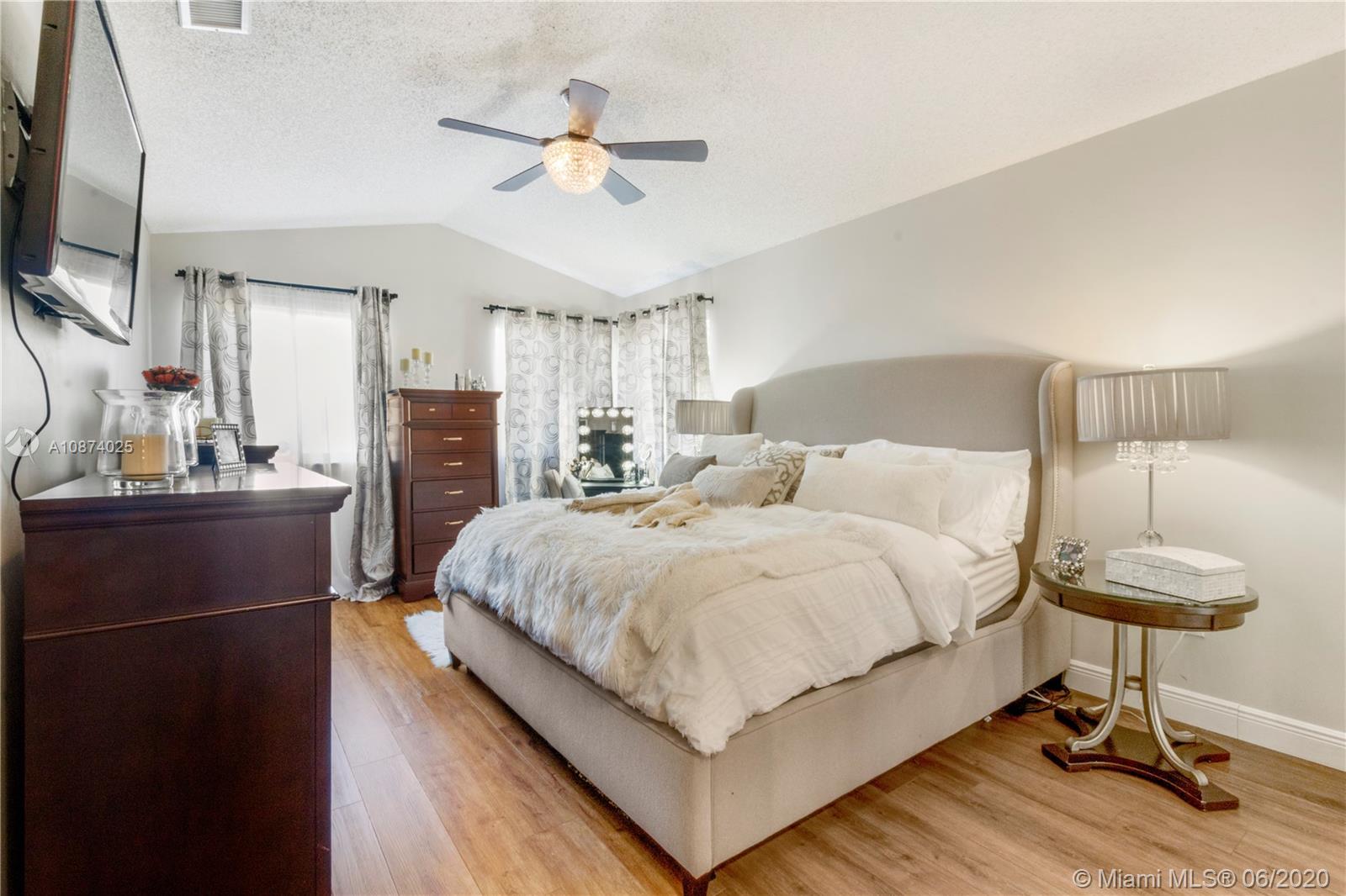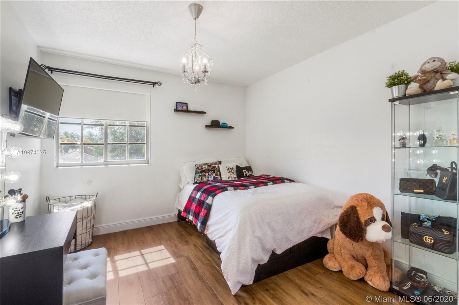 Recently renovated Single Family home that offers kitchen with Granite Countertops, including a bar with a built-in wine fridge. Expanded kitchen area with an island and extensive storage. Spacious Backyard With tiled patio with new awning for entertaining. Tiled downstairs with new waterproof wood laminate floors upstairs and stairway. Master bedroom has double entry doors and cathedral ceiling , custom built walk-in his and hers closet. Master bathroom with roman tub & shower. This home has plenty of natural light and a open concept . Hurricane shutters throughout , tankless water heater. Costa Verde a family oriented neighborhood close to Doral Academy Charter Schools. Low HOA fee of $219 includes 24 hour security, cable, pool and children's playground.