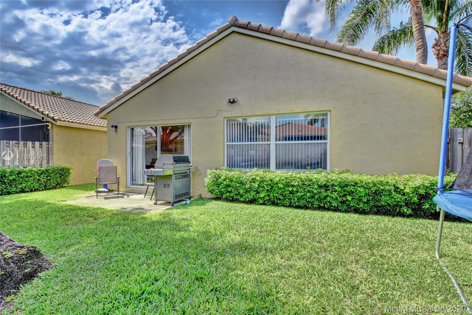 Gorgeous single-story home in highly desirable guard gated community of Emerald Estates! Brand New Roof in 2019!!! Large eat-in kitchen features white cabinetry, stone countertops, and new stainless steel appliances. Split bedrooms with an open layout, knockdown textured vaulted ceilings, deep baseboards. Tons of natural light. Hurricane shutters & impact garage door. Rheem Water Heater 2017. New lighting fixtures. Freshly painted interior/exterior. Tile flooring. Oversized corner lot. Fully fenced yard. Updated landscaping. HOA includes cable, internet, lawn/sprinkler, security, community pool, playground, and fitness center. Fantastic School system.