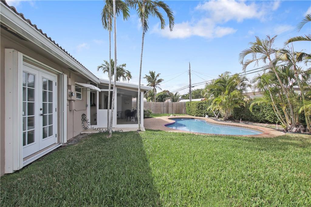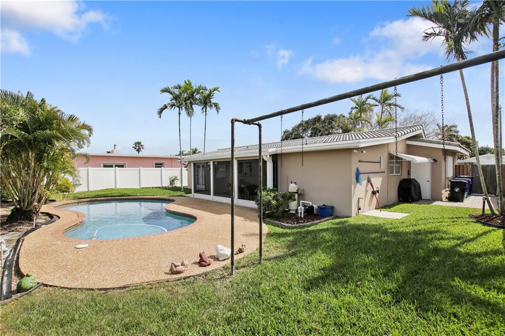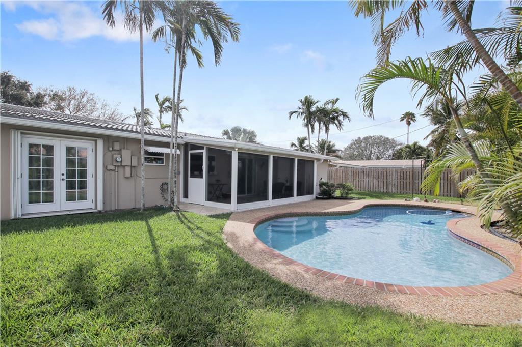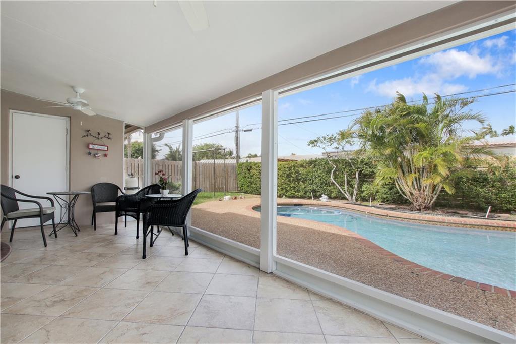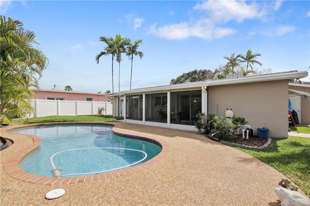 Florida home for sale in Imperial Point. 5 minutes to Lauderdale By The Sea beach. 3 Bedrooms, 2 full bathrooms. This gorgeous updated home offers granite counter tops in kitchen and bathrooms, stainless steel appliances, tile throughout the house, pool, good size back yard to entertain but not have a lot of maintenance. Conveniently located near the beach, hospitals, restaurants, etc. Yet, this house is located on a quiet and beautiful street. Dinning room chandelier is not included on this sale.