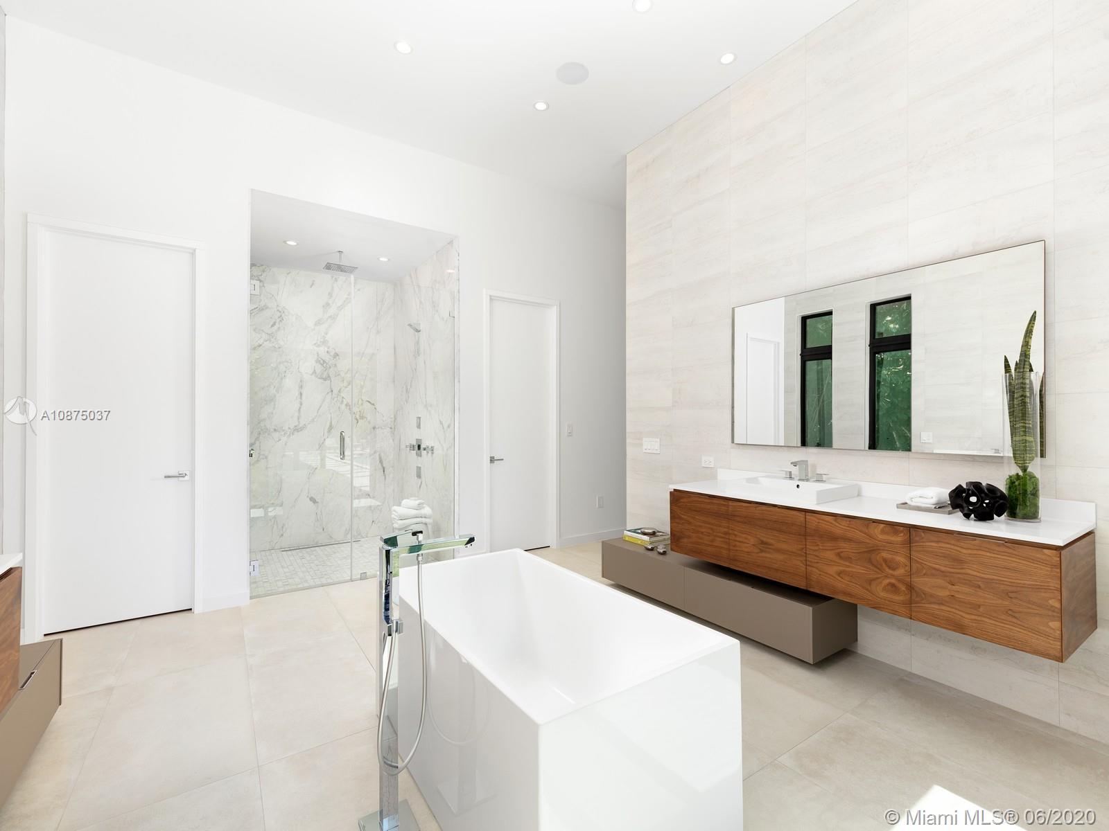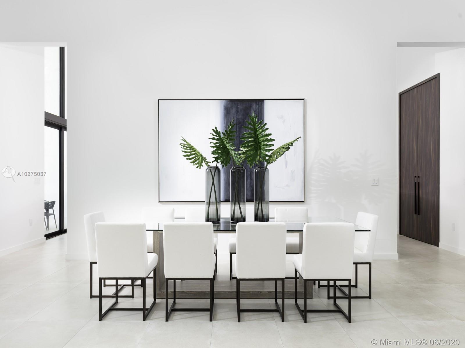 Brand-New One-story Modern Estate built with the finest finishes. Welcomed by enormous windows and doors offering plenty of natural light making this floorplan spectacular. Modern Italian Kitchen cabinets, Quartz counters, Wolf and SubZero Appliances. Picture-perfect entertaining Kitchen and Family room area while enjoying flow through yard views. Estate offers 6 en-suite bedrooms with finished closets, den/office space. Lavish master Suite with spa like bath, double vanities and water closets, floating tub, and grand shower. Find an extravagant resort style pool with expansive green grounds. LED Lighting and porcelain floors throughout. Other features: high ceilings, large covered terrace, summer kitchen, 2 car garage. Premier Pinecrest Schools nearby. 1-year builder’s warranty.