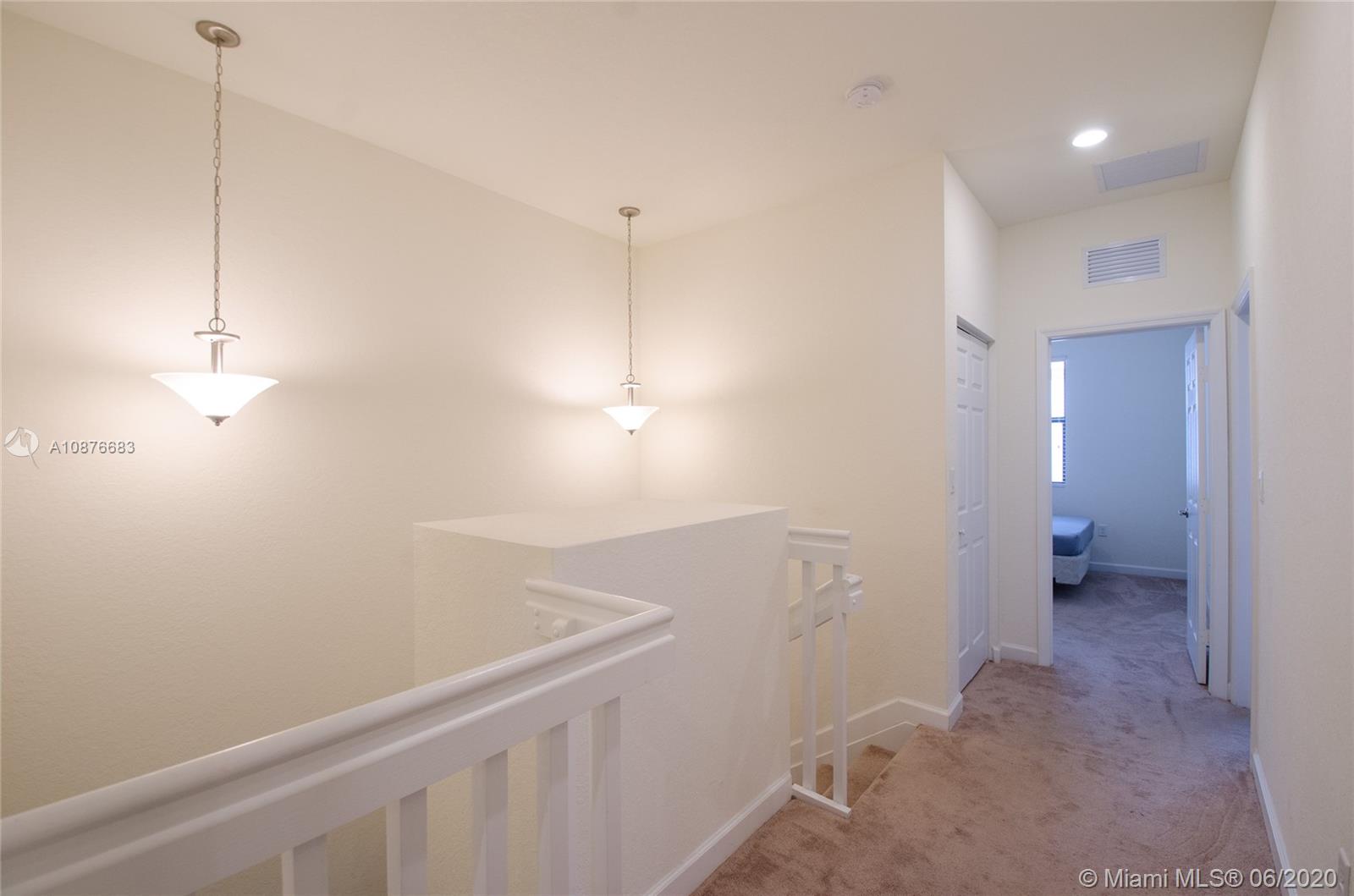 Price to sell! One of the biggest townhouses in this new gated community. This home features 4 bedrooms, 2.5 baths in 1,914 Sqf with a modern kitchen, stainless steel appliances, double-door refrigerator, easy-care mica countertop. Spacious Master Bedroom. Modern tile downstairs and carpet upstairs. Lots of natural light. Full size Washer & Dryer. One car garage and parking for up to 3 more cars on the driveway. Nice paved patio for outdoor entertainment. Residents will enjoy a great lakefront Clubhouse with children's playground, resort-style pool and state of the art gym. Excellent location, close to Miami Lakes’s excellent schools, shopping, restaurants and easy access to the main highways. Close to what pretends to be the largest shopping mall in North America, American Dream Mall.