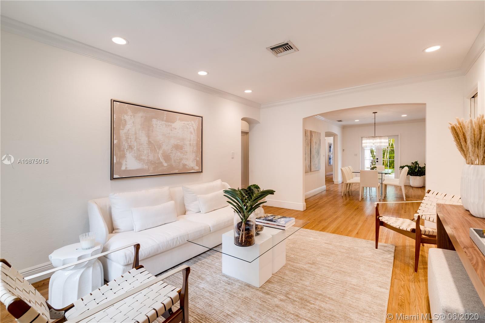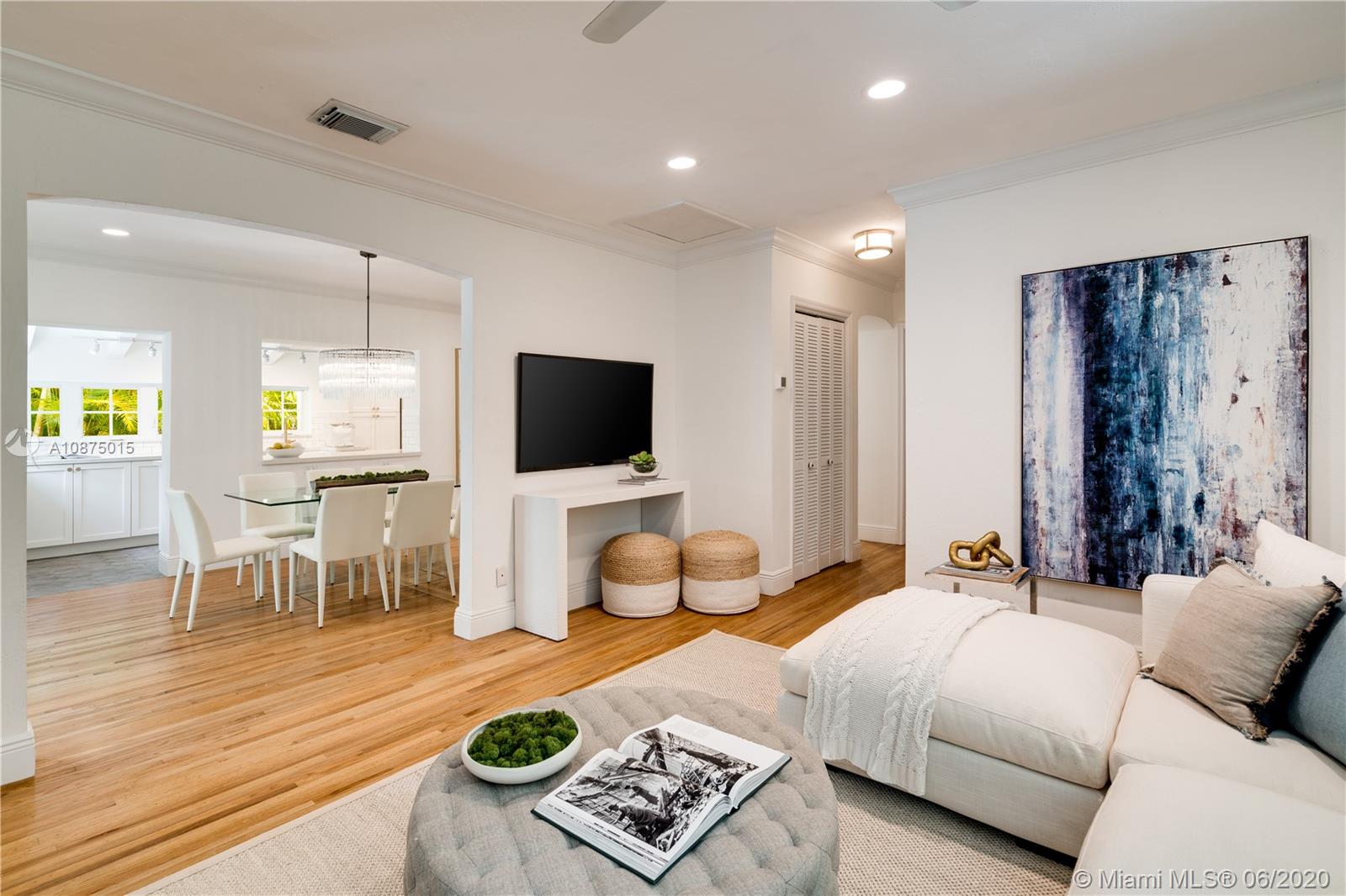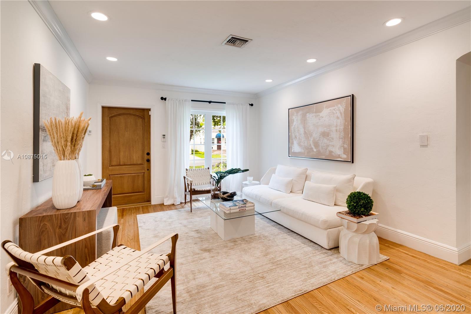 Absolutely charming one-story, 3 bedroom/3 bath home on quiet, low traffic Coral Gables street is now available for some lucky new owner. The beautiful kitchen was remodeled by the current owners and is a showplace with its sleek cabinets, white quartz counter-tops and stainless-steel appliances. Separate family room is perfect for snuggling with a bowl of popcorn and a good movie. Updated bath and large walk-in closet are ideal for this sophisticated and restful master bedroom. There is hurricane protection for the entire home. Inviting covered back porch overlooks an easy-to-maintain backyard. A Very Special Home.