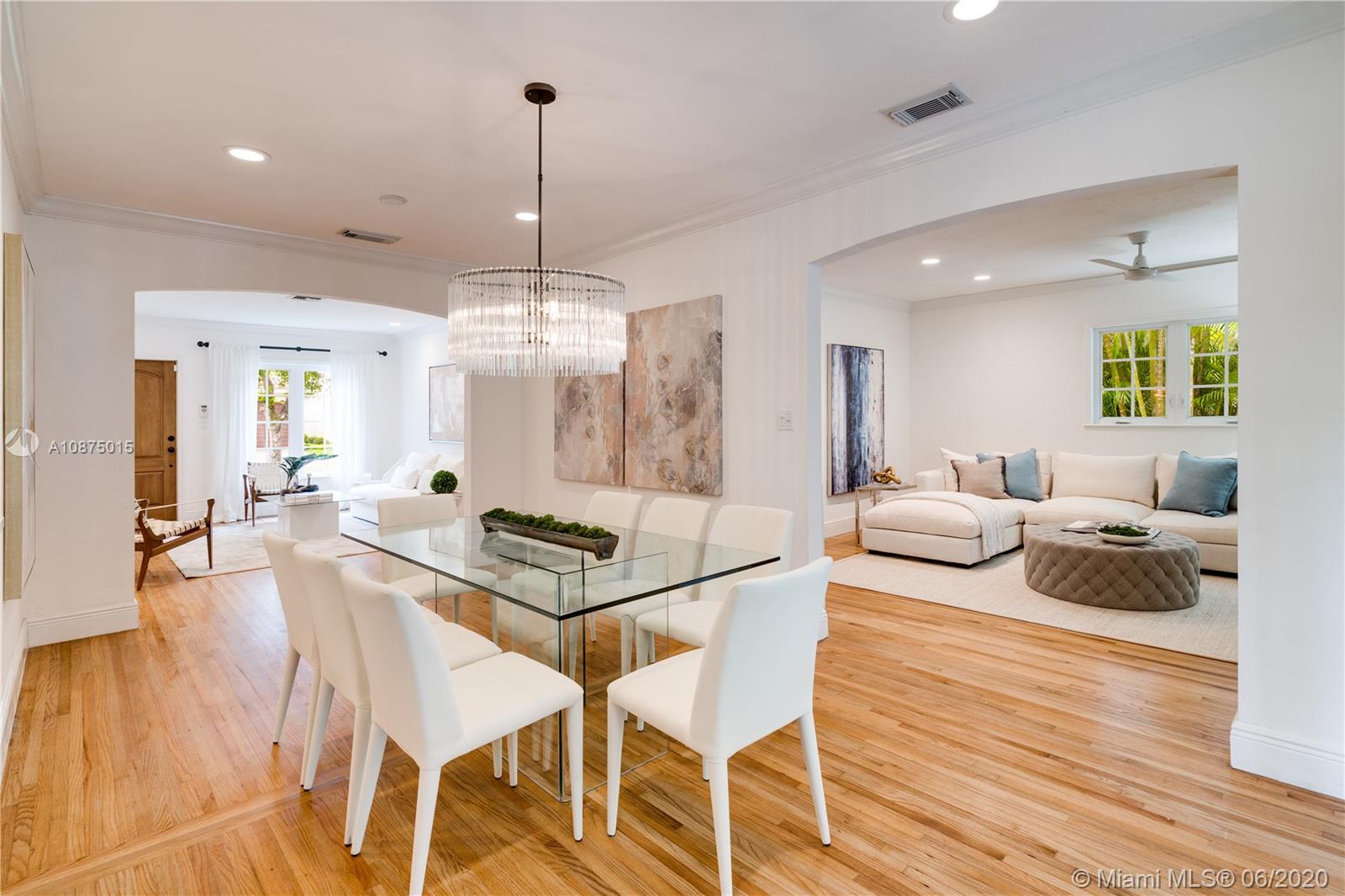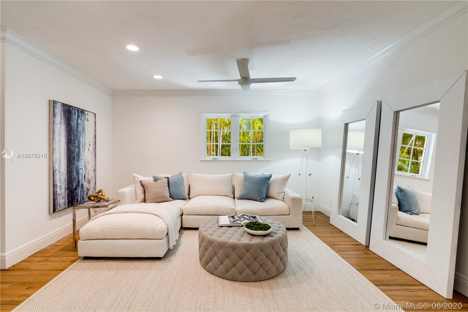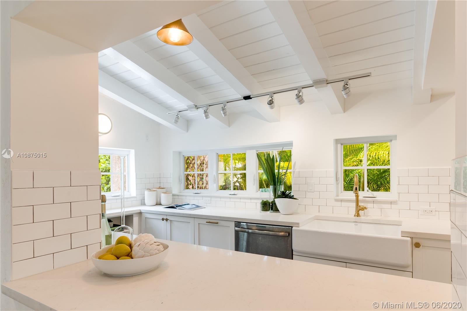 Absolutely charming one-story, 3 bedroom/3 bath home on quiet, low traffic Coral Gables street is now available for some lucky new owner. The beautiful kitchen was remodeled by the current owners and is a showplace with its sleek cabinets, white quartz counter-tops and stainless-steel appliances. Separate family room is perfect for snuggling with a bowl of popcorn and a good movie. Updated bath and large walk-in closet are ideal for this sophisticated and restful master bedroom. There is hurricane protection for the entire home. Inviting covered back porch overlooks an easy-to-maintain backyard. A Very Special Home.