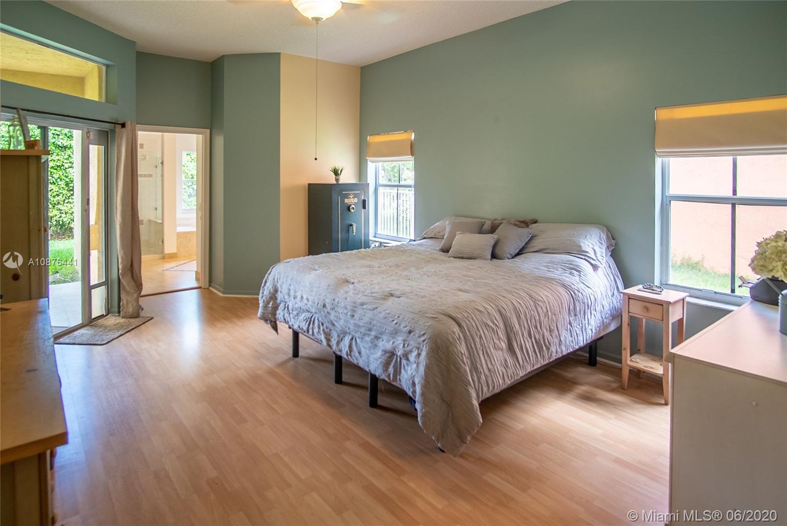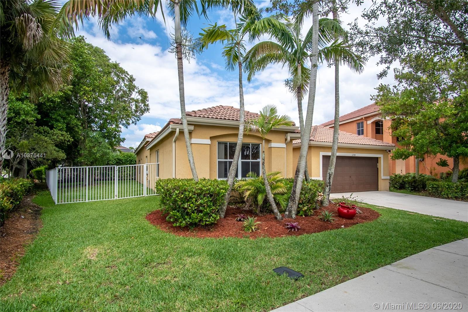 This comfortably spacious split floor plan 4 bed 2.5 bath 2 car garage,corner lot home sits across from a peaceful park in the desirable gated community of Savanna in Weston. Master suite includes lrg walkn closet, roman tub, separate frameless shwr, dual sinks. Stainless-steel kitchen appliances, solar power water heater, epoxy garage floor, paved walkway & rear covered patio. Large yard w/mature foliage. Exceptional amenities include clubhouse, resort pool & water-slide. Residents also enjoy access to miniature golf course, multi-purpose field, roller hockey rink, playground, & basketball court. Top rated schools & shopping/dining are all just a few minutes away. Everything is here! This happy home is filled with wonderful memories & is now ready for YOUR family to make it their own.