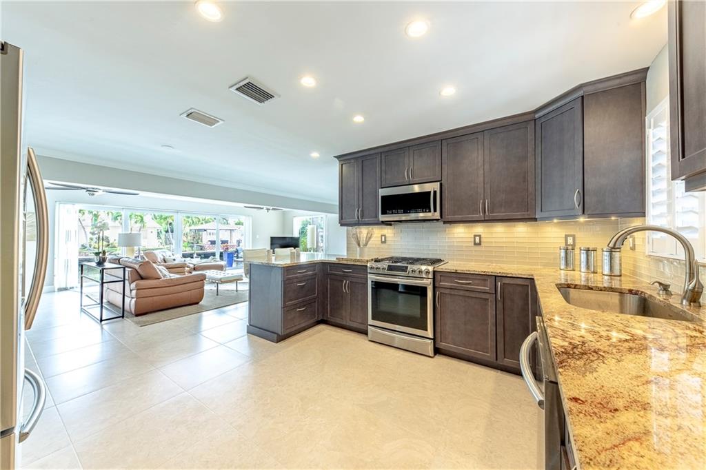 Holy Moly! This home seriously has it all. The term pristine does not do this house justice. This Ocean Access split bedroom floor plan pool home with 3 Bedroom/2 bathroom, 2 car garage, remodeled open kitchen with stainless appliances, dual temp wine fridge, natural gas stove & tankless water heater, entire house water filtration system, laundry room with washer & gas dryer, impact sliders, covered patio leading to spectacular brick paver pool deck, gorgeous dock waiting for your boat & floating dock for small vessels included. Short ride to ICW via Lake Santa Barbara. This is truly a boaters paradise. A/C has U/V for sterilized air. Portable Generac w/quick connect. Meticulously manicured landscaping. Owner has done it right!
