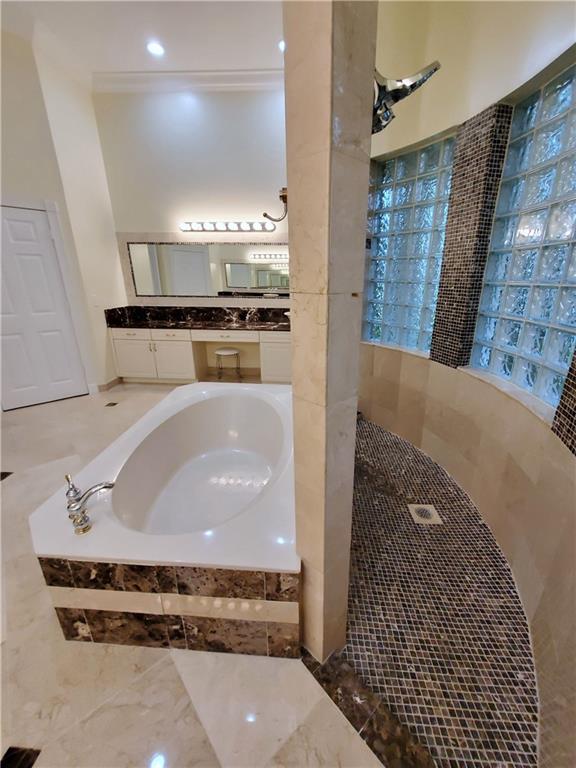 Stunning builders acre located in the guard gated community of Emerald Springs Estates. This split 5/3 floor plan home offers a beautiful entrance with direct views to nature preserve also featuring a tropical lush back yard with custom pebble tech pool, over sized travertine marble covered lanai with outdoor shower. Large open kitchen featuring Stainless Steel Bosch and Thermador appliances, double oven, granite counter tops, and beautiful wood cabinetry. Office with built ins. Private master bedroom retreat complete w/ 2 walk in closets boasting California closet built-ins, master bathroom highlighted with his/her sinks, walk in shower all in marble and granite. Turn key and priced to sell! Close to shopping, highways, parks and A rated schools.