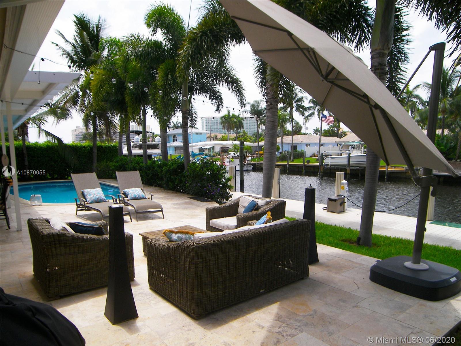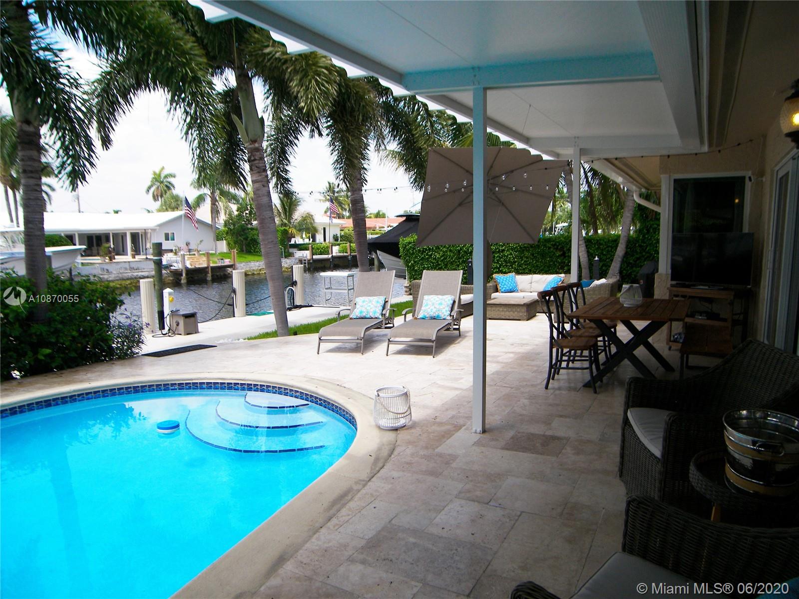 This exceptional 4 bed/3 full bath plus den or family room on 85' waterfront property, NO FIX bridge, was completely remodeled recently; doors and hurricane windows, seawall, post and composite dock with water and 50 + 30 amp power for up to 60' yacht, all redone in 2018. 2017 AC heat pomp, 2014 pool pomp, roof and all patio redone. New tile, new paint inside and out, new gutters, new diamond brite pool finish ..and much more. Open bright kitchen with split bedroom floor plan and an additional really nice family room. This is the perfect boater's retreat in one of Pompano most desirable community, Harbor Village. Close to beach,fishing pier, nice restaurants, shopping and all services.