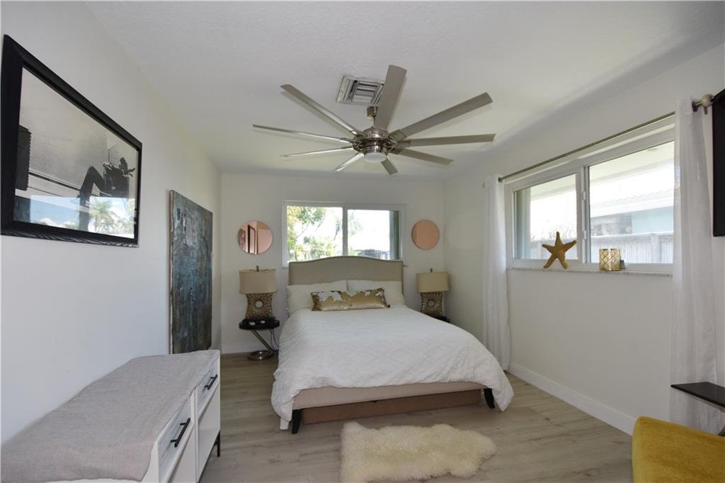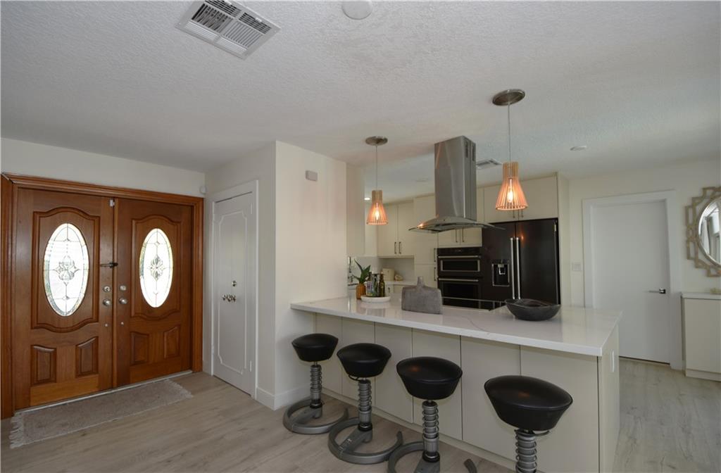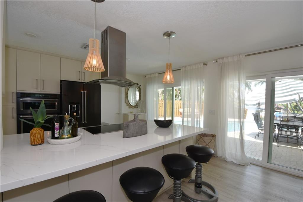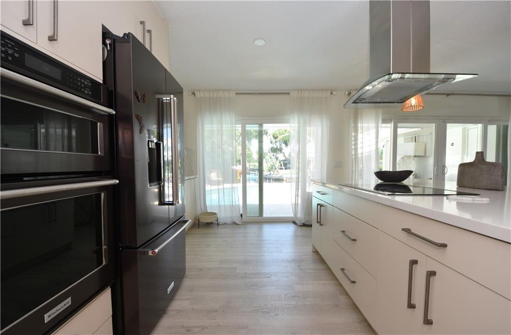 A STUNNING total renovation (2018) of this waterfront pool home in a light grey & white pallet! Open floor plan featuring a lg kitchen island with Quartzite counter tops, beautiful cabinetry, modern SS range hood & new appliances, leaving the rest of the room with ample space for living & dining arrangements. Renovated baths feature Quartz & the same colors. Master features a Pax Wardrobe system & a stunning bath with lg shower. Beautiful grey flooring throughout. New front load washer/dryer, storage system, AC ‘18, new insulation, impact windows/doors throughout, new roof ‘14. Direct water views straight down the canal! Fixed bridges with 6’ clearance at high tide and 25 mins to the intracoastal! Seawall updated ‘17. Generous backyard with pool (new pool pump ’17) & privacy fence.