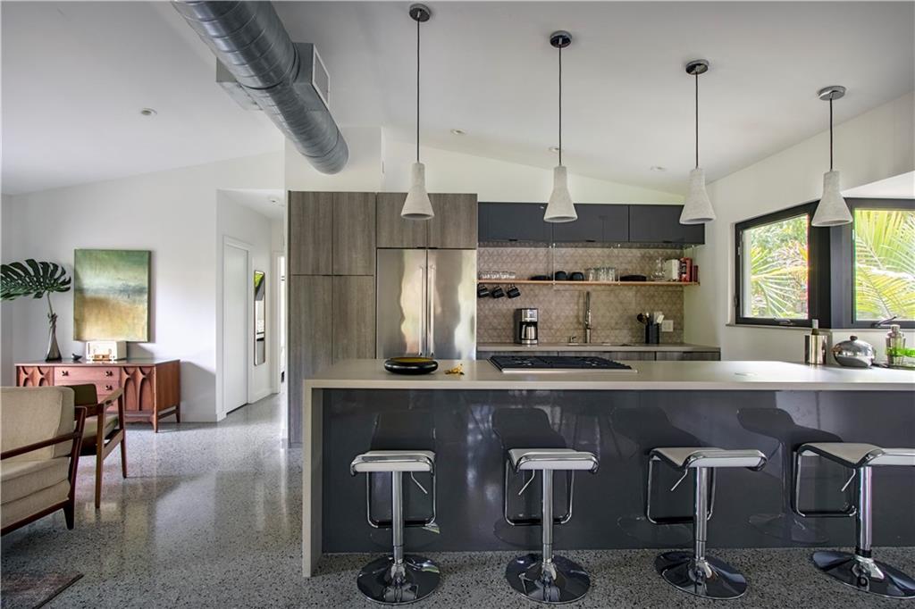 One-of-a-kind award-winning mid-century modern home was originally designed by Robert E. Hansen and carefully renovated by its current and second-ever owners. Sunbathed rooms offer vistas of the beautifully landscaped and private property--a tropical garden housing a collection of rare flora from around the world. Dazzling terrazzo composed of green carrara marble, jade, and iridescent stones spans the entire first floor. Open living area with vaulted ceilings ideal for modern entertaining. A heated saltwater pool and hot tub were added in 2017 to complete the outdoor oasis. Located on a quiet street a short walk to Wilton Drive.