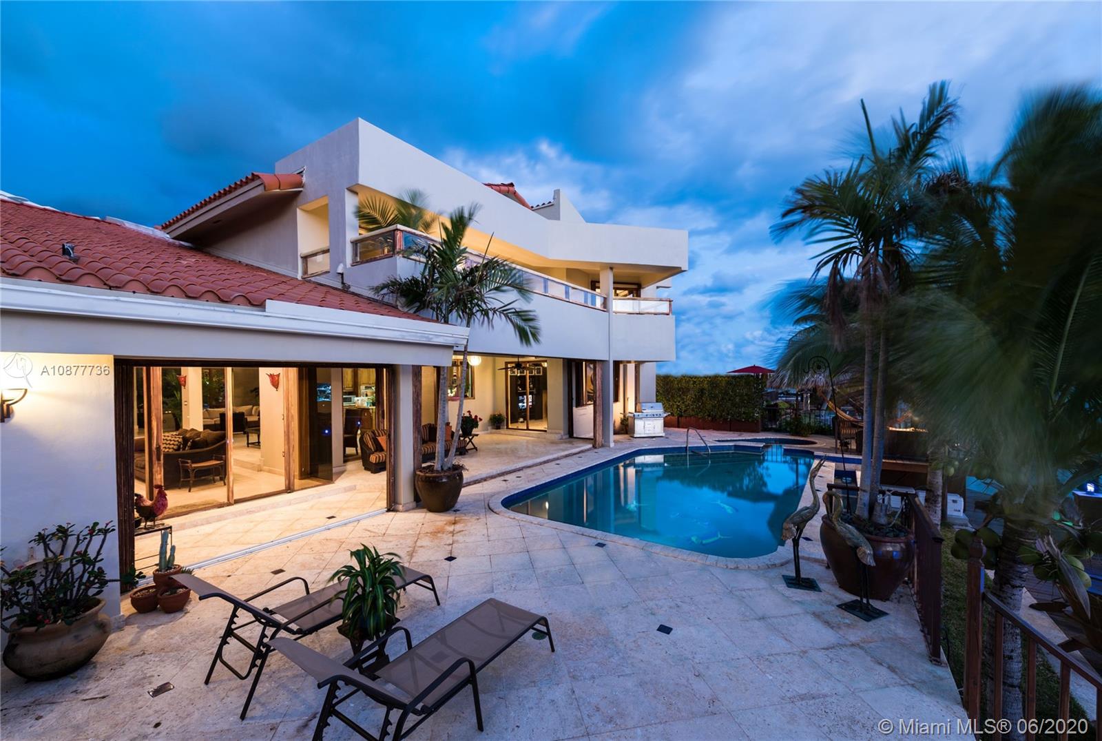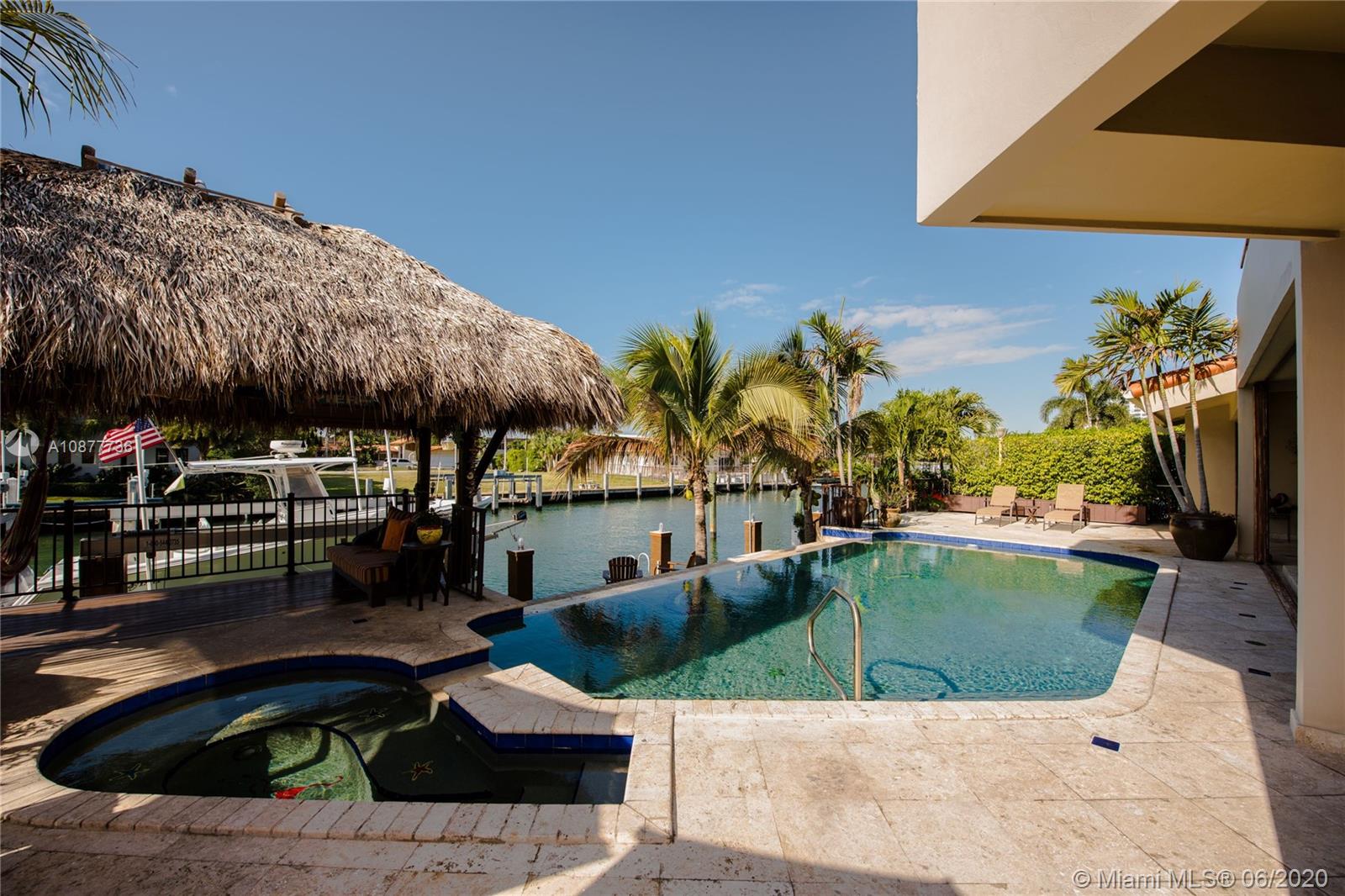Smashing wide bay views throughout and protected 75’ deep water dockage for a large boat in this 5-bedroom 5.5-bath updated waterfront Florida contemporary home in guard-gated neighborhood near Bal Harbour, Downtown and Aventura. Brand new dock and seawall. Soaring ceilings throughout grand open living spaces. Lots of doors open to negative edge pool. Gourmet kitchen, enormous master suite with amazing views and private balcony for bay breezes. Enjoy your own piece of Florida waterfront paradise in style.