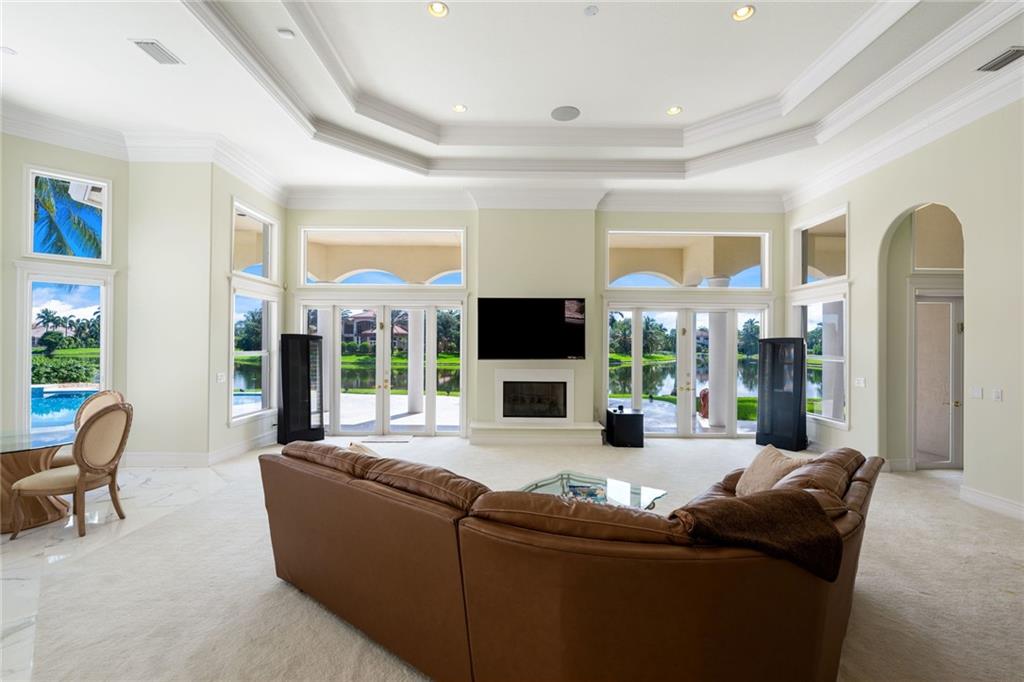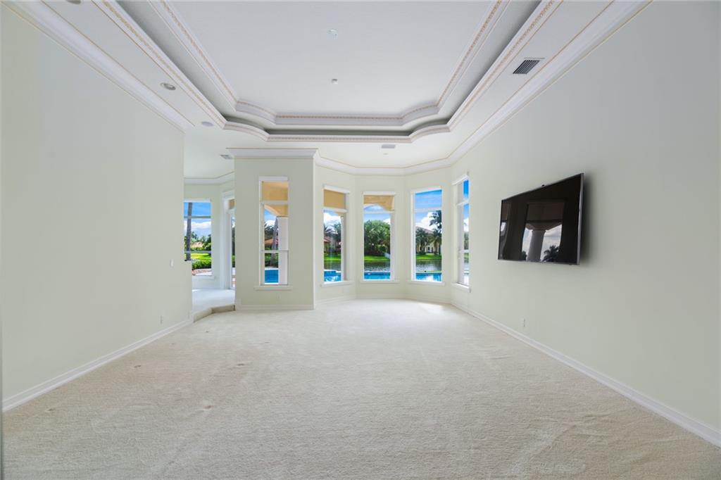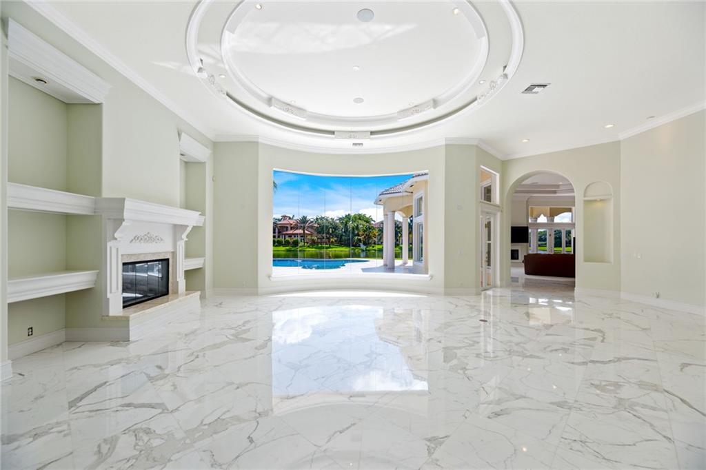 Stonebrook, unique single story home with over 8,000sf of livable space plus 3 car garage and covered patio.Grand entrance wrapped with natural light offers expansive views of the pool and lake through the custom round windows.This estate features a functional triple split floor plan with 5 bed,5 baths and a 1/2 bath, master suite privately situated on north wing with impressive water views,junior suite on the south wing offering lake views.Outstanding qualities of this home include marble flooring, custom build kitchen cabinetry with Onyx backsplash,vaulted ceilings, gas fireplaces,custom shades, free form pool, beach shell stone deck, stainless steel drains.Gated community with a clubhouse fully equipped,fitness center,media/party room as well as basketball,volleyball and tennis courts