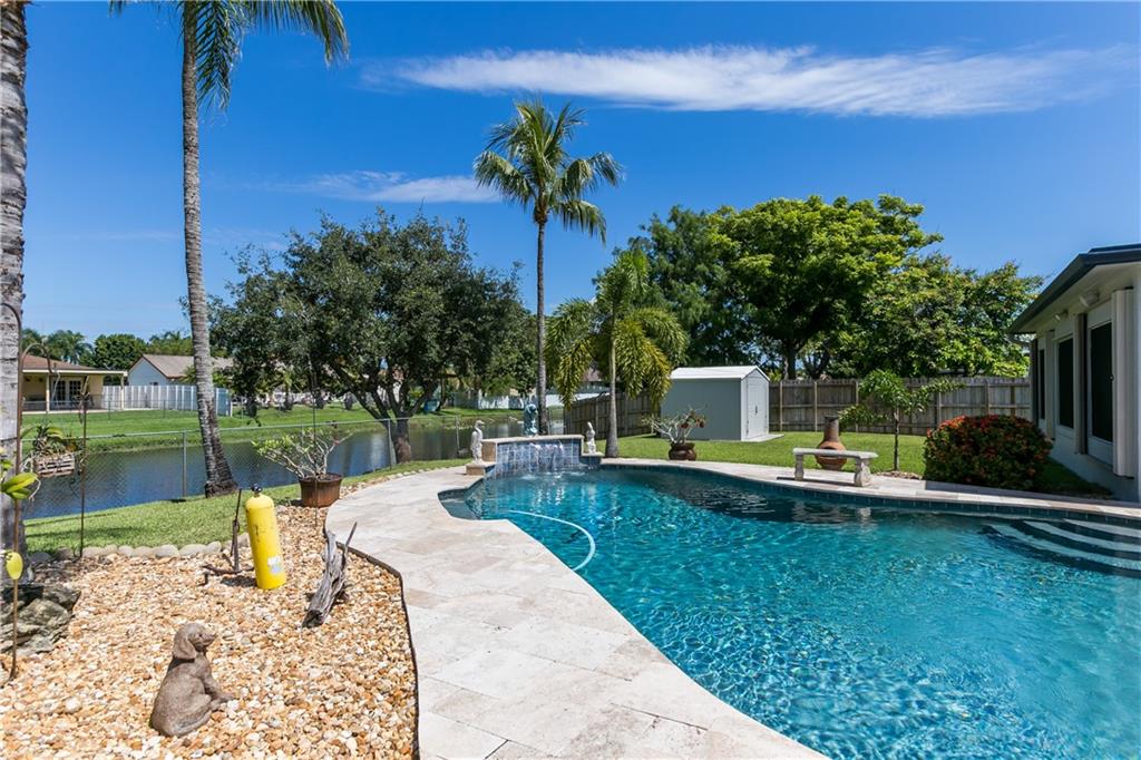 BEAUTIFULLY UPDATED 4 BEDROOM 2 BATH LAKEFRONT HOME WITH POOL* TILE FLOORS THRU OUT MAIN LIVING AREA*GORGEOUS EAT- KITCHEN WITH WOOD CABINETS, GRANITE COUNTER TOPS, STAINLESS STEEL APPLIANCES AND MARBLE FLOOR*SPACIOUS MASTER BEDROOM WITH WALK-IN CLOSET AND UPDATED BATH WITH GLASS SHOWER DOORS*SPLIT BEDROOM FLOOR PLAN*LAMINATE WOOD FLOORS*REMODELED GUEST BATH*IMPACT WINDOWS*FRENCH DOORS*OWNERS ADDED A HUGE ROOFED SCREENED IN PATIO (32'X 16') OVERLOOKING SERENE LAKE AND POOL AREA -GREAT FOR ENTERTAINING*NICELY LANDSCAPED*COVERED FRONT PATIO*OVER-SIZED PAVER DRIVEWAY* FENCED YARD*NO HOA*4TH BEDROOM SHOWS A DEN*SHOWS GREAT!!!