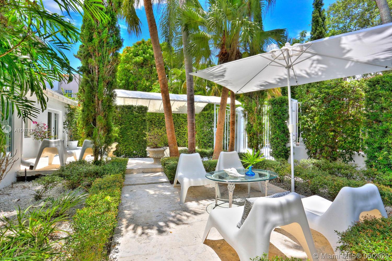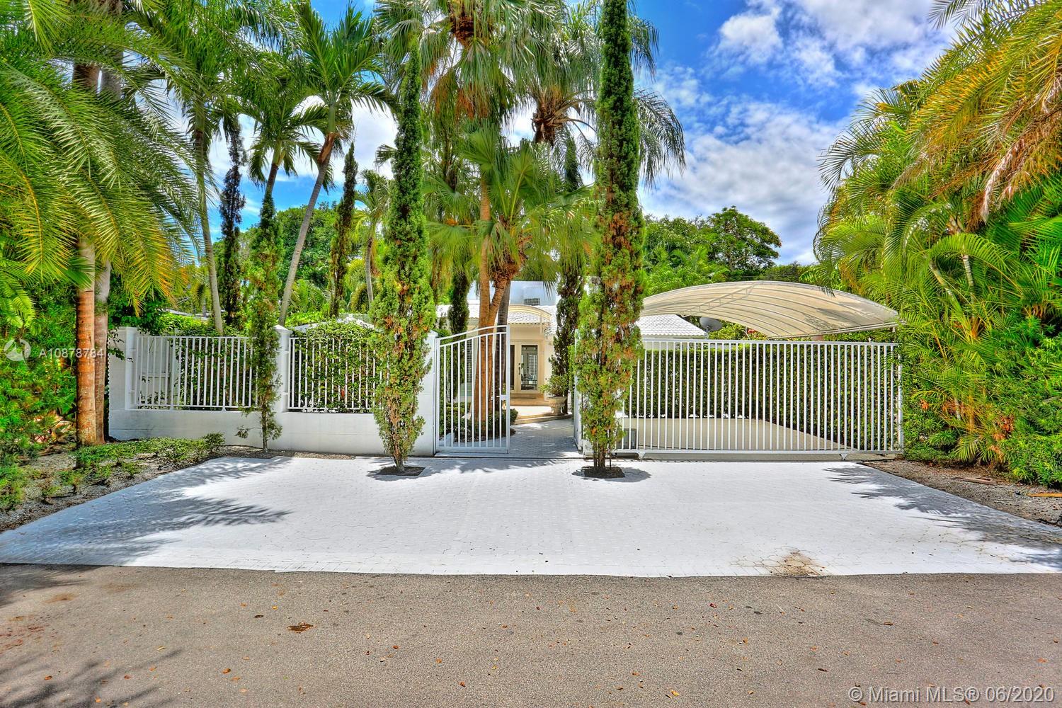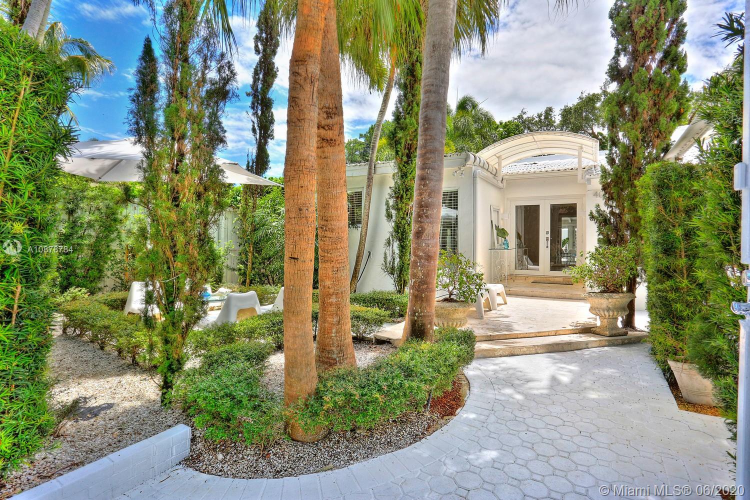 Ultra-private & serene retreat on a quiet tree-lined street in prime South Grove location. Stunning, light-filled living spaces w/ high ceilings & white-washed oak flooring. French doors throughout, overlook tranquil pool & lush tropical gardens & terraces that surround the home. A white color-palette provides the ideal backdrop for art collections. Renovated, custom kitchen opens to adjacent breakfast area. Formal living, dining & family rooms as well as two master suites (one up & one down) each w/ private sitting areas and luxurious baths w/ soaking tubs. Gated, covered parking for 2 cars + guest parking for 3+ cars. Walk to the Grove village center’s, boutiques, cafes and bayfront parks & marinas. Also just minutes to downtown Coral Gables & South Miami world-class shopping & dining.