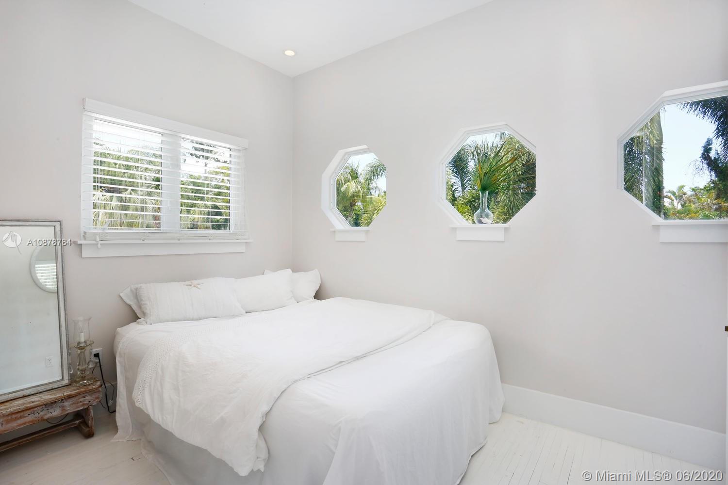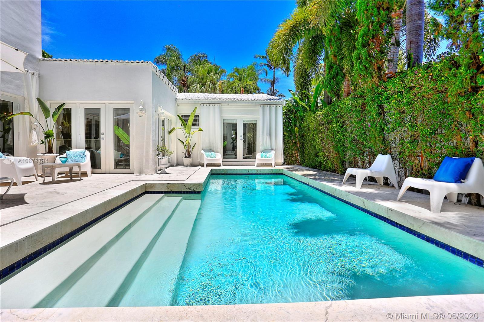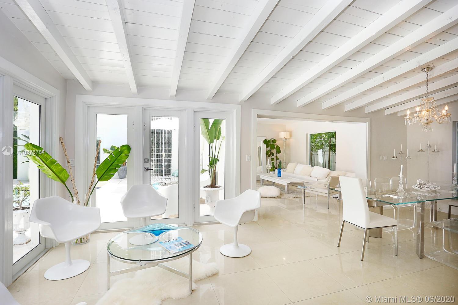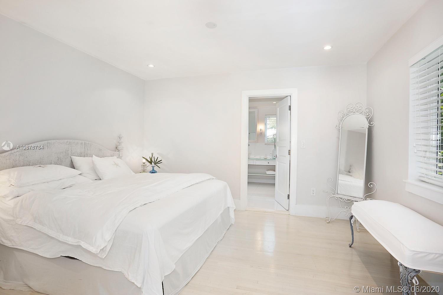 Ultra-private & serene retreat on a quiet tree-lined street in prime South Grove location. Stunning, light-filled living spaces w/ high ceilings & white-washed oak flooring. French doors throughout, overlook tranquil pool & lush tropical gardens & terraces that surround the home. A white color-palette provides the ideal backdrop for art collections. Renovated, custom kitchen opens to adjacent breakfast area. Formal living, dining & family rooms as well as two master suites (one up & one down) each w/ private sitting areas and luxurious baths w/ soaking tubs. Gated, covered parking for 2 cars + guest parking for 3+ cars. Walk to the Grove village center’s, boutiques, cafes and bayfront parks & marinas. Also just minutes to downtown Coral Gables & South Miami world-class shopping & dining.