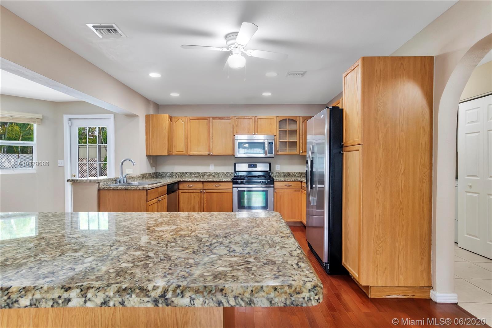 MUST SEE Large Pool Home with over 2400 SF. This beautiful home features 4 Bedrooms, 3.5 Baths. Large Updated Kitchen with breakfast seating area, perfect for entertaining, granite countertops and Stainless Steel appliances. Two master bedrooms. Walk in closets. Two full baths have Marble, Tile Wood and Granite Finishes. Tile and Wood Floors throughout, Spacious living area features living room & Family Room with Wet Bar Leads out to the large Pool area w/Service Bar perfect for entertaining. Laundry room. Lots of closet space. Fully Fenced in Yard, French Doors, Hurricane Panels. Oversized paver driveway perfect to park RV, boat, large trucks or other entertainment vehicles, Freshly Painted Exterior. Conveniently located on the East Side and not far from the beach.