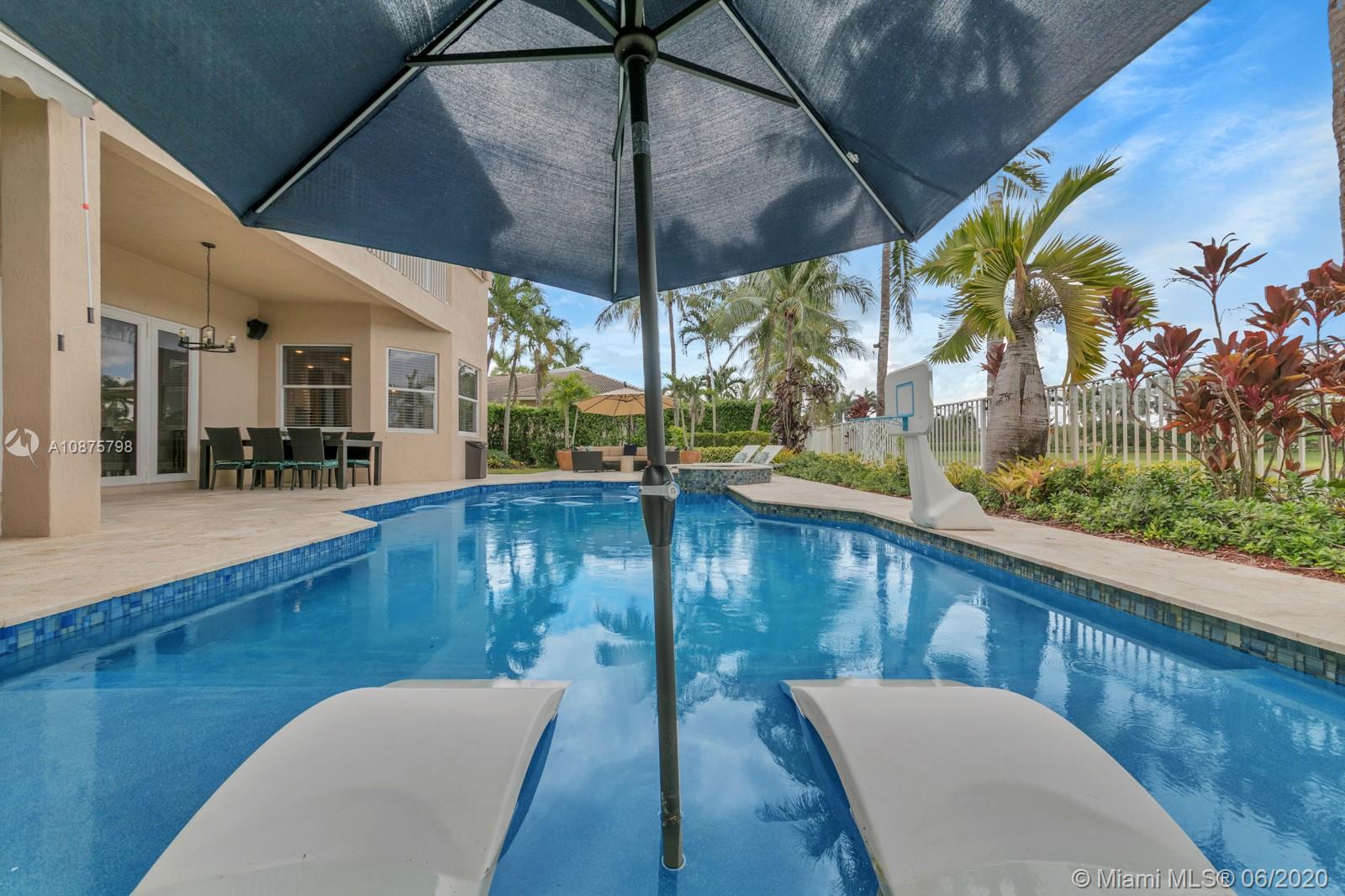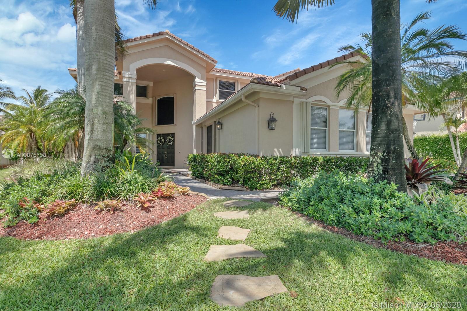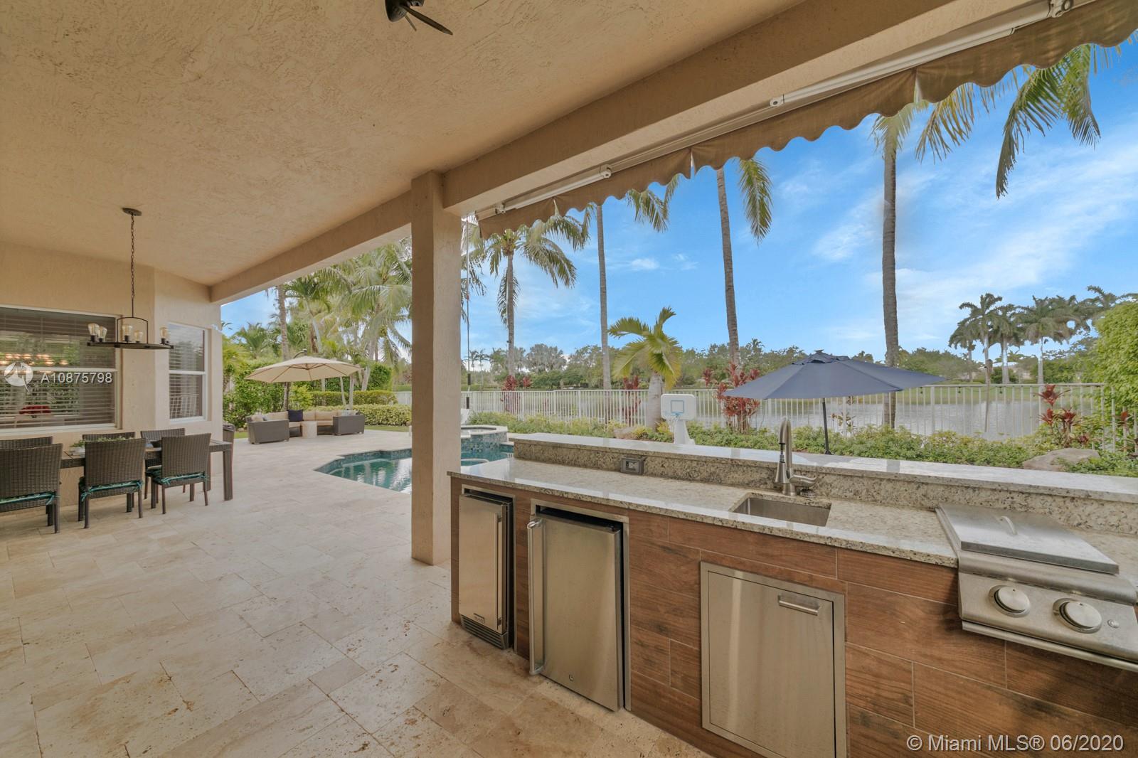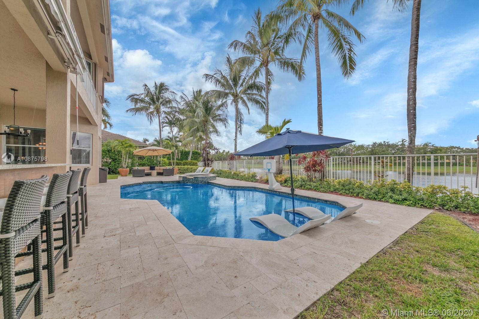 WoW! Big, Bold & Beautiful! Tastefully updated with a contemporary flair, this lakefront home is perfect for enjoying the Florida lifestyle. 5 bedrooms, 5.5 bathrooms + office, 20x14 playroom and loft spans 5365 sq ft (inclusive of 1/1 guest house). Grand entry with volume ceiling and elegant custom staircase welcome you home! Center island kitchen w/breakfast nook overlooks the family room. Luxurious master wing w/sitting area features 300 sq ft balcony allowing you to experience breathtaking sunsets from your private suite. The resort-style backyard features a travertine marble patio and summer kitchen w/built in grill+Argentinian BBQ, perfect for outdoor chef. Heated and salt freeform pool+spa is surrounded by lush tropical landscaping. Guard gated community w/pools, ballfields etc.