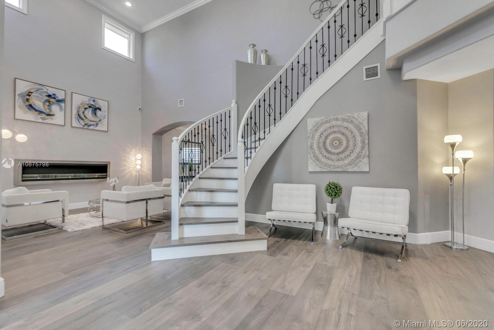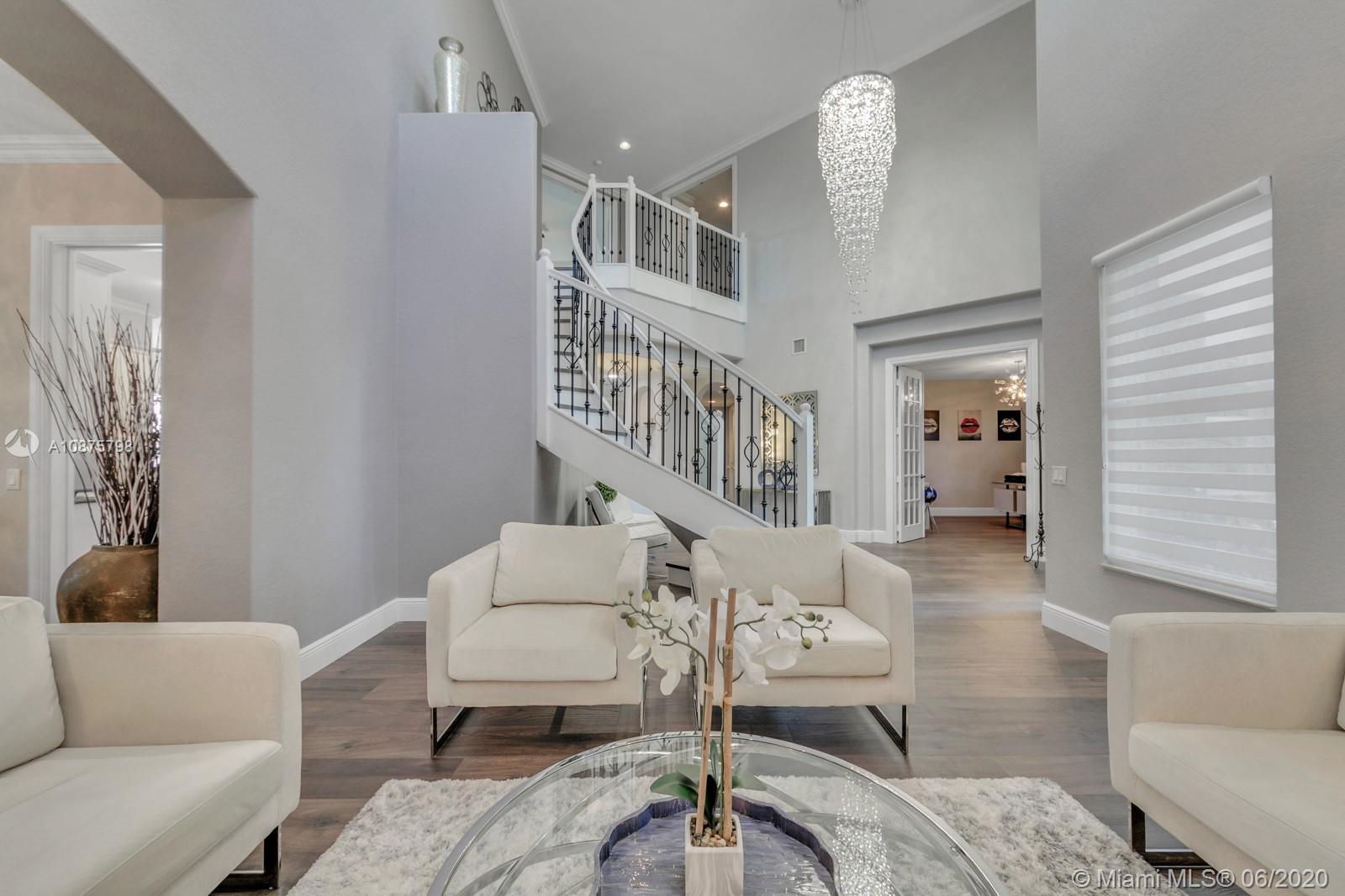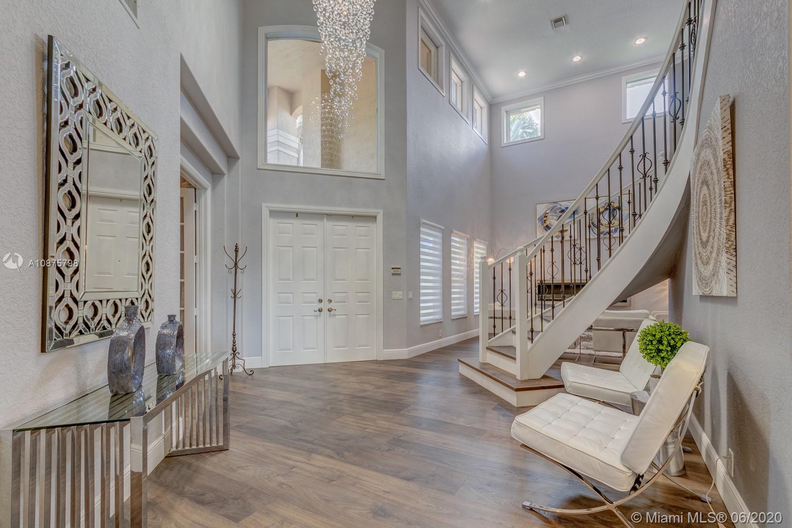 WoW! Big, Bold & Beautiful! Tastefully updated with a contemporary flair, this lakefront home is perfect for enjoying the Florida lifestyle. 5 bedrooms, 5.5 bathrooms + office, 20x14 playroom and loft spans 5365 sq ft (inclusive of 1/1 guest house). Grand entry with volume ceiling and elegant custom staircase welcome you home! Center island kitchen w/breakfast nook overlooks the family room. Luxurious master wing w/sitting area features 300 sq ft balcony allowing you to experience breathtaking sunsets from your private suite. The resort-style backyard features a travertine marble patio and summer kitchen w/built in grill+Argentinian BBQ, perfect for outdoor chef. Heated and salt freeform pool+spa is surrounded by lush tropical landscaping. Guard gated community w/pools, ballfields etc.