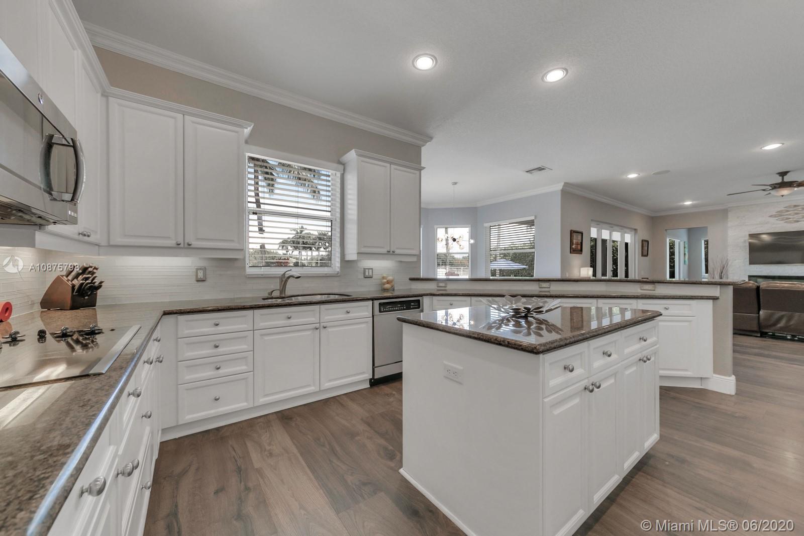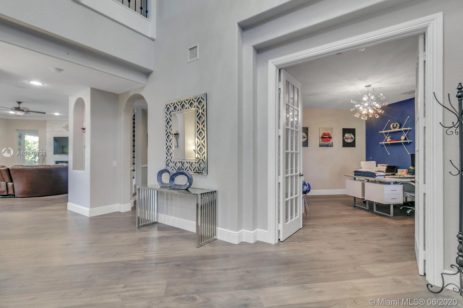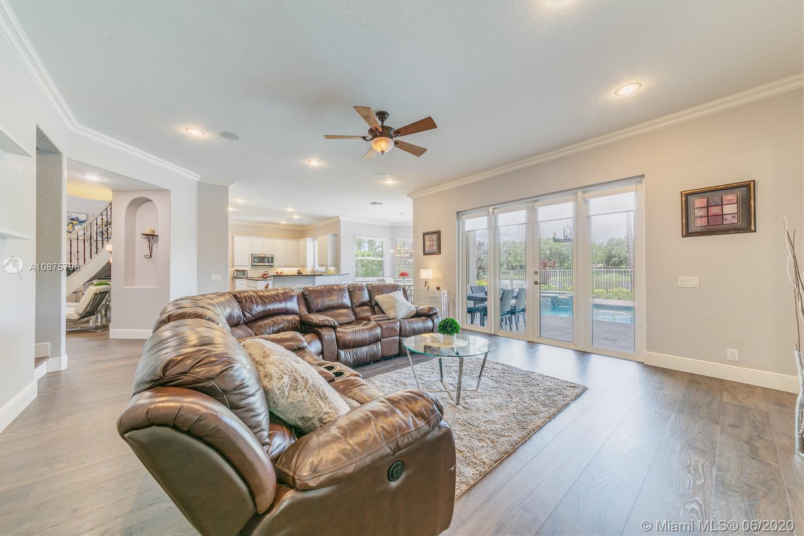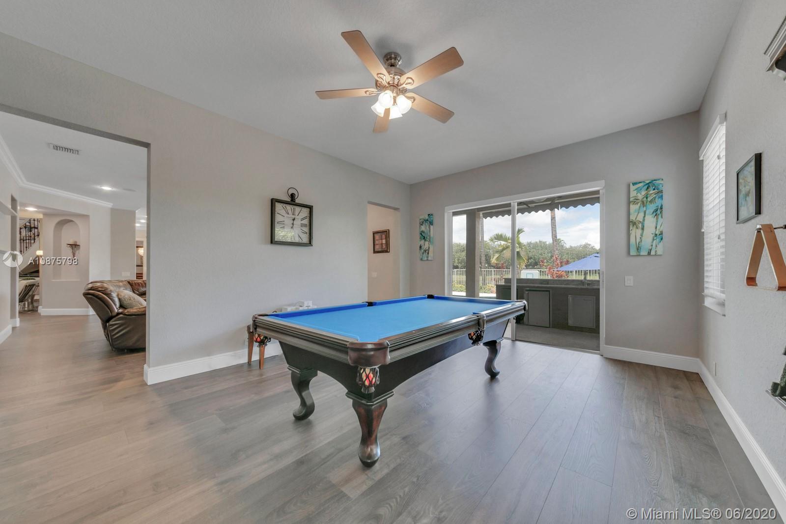 WoW! Big, Bold & Beautiful! Tastefully updated with a contemporary flair, this lakefront home is perfect for enjoying the Florida lifestyle. 5 bedrooms, 5.5 bathrooms + office, 20x14 playroom and loft spans 5365 sq ft (inclusive of 1/1 guest house). Grand entry with volume ceiling and elegant custom staircase welcome you home! Center island kitchen w/breakfast nook overlooks the family room. Luxurious master wing w/sitting area features 300 sq ft balcony allowing you to experience breathtaking sunsets from your private suite. The resort-style backyard features a travertine marble patio and summer kitchen w/built in grill+Argentinian BBQ, perfect for outdoor chef. Heated and salt freeform pool+spa is surrounded by lush tropical landscaping. Guard gated community w/pools, ballfields etc.