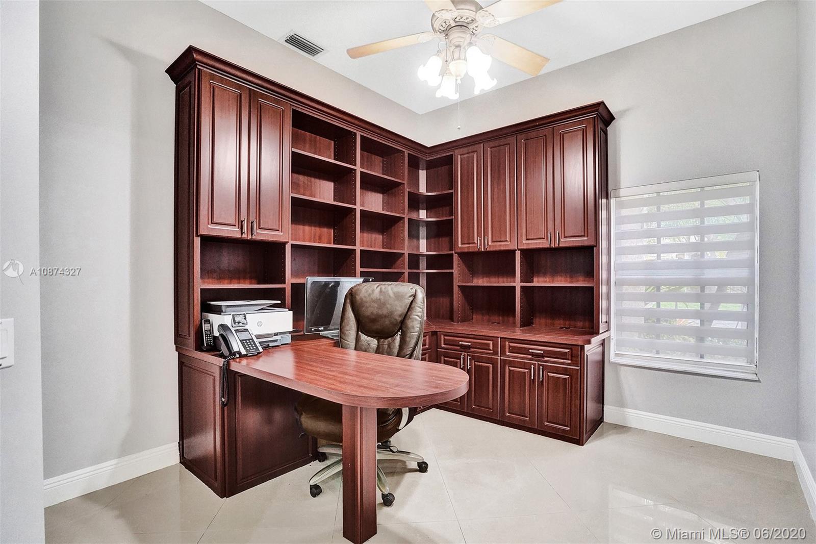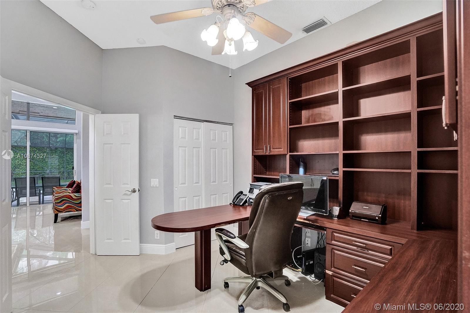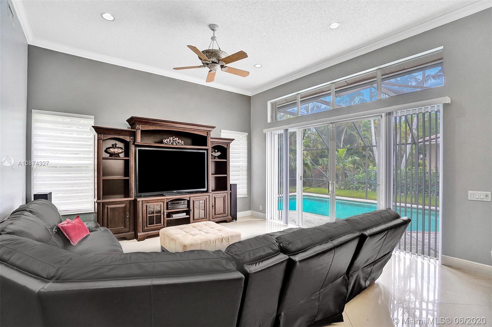 GORGEOUS OPEN FLOOR PLAN, ONE STORY HOME LOCATED IN THE GATED COMMUNITY OF THE RIDGES. THIS TRIPLE SPLIT HOME FEATURES 4 BEDROOMS PLUS AN OFFICE AND 3 FULL BATHROOMS. PORCELAIN FLOORING, VOLUME CEILINGS, CROWN MOLDING, FRESHLY PAINTED INTERIOR AND NEW WINDOW TREATMENTS. LARGE KITCHEN WITH GRANITE COUNTER TOPS AND A SEPARATE EAT-IN KITCHEN DINING AREA. LARGE SCREENED IN POOL AND THE ENTIRE HOME IS PROTECTED BY ACCORDION SHUTTERS. THIS HOUSE HAS A BIG BACKYARD AND IS CLOSE TO A+ RATED ELEMENTARY, MIDDLE, AND HIGH SCHOOLS.