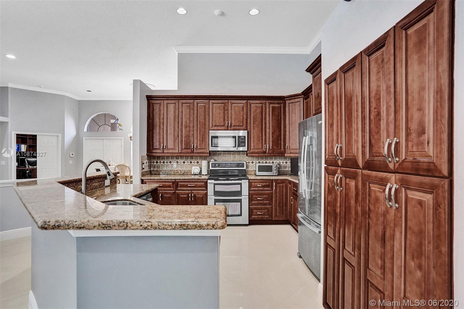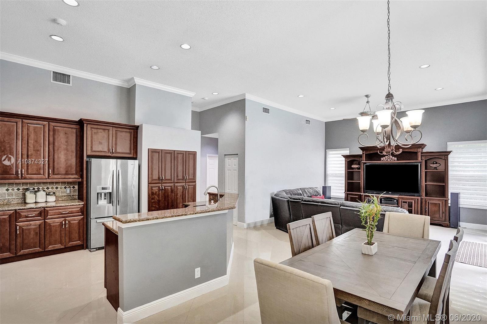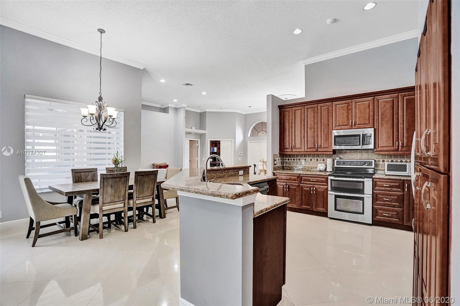 GORGEOUS OPEN FLOOR PLAN, ONE STORY HOME LOCATED IN THE GATED COMMUNITY OF THE RIDGES. THIS TRIPLE SPLIT HOME FEATURES 4 BEDROOMS PLUS AN OFFICE AND 3 FULL BATHROOMS. PORCELAIN FLOORING, VOLUME CEILINGS, CROWN MOLDING, FRESHLY PAINTED INTERIOR AND NEW WINDOW TREATMENTS. LARGE KITCHEN WITH GRANITE COUNTER TOPS AND A SEPARATE EAT-IN KITCHEN DINING AREA. LARGE SCREENED IN POOL AND THE ENTIRE HOME IS PROTECTED BY ACCORDION SHUTTERS. THIS HOUSE HAS A BIG BACKYARD AND IS CLOSE TO A+ RATED ELEMENTARY, MIDDLE, AND HIGH SCHOOLS.