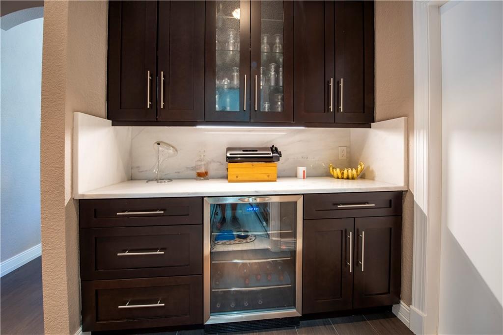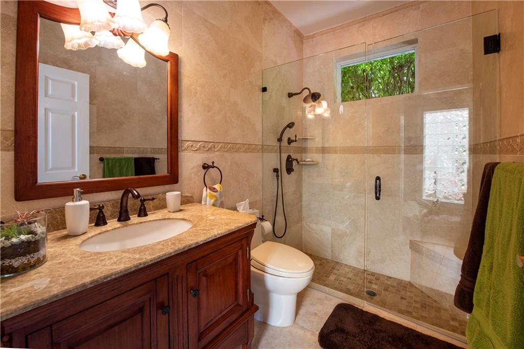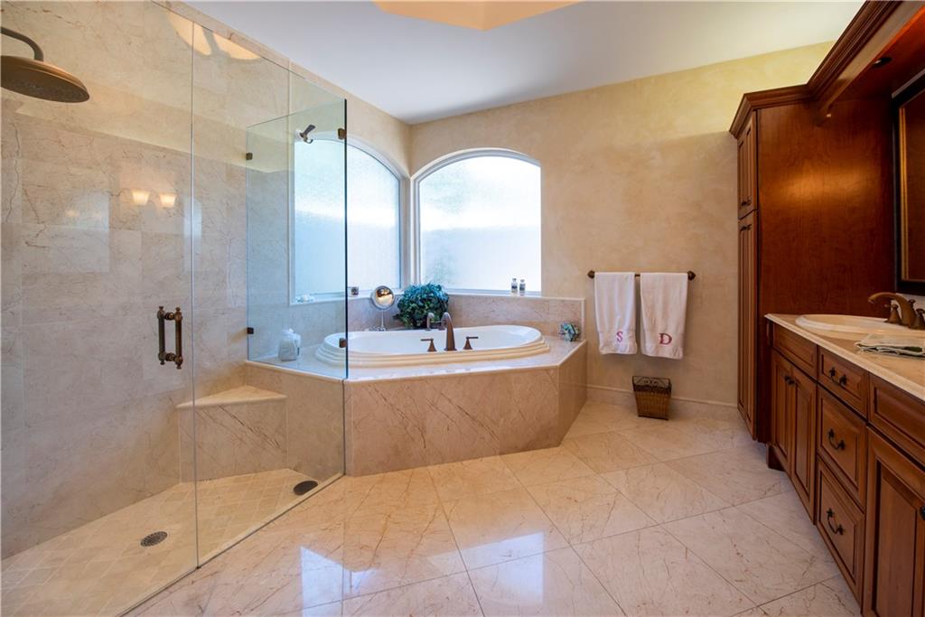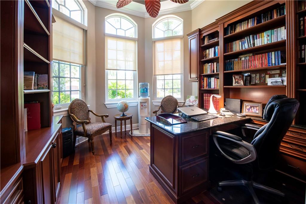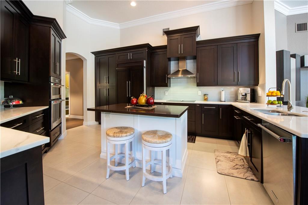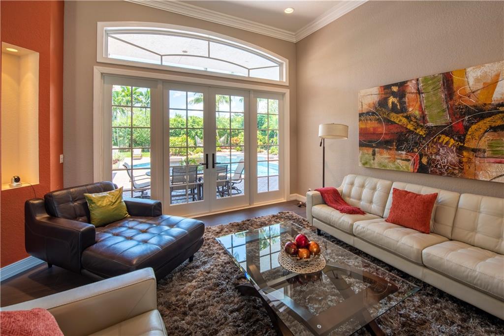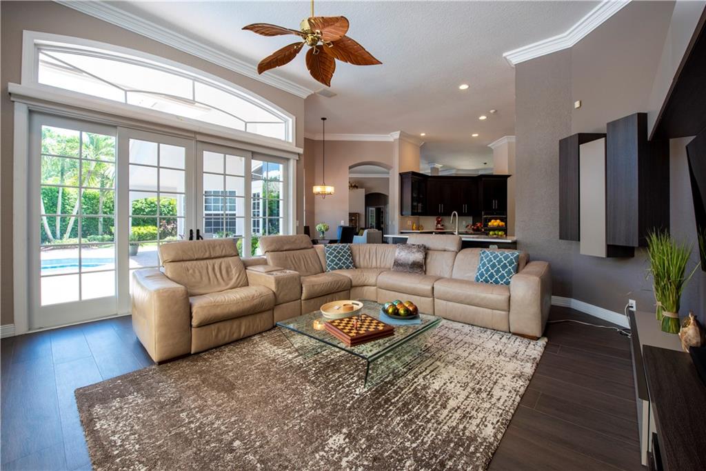 Your Maple Island Resort Awaits! This custom 1 story 5 bedroom/3-SPLIT (PLAYROOM OR WORKOUT ROOM) Office/3 full bath/3 car Garage home is elegantly remodeled! Completely New Kitchen w/gorgeous custom cabinets, Stainless Steel Appliances, Center Island, marble and granite counters, Remodeled Butler's Pantry w/Wine cooler, separate laundry room w/ sink+ folding counter. Master Bath w/Spa Tub. Newly installed wood look tile floors throughout main living areas, Wood Floors in All Bedrooms and Office, NEW IMPACT WINDOWS, DOORS and GARAGE DOORS. Newer Roof. This open floor plan views a Huge Beautifully landscaped 17,173 S/F Lot. Your Secluded tropical Paradise w/stunning salt water pool and spa, and oversized covered outdoor room w/custom outdoor gas fireplace. Newer AC units w/ UV light system