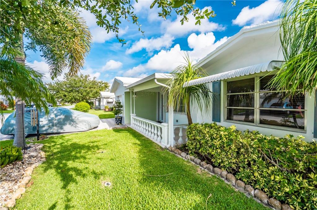 Well maintained 2/2 single family home w/enclosed Florida room. Bohemian decor throughout is warm and inviting.Home offers updated kitchen with cabinets and countertops, along with both baths. New electrical panel and water heater 2020. Relax on front porch enjoying your perfectly landscaped yard or privacy on your back patio. One of the most desired locations in Leisureville a 55+ community. No land lease