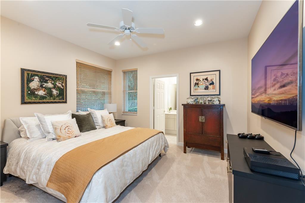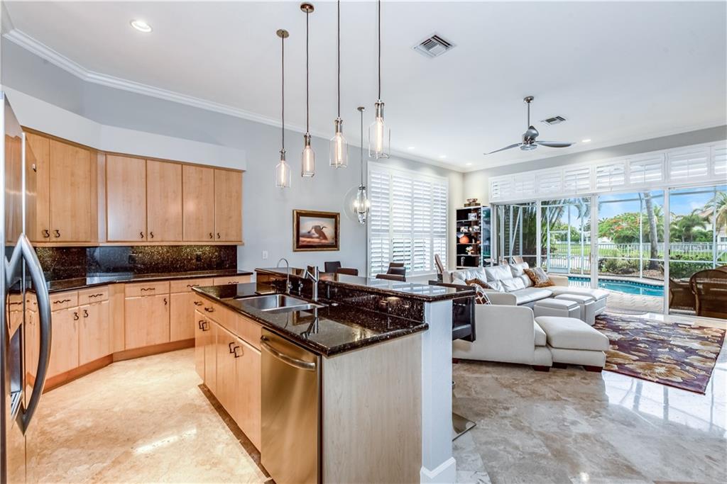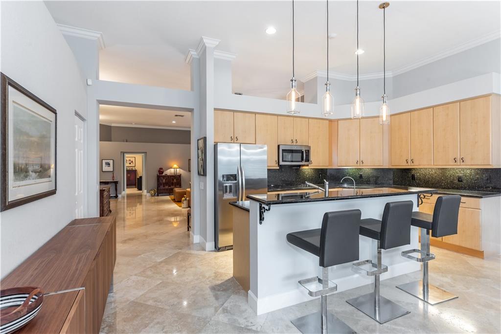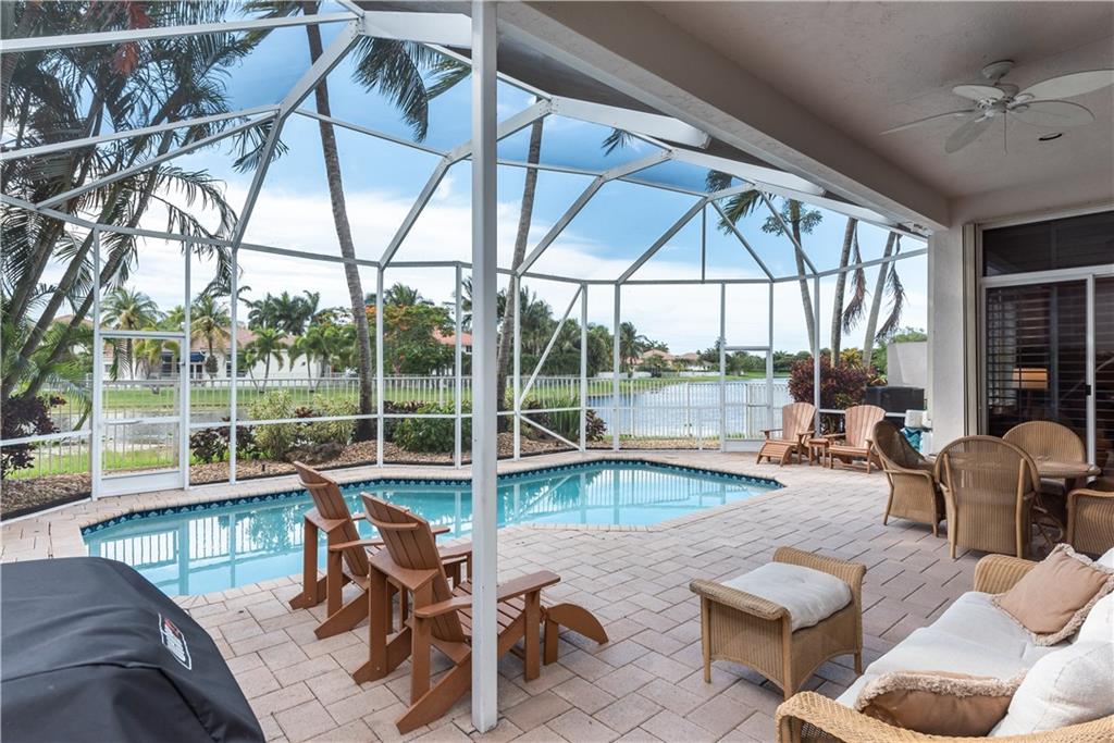 GORGEOUS! One story, 3-bedroom, 3-bath LAKEFRONT home on cul-de-sac in Weston Hills Country Club. Saltwater pool in screened lanai, with new energy-saving pool heater(2019). Marble floors in living areas, new carpet & paint in master & guest bedrooms, desirable split floor plan. 3rd bedroom used as office. Plantation shutters, kitchen with granite counters, stainless steel appliances with new GE Profile oven(2020). Expanded family room & master bedroom, both overlooking pool, both with 75-inch, wall-mounted Samsung TVs(2019). Master bedroom has 2 walk-in closets with built-in shelving, one is HUGE! New LQ washer & dryer (2020), Garage has epoxy floor and built in cabinets, accordion hurricane shutters, & lush landscaping. HOA includes lawn, sprinklers, & exterior paint. Shows like a model!