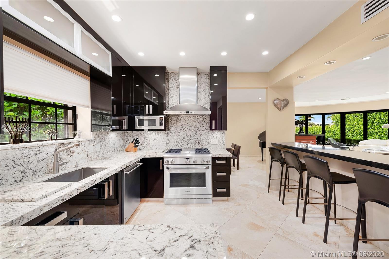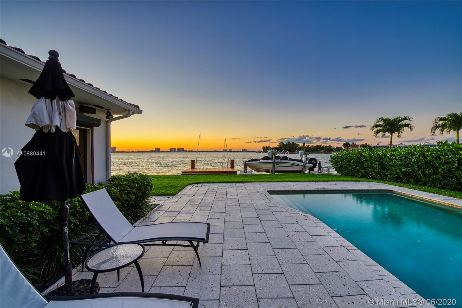 MOTIVATED SELLER!! This charming waterfront home in a gated community features an open floor plan with stone & rich wood floors, 75’ of WF & amazing sunset views to the wide bay. Spacious living room w/fireplace leads to a beautiful family room w/a bar & a curved wall of windows looking out to the pool/bay. The gourmet kitchen sports top-of-the-line Monogram appliances, gas & electric cooktop, eat-in kitchen counter, wine cooler & adjacent dining room. Large bay-side principal bedroom w/walk-in closets, direct access to pool deck w/bay views. Large pool, open seating areas, dock, boat lift & direct Ocean access. incl. natural gas generator for entire house,1 car AC garage, & enclosed car port. Amenities avail. Tennis courts, public golf course, club house & children’s playground.