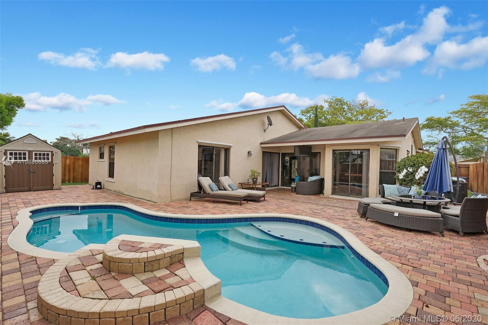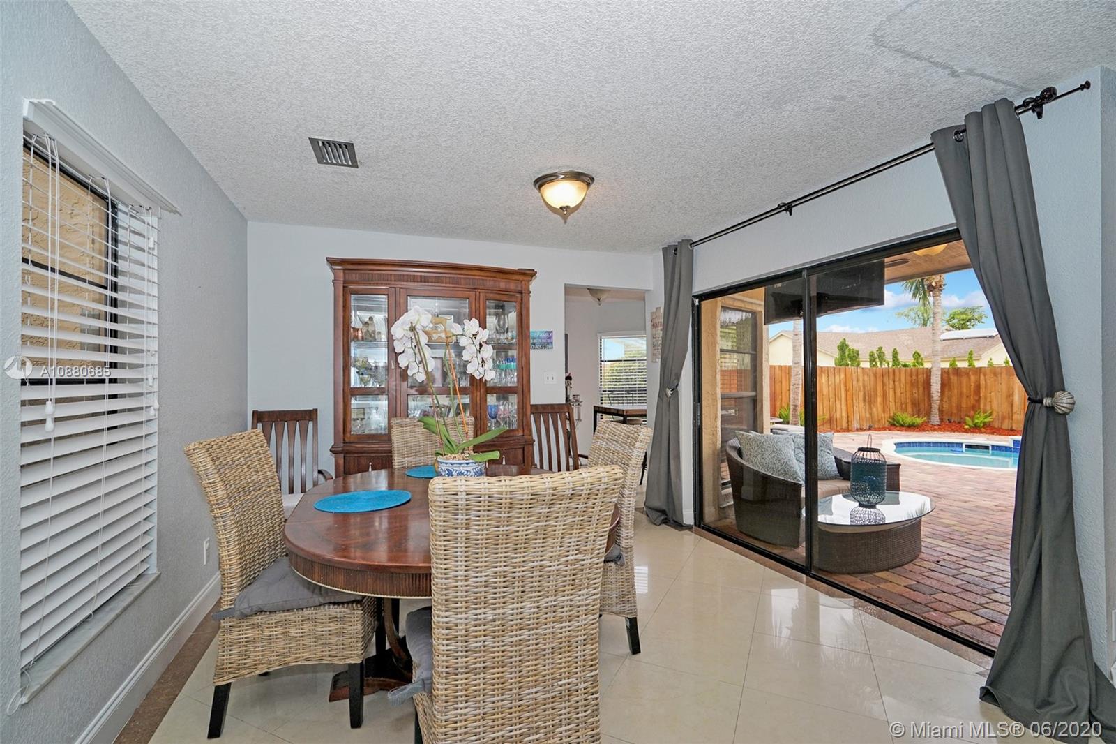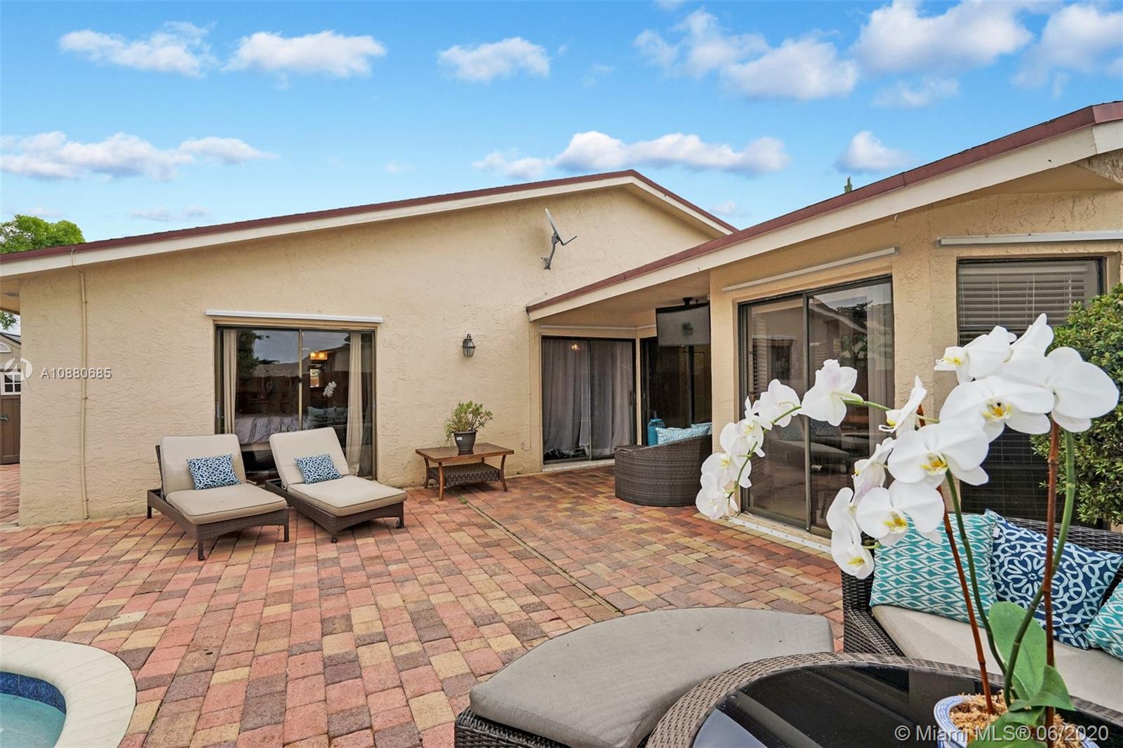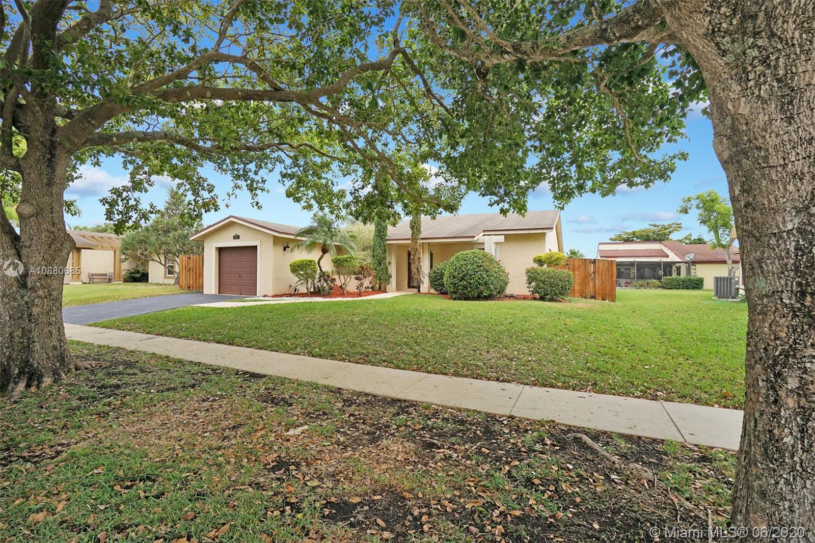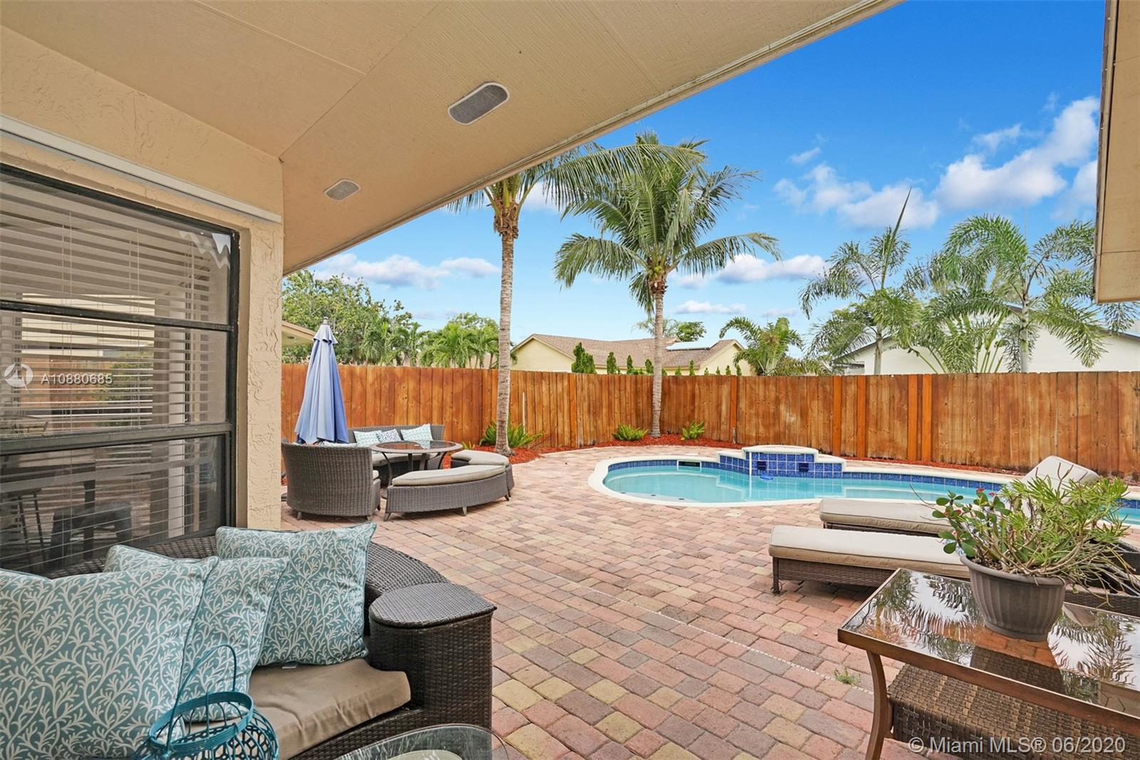 Come see this totally remodeled 3 bedrooms, 2 bathroom pool home in Weston's Bonaventure subdivision. Property features porcelain floors throughout, 42in wood kitchen cabinets with granite countertops & stainless steel appliances, front loader washer & dryer, travertine flooring in bathrooms, New AC Unit & Tankless water heater. The master has his & hers walk-in closets with built-in shelves & access to the backyard which is totally private with coconut trees, paver patio, & a newer heated pool. Access to the Bonaventure Town Center where there are pools, tennis courts, indoor racquetball & basketball courts, full gym, bowling, & much more. Low Hoa Fees ($45). Great location, minutes to Publix, restaurants, expressways, & "A" schools. Will not last! Lowest priced pool home in all of Weston