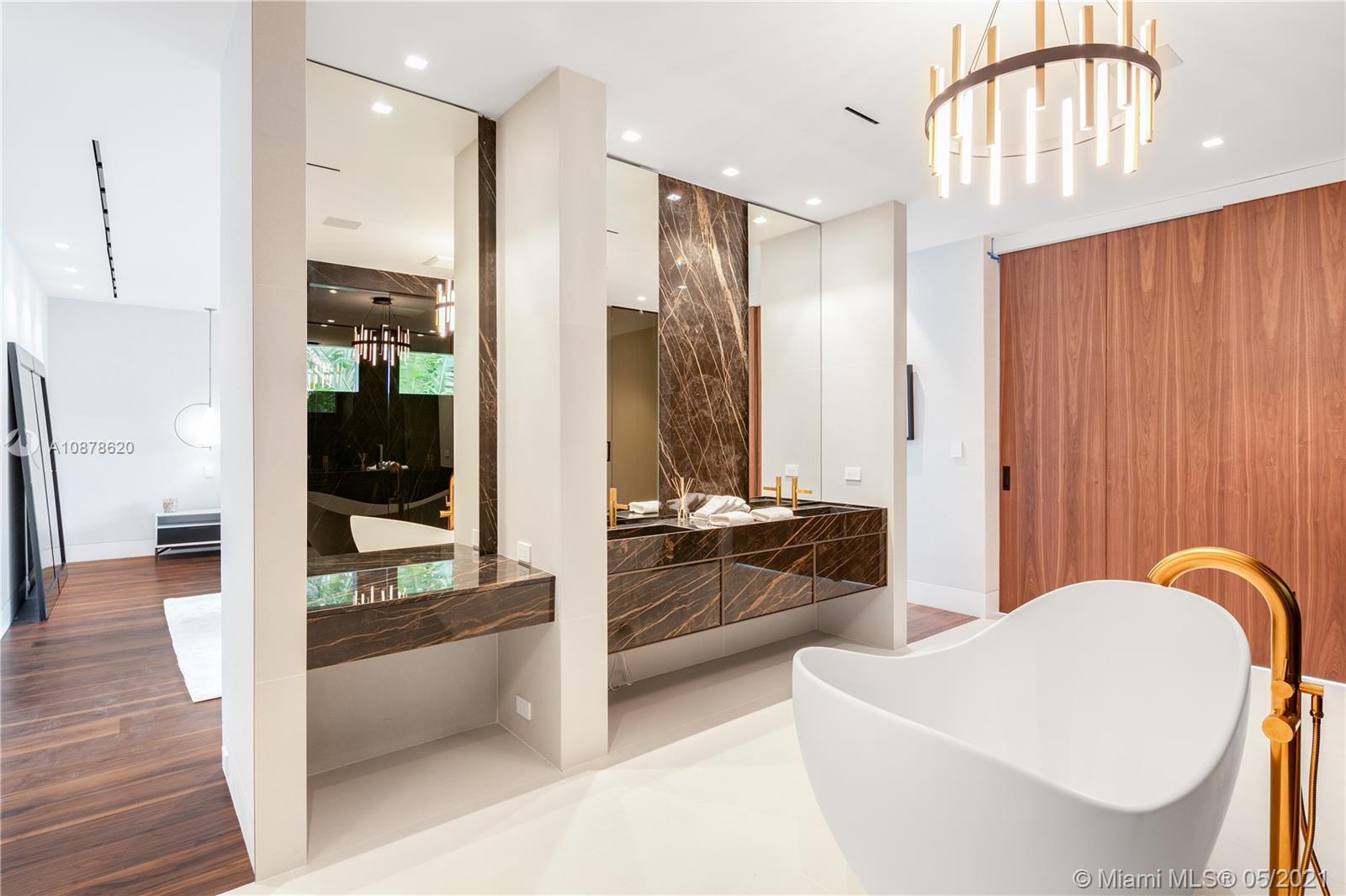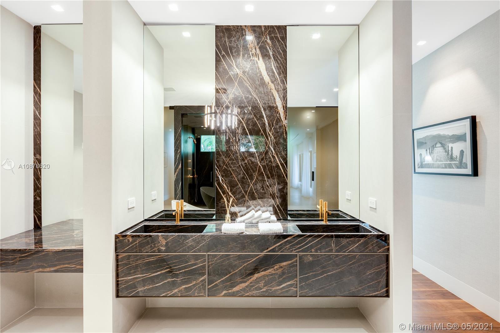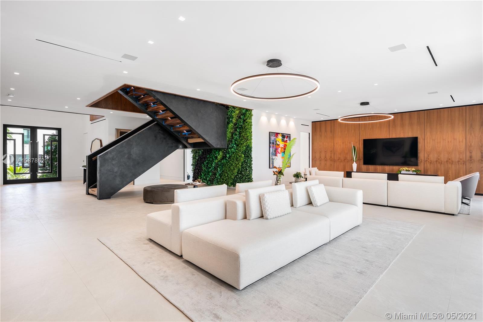Situated on the Open Bay w/ endless water & west sunset views, this Completely Rebuilt Contemporary home features 7100 SF of Living Space complimented by top of the line finishes throughout. Enjoy a perfect layout for family living & entertainment which features 8 BD, 8.5 BA + home office. The 1st floor sets the tone w/ 60x60 porcelain tiles, one of a kind staircase w/ live green wall & a Snaidero Kitchen comprised of wood taken from the pilasters of Venice. Upstairs you'll be blown away by the master retreat which boasts breathtaking western views of the bay & sunsets, private lounge / sitting room, bespoke master bathroom w/ steam shower & enormous his & hers closets. The backyard provides a tropical setting w/ pool & spa, new seawall cap & brand new 60' dock.