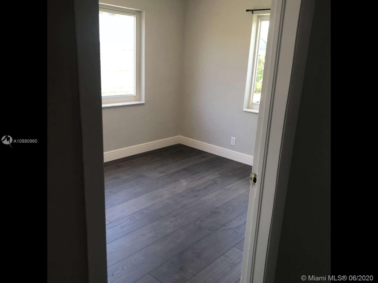 This recently renovated 2 BR/1 BA, 1035sq. ft. home features open concept kitchen, granite countertops, white cabinets with stainless steel appliances. Den has tongue-in-groove ceiling with crown moulding and can be additional dining space or converted to additional bedroom. Updated bathroom. Entire house has new high-quality waterproof Swiss Krono wide-plank laminate floors in a charcoal color. New ceiling fans and lighting throughout the home. Modern side-slide hurricane impact windows and new doors. Updated electricity and breaker box. Additional living space with a new backyard screened-in porch off the kitchen and a screened front room with access to the utility room. Circular drive with oversized gates on each side for trailer or boat parking. Close to bus route, beach and shops